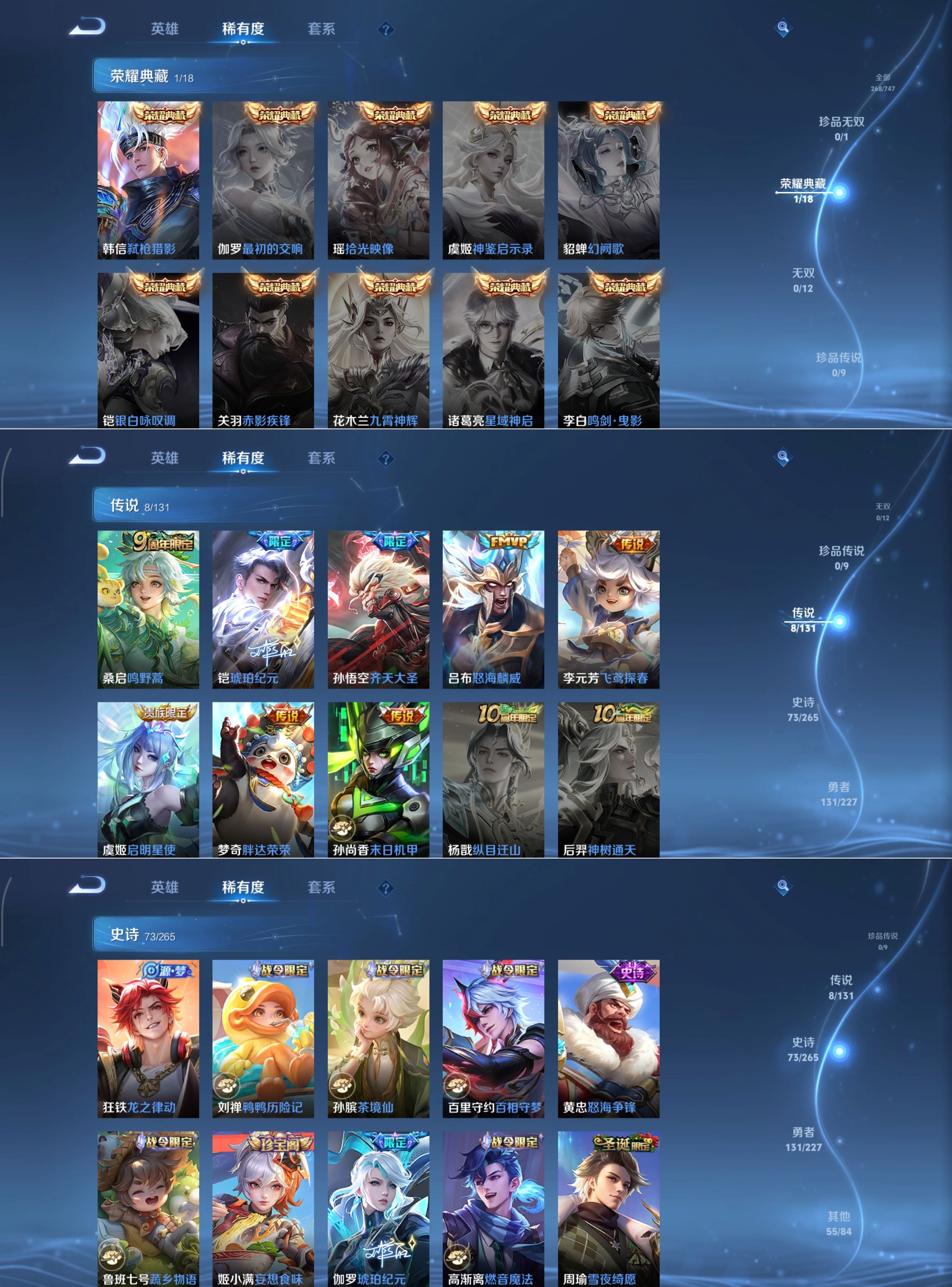 【传说8 典藏1 贵族8 1星传说 】安卓q-268皮肤-127英雄 【典藏皮肤】 弑呛猎影 【传说皮肤】 鸣野蒿 琥珀纪元 齐天大圣 飞鸢探春 胖达荣荣 末日机甲 启明星使 怒海麟威 【史诗皮肤】 蔬乡物语 蔬乡物语 茶境仙 百相守梦 岱宗 冰锋战神 逐梦之影 飞衡 如梦令 烈魂 电玩小子 御风骁将 孙行者 地狱燃心 山海·玄木吟 怒海争锋 逐霄战戟 敬我三分 琥珀纪
