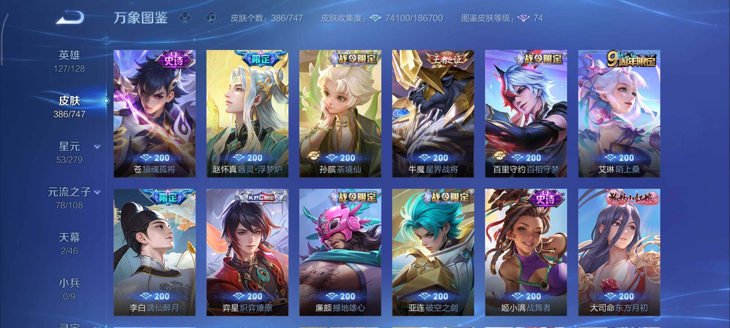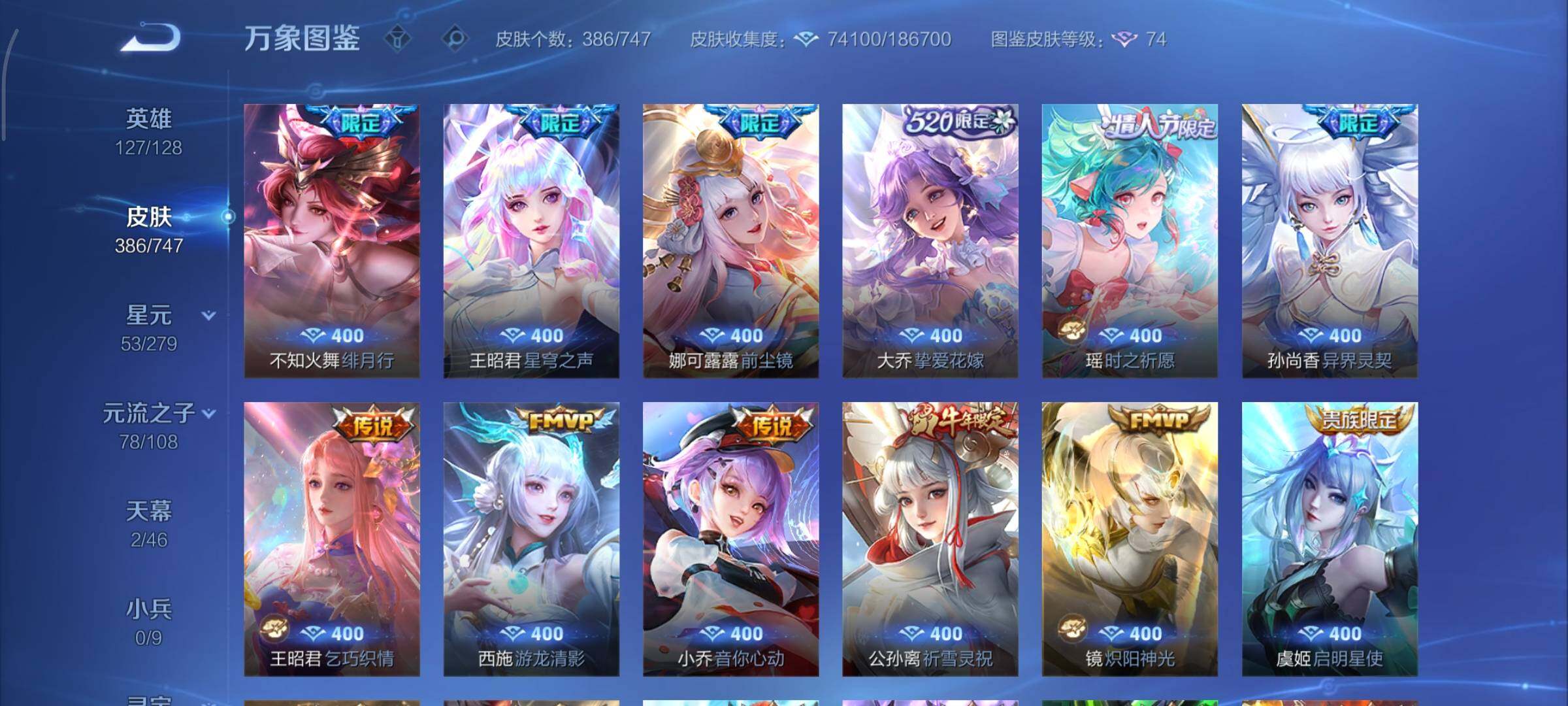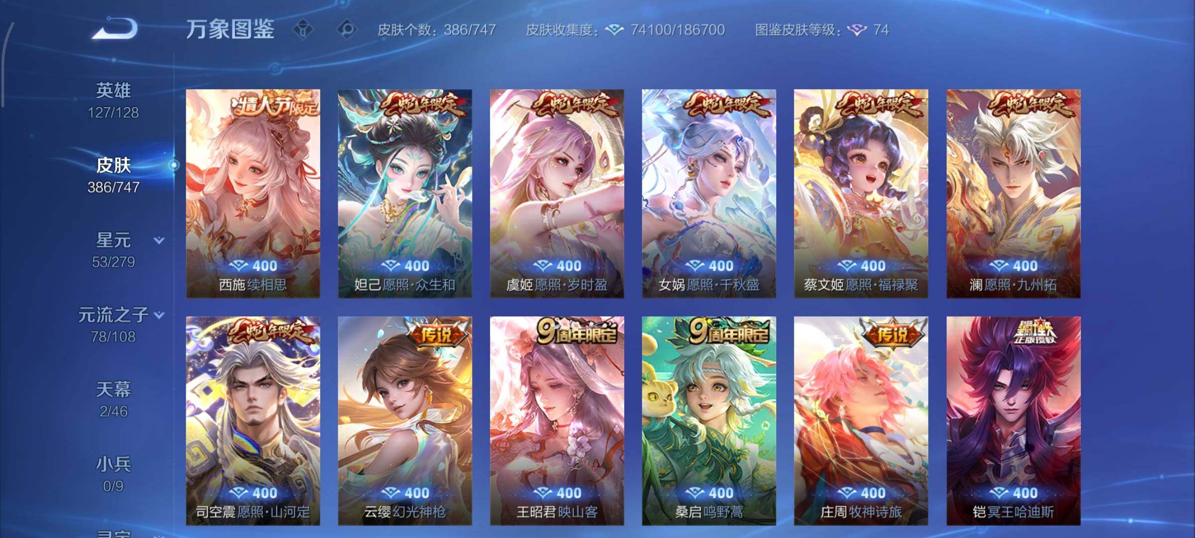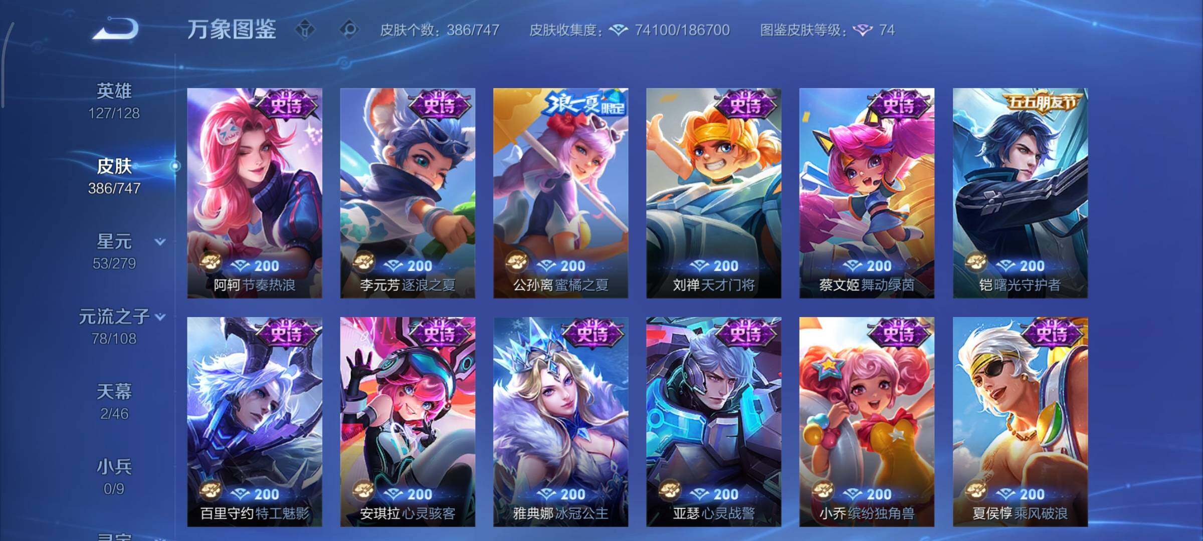 2291068-可换绑【v9精品女号 贵族积分17.4万 瑶全皮 大乔全皮 西施全皮 生肖限定14个 朵利亚心动手记 紫瑶 多传说限定妹子号】 3038星币 42按键,2星传说,2天幕,10王者印记,五级铭文160,可二次cd14822,安卓q-v9-386皮肤-3典藏皮肤-2无双-5珍品传说-45传说-139史诗【英雄全皮】:孙权全皮,朵莉亚全皮,大乔全皮,瑶全皮,西施全皮,戈娅全皮,空空