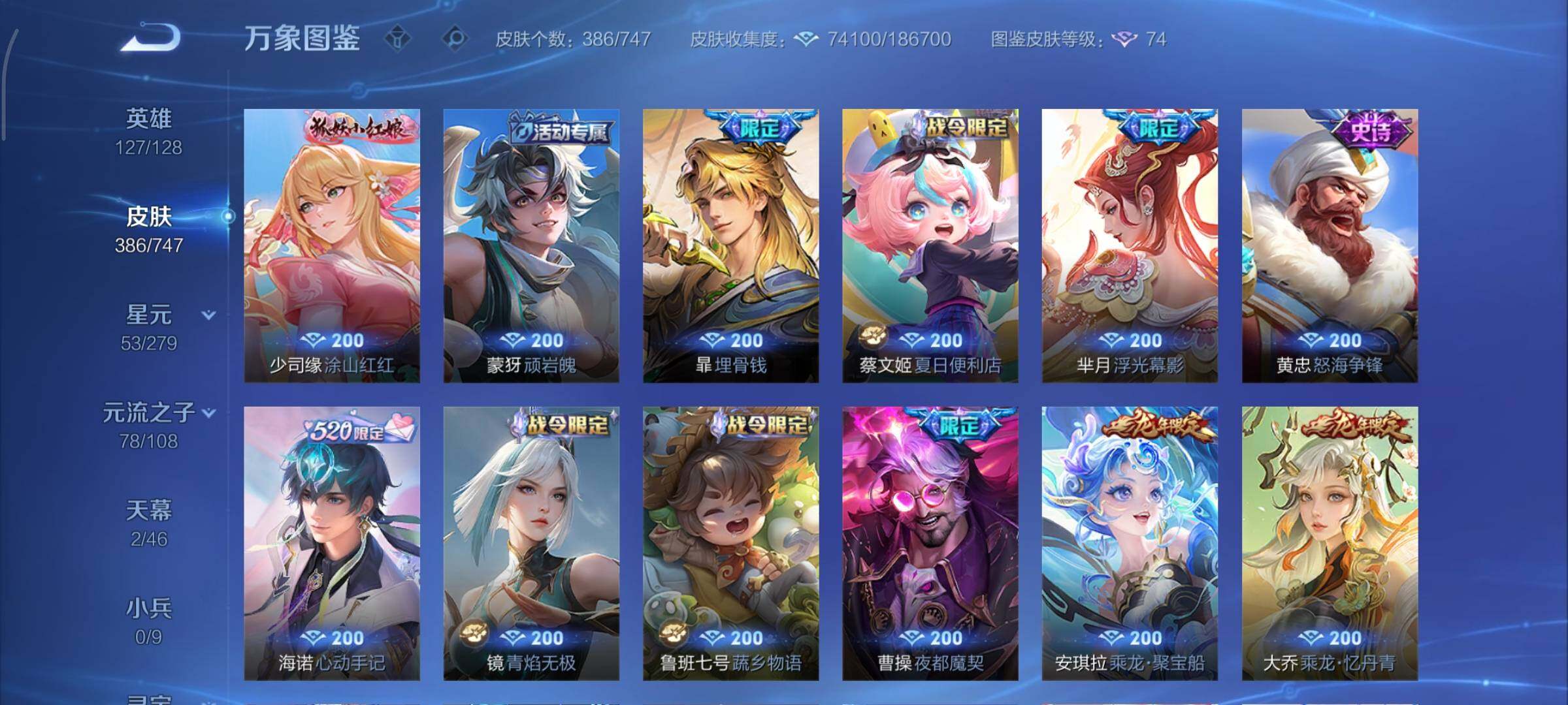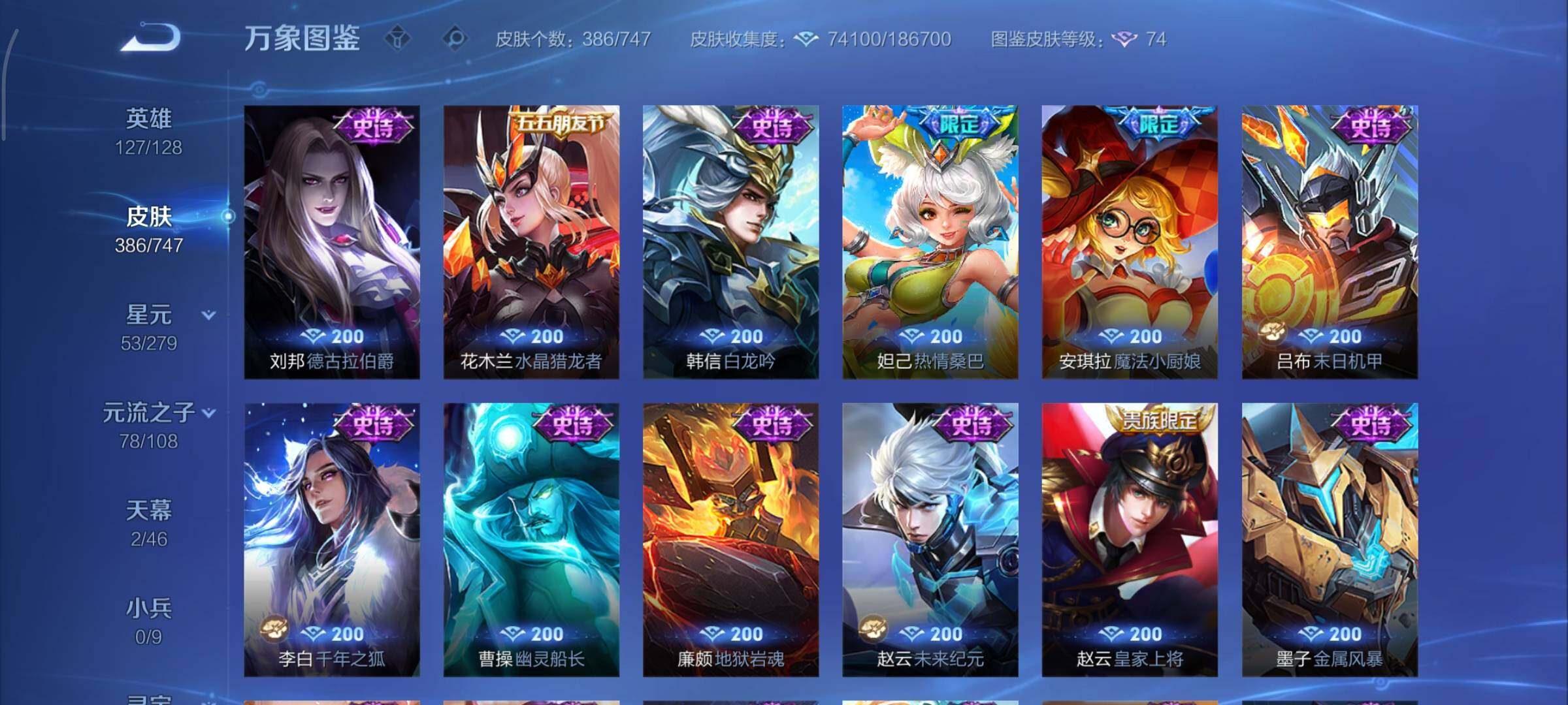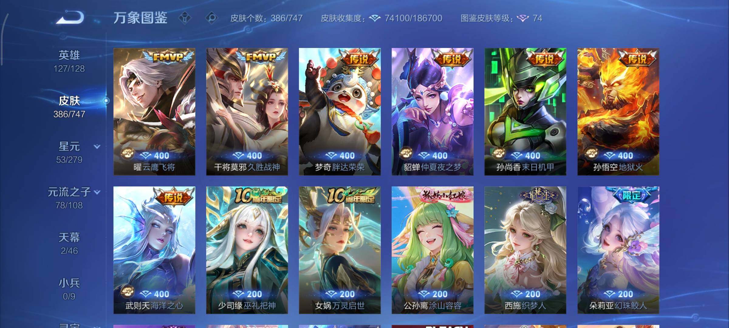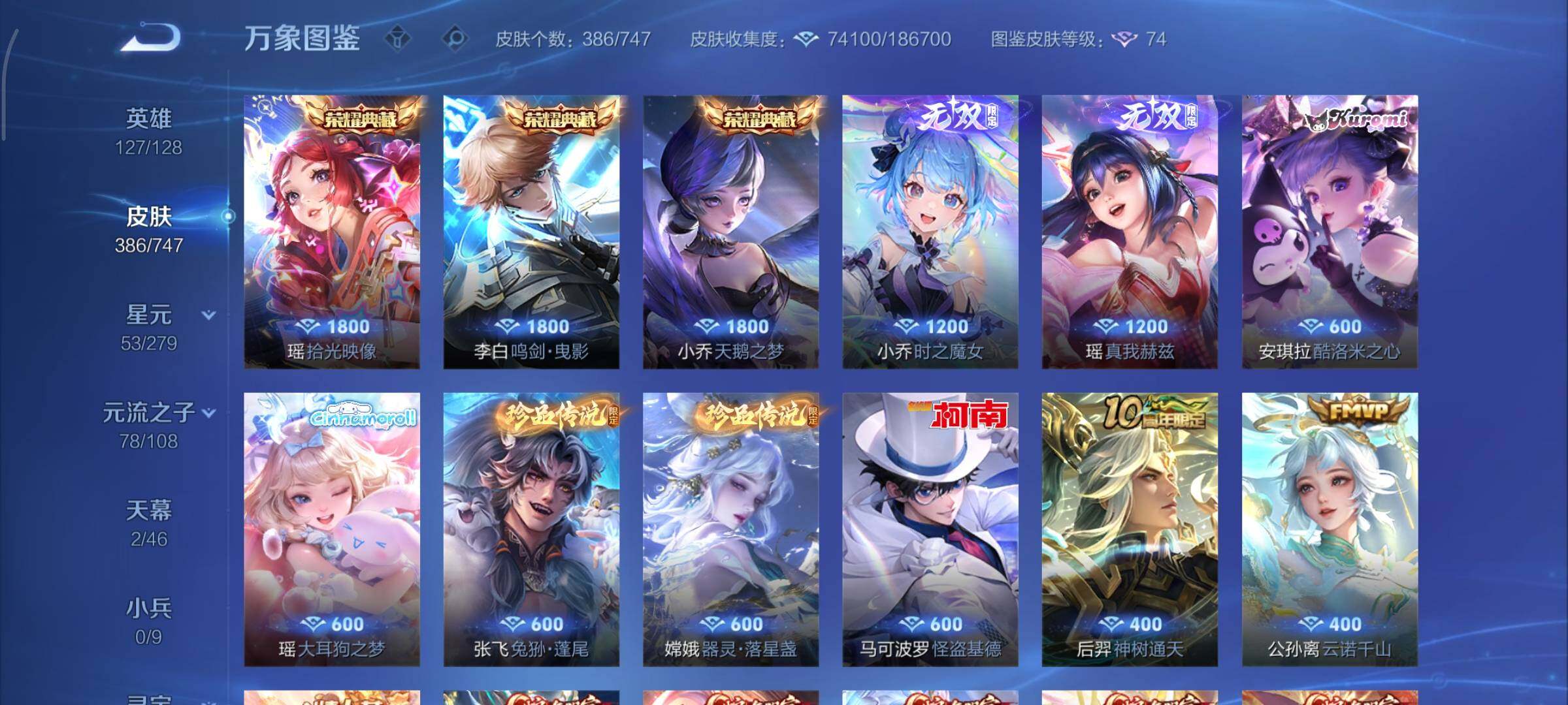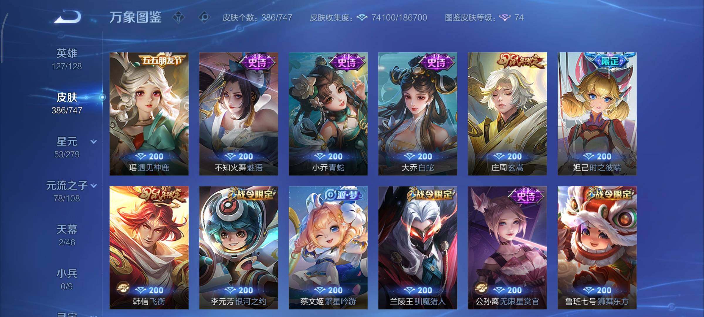2291068-可换绑【v9精品女号 贵族积分17.4万 瑶全皮 大乔全皮 西施全皮 生肖限定14个 朵利亚心动手记 紫瑶 多传说限定妹子号】 3038星币 42按键,2星传说,2天幕,10王者印记,五级铭文160,可二次cd14822,安卓q-v9-386皮肤-3典藏皮肤-2无双-5珍品传说-45传说-139史诗【英雄全皮】:孙权全皮,朵莉亚全皮,大乔全皮,瑶全皮,西施全皮,戈娅全皮,空空