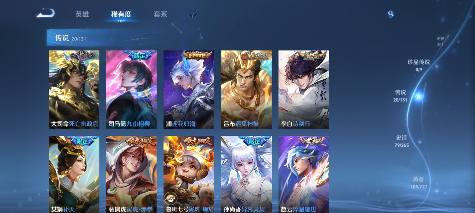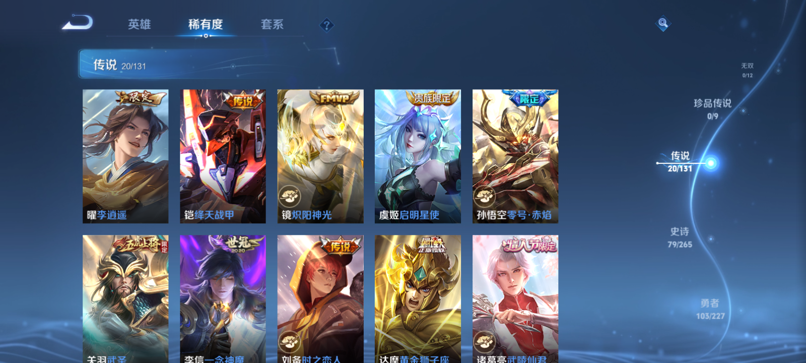 【王者荣耀】【lywz22316】珍品无双0 典藏1 无双0 珍品传说0 传说20 史诗79 英雄125 皮肤243 贵族8级 荣耀典藏:银白咏叹调__传说皮肤:补天|异界灵契|绛天战甲|炽阳神光|启明星使|黄金狮子座|刘备-时之恋人|一念神魔|李|淬星耀世|零号·赤焰|诗剑行|武陵仙君|武圣|寅虎·瑞焰|遇见神鼓|逐花归海|寅虎·赤拳|九山相柳|死亡执政官__稀有限定:寅虎·御盾|寅虎·心曲|御风骁将|至尊宝|青龙志|朱雀志|大圣娶亲|一生所爱|飞衡|神威|青春决赛季|傲雪梅呛|玉兔公主|李小龙|梁祝|山海·玄木吟|冰锋战神|大漠名商|繁星吟游|古海寻踪|海滩派对|海盐诗旅|后羿-如梦令|幻夜卜梦|皇家上将|混沌棋|火炮绅士|剑破天穹|江河有灵|金庭之子|狂想玩偶喵|黎明之约|魔术师|女武神|千军破阵|擒涛扼浪|青焰无极|驱傩正仪|荣光圣徽|沙漠行僧|朔风刀|探海日志|醍醐杖|天穹祈灯|玩趣恶龙|万华元夜|五谷丰年|演武夺筹|疑决卦|阴阳师|御旌|御銮|原初追逐者|云间偶戏|暗夜猫娘|暗隐猎兽者|暗渊魔法|缤纷独角兽|冰冠公主|冰雪圆舞曲|苍穹之光|乘风破浪|大乔-猫狗日记|地狱岩魂|鬼剑武藏|箭羽风息|节奏热浪|金属风暴|魅力维加斯|梦奇-顽趣|女仆咖啡|偶像歌手|热力回旋|绅士熊喵|圣诞狂欢|水果甜心|水晶猎龙者|孙策-猫狗日记|天才门将|晚萤|赵云-未来纪元|雪上飞焰|摇滚巨星|鹰眼统帅|幽灵船长|逐浪之夏|紫霞仙子|噬灭天穹|东方月初|埋骨钱|顽岩魄|蔡文姬-夏日便利店|虞姬-夏日便利店|天穹之誓|修罗|心灵战警|千年之狐|星界战将|谧流熔炉|万物之道|原初探秘者|云中旅人|单词大作战|苍威无极|龙之律动|逆浪荇歌|孙策-百相守梦|周瑜-百相守梦|赞萌露比|黄忠-百相守梦|守夜人|涂山容容|荣光之誓|万灵启世|鹤鸣心笺__优质皮肤:尼罗河女神|一千零一夜|创世神祝|埃及法老|孤猎|熊喵少女|午夜歌剧院|激情绿茵|海之征途|碧珀绯影|秩序猎龙将|冰刃幻境|森|维京掠夺者|绯红之刃|踏雪寻梅|启蛰|伊势巫女|威尼斯狂欢|街头旋风|幸存者|福禄兄弟|隐刃|特种部队|三太子|精灵王|龙域领主|爱与和平|魇语军师|灼热之刃|霓裳曲|阿摩司公爵|异域舞娘|修竹墨客|万圣前夜|破阵·退雄兵|暗都幽影|功夫炙烤|潮玩探月行|虎啸剑宗|瓷语鉴心|秘密基地|次元突破|鲨炮海盗猫|丁香结|虹云星官|科学大爆炸|守护之力|幻乐之宴|功夫老勺|海滩丽影|兔女郎|死亡骑士|黄金武士|少女阿狸|天使之翼|玩偶对对碰|宫本武藏-未来纪元|忍·炎影|爱心护理|街头霸王|教廷特使|漠中幻影|零食大作战|幻泉雾影|契约魔法|重装意志|时尚教父|白色死神|程咬金-星际陆战队|大发明家|西施-雪境奇遇|星梦巡礼|灵卦秘语|猪八戒-西部大镖客|缤纷绘卷|纽约教父|龙腾万里|霸王丸|敏锐之力|孙悟空-西部大镖客|龙舞盛年|汉昭烈帝|乓乓大师|五福同心|盾山-圆桌骑士|蒙犽-归虚梦演|万事如意|曜-归虚梦演|唤灵魔甲|沉稳之力|程咬金-群星魔术团|完美运算|花好人间|熔金海岸|万象初新|蔚蓝守将|劲辣红锅|妄想特派|无双福将|踏浪烽翎|克喵|径山谋武__贵族等级:贵族8级__王者段位:荣耀王者捡漏打野号典藏凯 至尊宝 死亡执政官 九山相柳,绛天战甲,炽阳神光,淬星耀世等多限定