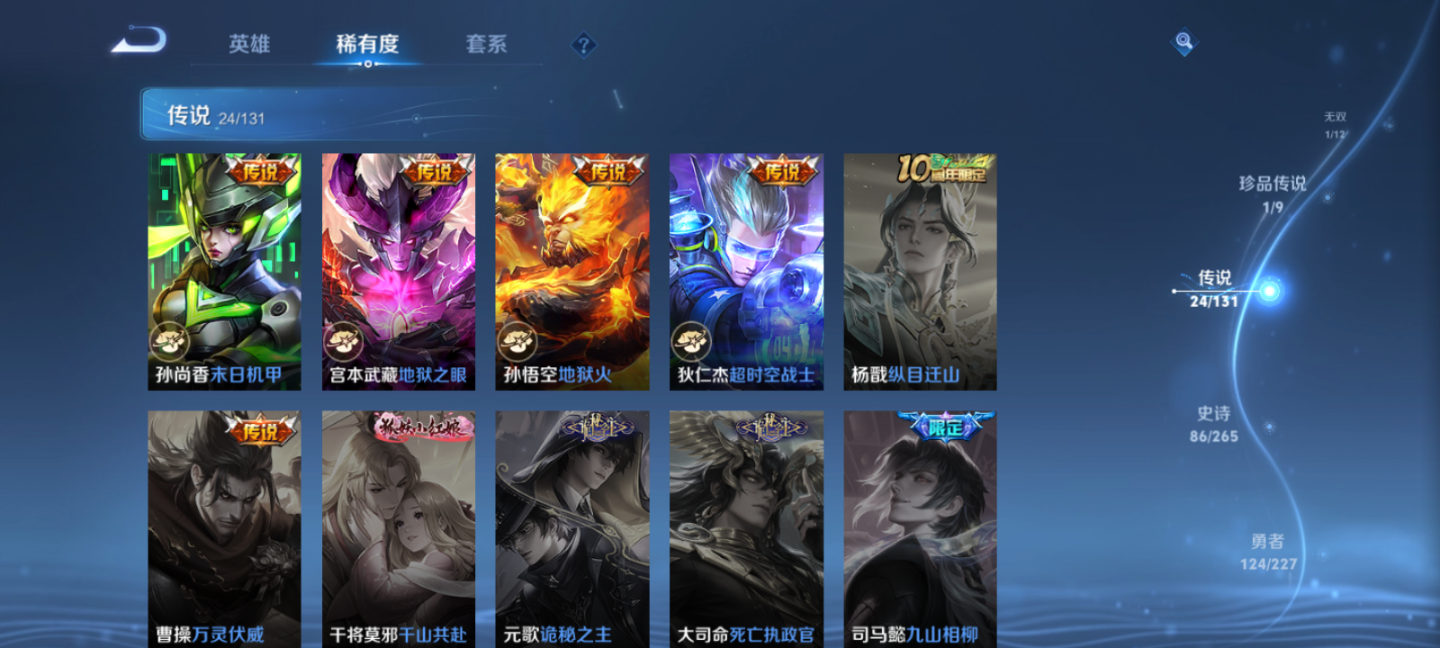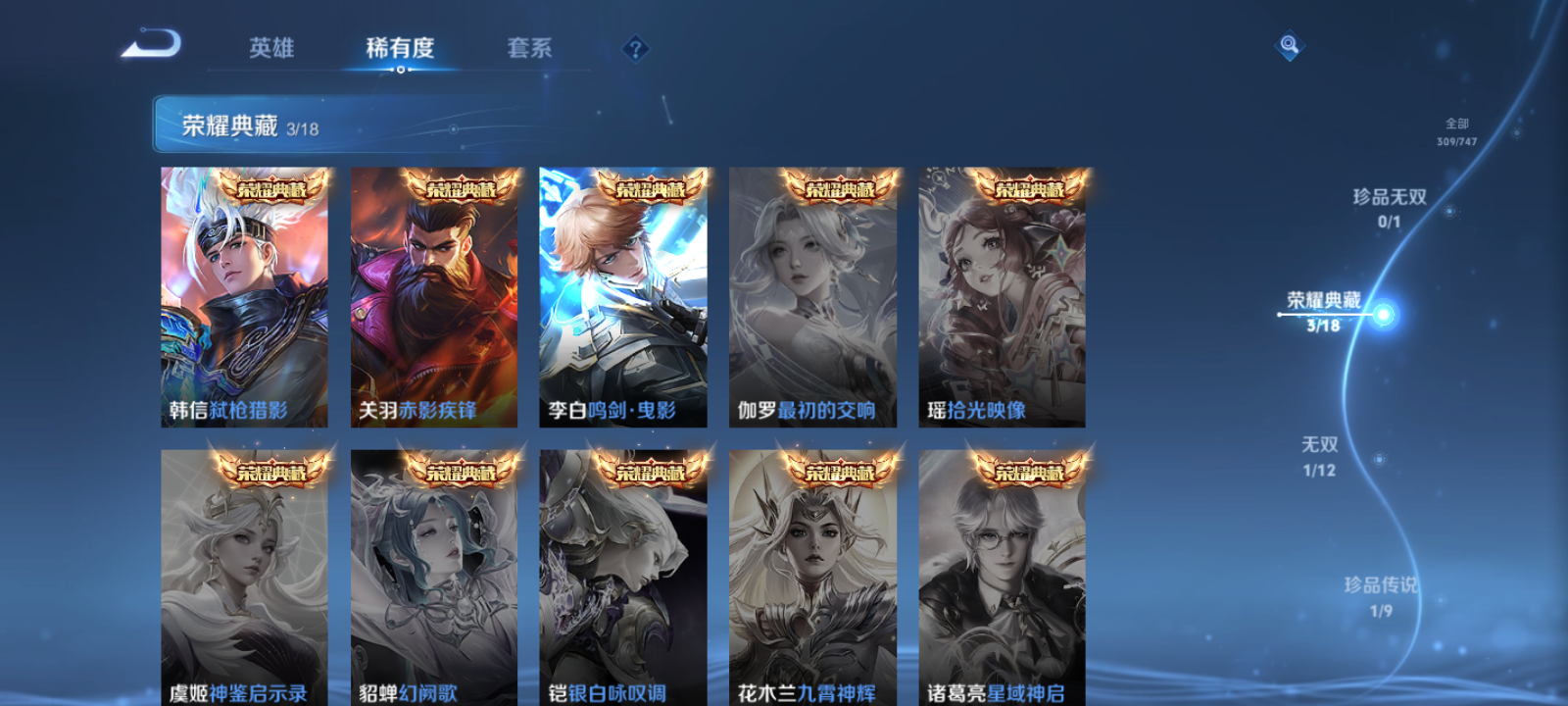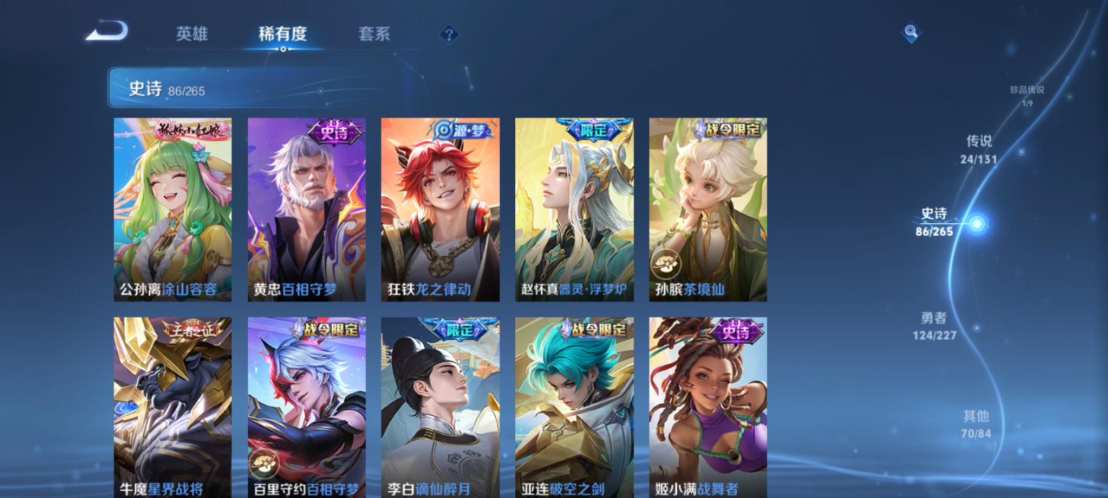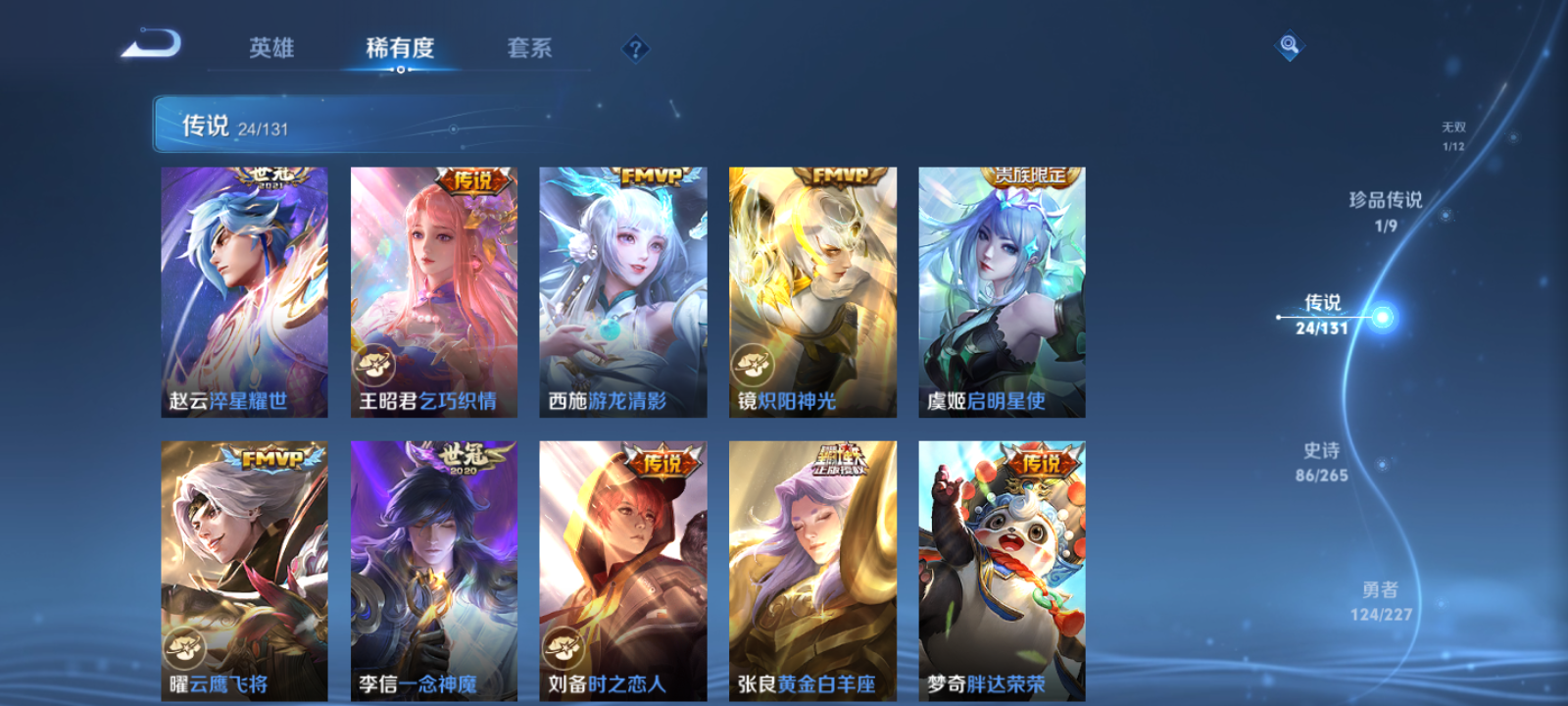 【王者荣耀】【lywz22314】珍品无双0 典藏3 无双1 珍品传说1 传说24 史诗86 英雄127 皮肤309 贵族8级 荣耀典藏:赤影疾锋|鸣剑·曳影|弑呛猎影__无双皮肤:器灵·螭龙剑__珍品传说:怪盗基德__传说皮肤:鸣野蒿|无双飞将|炽阳神光|启明星使|胖达荣荣|地狱之眼|地狱火|狄仁杰-超时空战士|黄金白羊座|刘备-时之恋人|一念神魔|云鹰飞将|游龙清影|乞巧织情|淬星耀世|孙尚香-末日机甲|碎云|逐花归海|山海·苍雷引|映山客|幻光神呛|祥瑞亨通|愿照·九州拓|神树通天__稀有限定:至尊宝|龙胆|白鹤梁神女|拒霜思|百解令|地狱燃心|古海寻踪|海滩派对|海盐诗旅|皇家上将|剑破天穹|江河有灵|魔术师|匿光破解者|奇幻香踪|擒涛扼浪|穷奇|燃音魔法|荣光圣徽|探海日志|天穹祈灯|妄想食味|五谷丰年|纤云弄巧|驯魔猎人|阴阳师|银河之约|游园惊梦|遇见飞天|御狮|逐梦之星|暗夜贵公子|暗夜猫娘|暗隐猎兽者|暗渊魔法|白龙吟|冰冠公主|冰雪圆舞曲|苍穹之光|乘风破浪|大乔-猫狗日记|德古拉伯爵|地狱岩魂|电玩·爆裂旋风|电玩小子|伽罗-琥珀纪元|功夫厨神|鬼剑武藏|黄金分割率|箭羽风息|节奏热浪|金属风暴|乐园奇幻夜|李元芳-蔬乡物语|龙骑士|吕布-末日机甲|魅力维加斯|女仆咖啡|偶像歌手|奇遇舞章|青蛇|上官婉儿-群星魔术团|绅士熊喵|圣诞狂欢|圣诞恋歌|诗语江南|鲁班七号-蔬乡物语|水果甜心|水晶猎龙者|孙策-猫狗日记|天才门将|晚萤|赵云-未来纪元|星夜王子|摇滚巨星|鹰眼统帅|幽灵船长|逐浪之夏|紫霞仙子|百里守约-百相守梦|老夫子-百相守梦|谪仙醉月|噬灭天穹|敬我三分|破空之剑|战舞者|蔡文姬-夏日便利店|虞姬-夏日便利店|天穹之誓|曙光守护者|心灵战警|千年之狐|舞动绿茵|特工魅影|心灵骇客|茶境仙|星界战将|谧流熔炉|器灵·浮梦炉|重明|云中旅人|孙悟空-神迹守卫|流音漫舞|访茗客|暖冬·兔眠|灵卜魔法|龙之律动|虚灵犬护|逆浪荇歌|黄忠-百相守梦|涂山容容|鹤鸣心笺__优质皮肤:尼罗河女神|创世神祝|年年有余|埃及法老|孤猎|木偶奇遇记|熊喵少女|午夜歌剧院|露花倒影|未来旅行|激情绿茵|海之征途|碧珀绯影|秩序猎龙将|锦衣卫|冰刃幻境|森|超能战警|英喵野望|维京掠夺者|海军大将|绯红之刃|踏雪寻梅|启蛰|画中游|生化警戒|威尼斯狂欢|第七人偶|潮流仙人|芝加哥教父|街头旋风|绝影神呛|地府判官|幸存者|赤焰之缨|福禄兄弟|隐刃|前尘|特种部队|三太子|精灵王|剑舞者|范海辛|星航指挥官|龙域领主|爱与和平|花间舞|魇语军师|极冰防御线|花见巫女|东海龙王|蔷薇王座|灼热之刃|精准探案法|帝国元帅|战争女神|霓裳曲|阿摩司公爵|异域舞娘|精灵公主|修竹墨客|万圣前夜|动物派对|暗都幽影|功夫炙烤|暖冬絮语|聚星闪耀|潮玩探月行|秘密基地|次元突破|鲨炮海盗猫|野性能量|丁香结|虹云星官|科学大爆炸|守护之力|坚韧之力|幻乐之宴|功夫老勺|命运角斗场|海滩丽影|阿尔法小队|兔女郎|死亡骑士|黄金武士|少女阿狸|天使之翼|忍·炎影|爱心护理|街头霸王|教廷特使|鸿运当头|金色潮汐|漠中幻影|时空谍影|决胜大满贯|破局者|零食大作战|牛运亨通|幻泉雾影|潮玩造梦师|危途狂花|胡桃狂想曲|契约魔法|潮玩牛仔|次元傲视|黑桃队长|如懿|进击墨子号|拳王|时尚教父|救世之瞳|白色死神|爱与正义|程咬金-星际陆战队|白执事|大发明家|哥特玫瑰|魅影绮裳|西施-雪境奇遇|金福满堂|星梦巡礼|灵卦秘语|景韶洛都|缤纷绘卷|掌控之力|雾都夜雨|逐霄战戟|铁骨偃魂|纽约教父|龙腾万里|乱世虎臣|经纬探寻者|敏锐之力|西施-归虚梦演|孙悟空-西部大镖客|牛魔-西部大镖客|鲁班大师-归虚梦演|热血海滩|龙舞盛年|汉昭烈帝|乓乓大师|五福同心|盾山-圆桌骑士|蒙犽-归虚梦演|万事如意|曜-归虚梦演|太乙真人-圆桌骑士|沉稳之力|程咬金-群星魔术团|完美运算|化身博士|花好人间|熔金海岸|春野之旅|无尽旅途|万象初新|潮玩骑兵|苍林狼骑|蔚蓝守将|劲辣红锅|特工战影|妄想特派|无双福将|踏浪烽翎|克喵__贵族等级:贵族8级__王者段位:无双王者高质量捡漏无双曜 热门3典藏超多限定