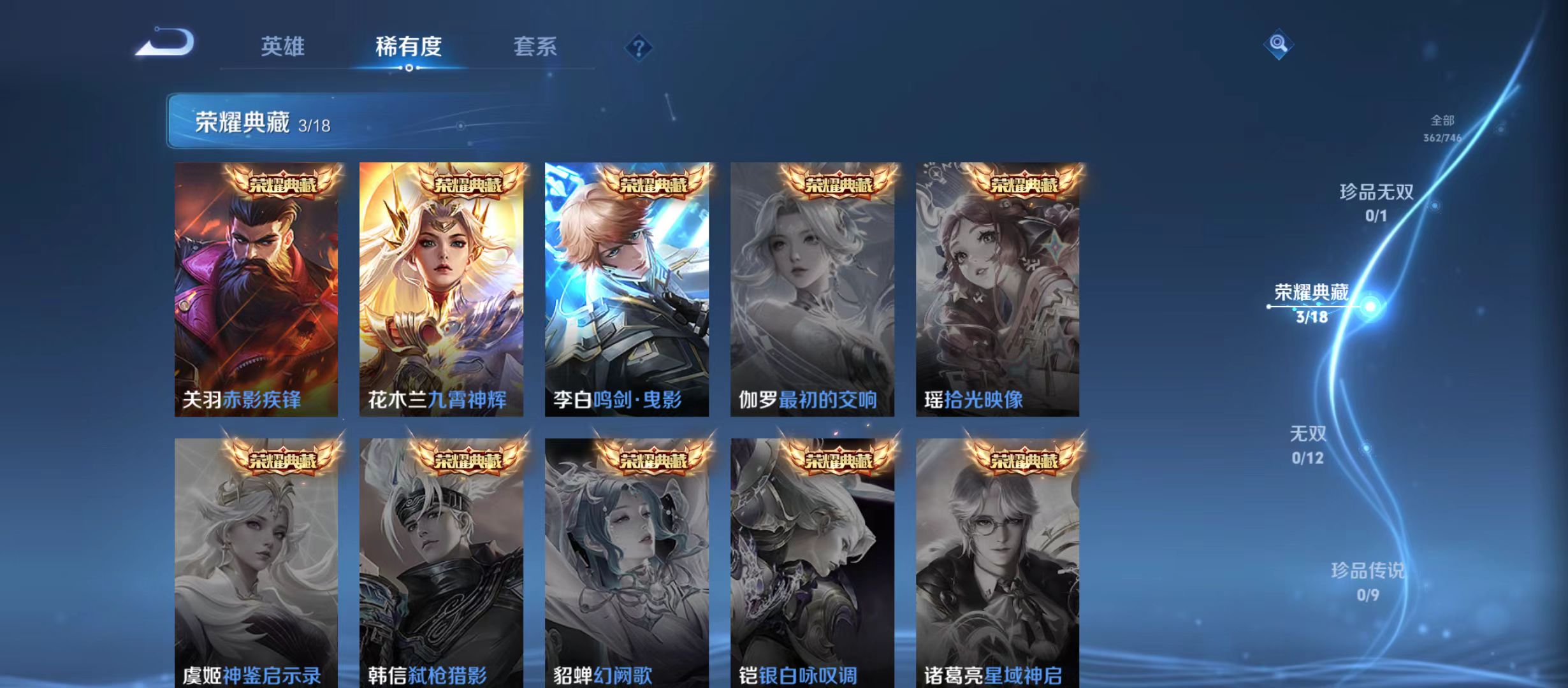 txwz22957-v8 362皮肤 3典藏鸣剑·曳影,赤影疾锋,九霄神辉 31传说神树通天,飞鸢探春,霜月吟,时之恋人,黄金射手座,乘龙·问璇玑,乘龙·淬吴钩,乘龙·铭钟鼎,启明星使,一念神魔,祈雪灵祝,仲夏夜之梦,无双飞将,音你心动,地狱之眼,音你心动,深海之息,久胜战神,寅虎·赤拳,李 ,凤求凰,愿照·岁时盈,超时空战士,黄金狮子座,续相思,愿照·九州拓,愿照·山河定,愿照·福禄聚,鸣野蒿,愿照·众生和,愿照·千秋盛 115史诗