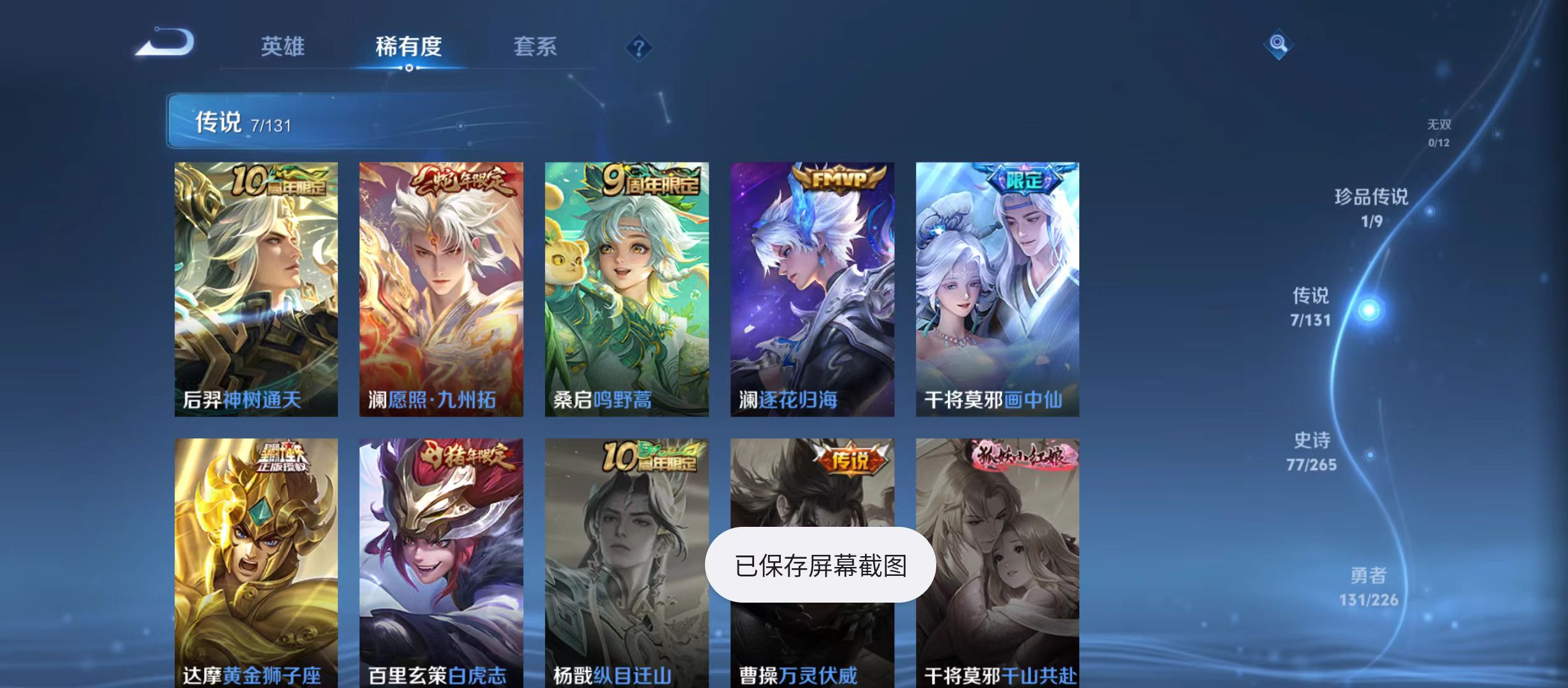 txwz22965-v7 269皮肤 1典藏弑呛猎影 1珍品怪盗基德 7传说画中仙,黄金狮子座,神树通天,愿照·九州拓,鸣野蒿,逐花归海,白虎志 77史诗
