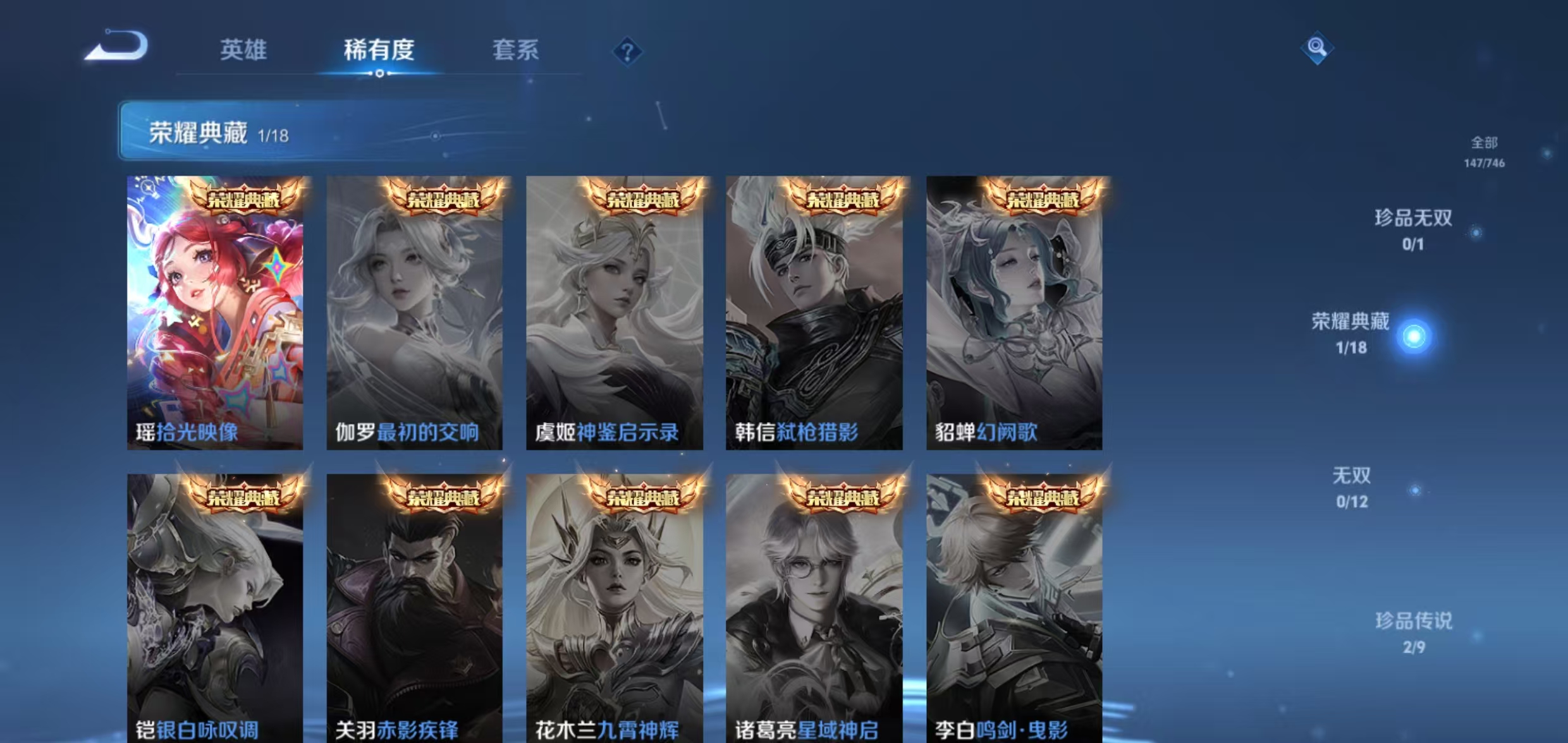 txwz22986-v7极品女号地场次(千场号) 147皮肤 1典藏(拾光映像)2珍品(大耳狗之梦,器灵·落星盏) 12传说( 音你心动,神树通天,游龙清影,至美·化雀舞,续相思,愿照·岁时盈,幻光神呛,愿照·众生和,愿照·九州拓,鸣野蒿,一念神魔,愿照·福禄聚)