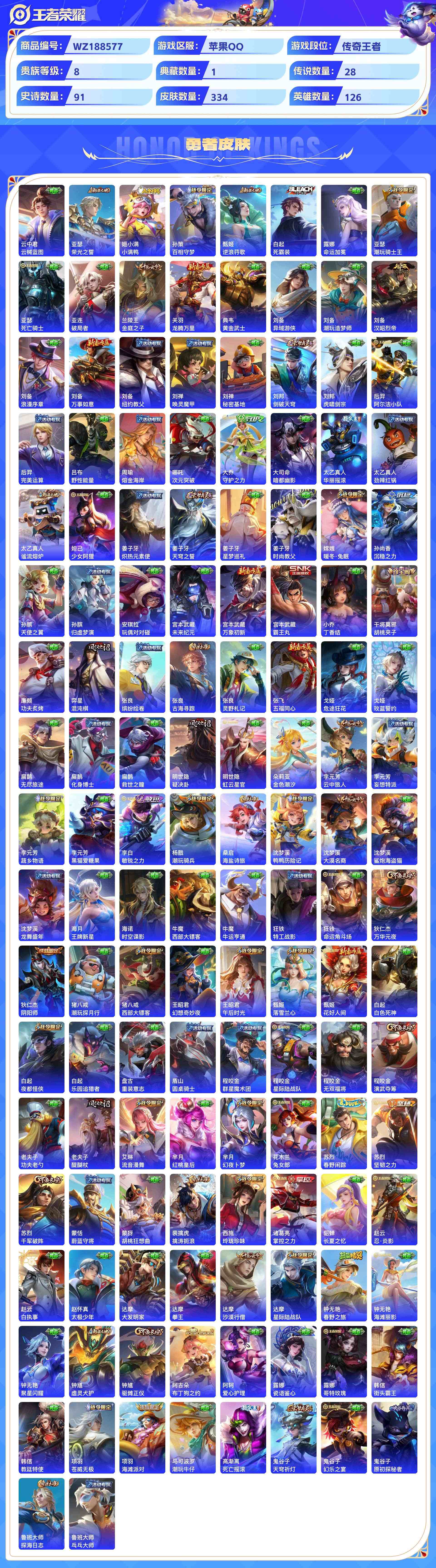 wz188577|精品号【荣耀典藏】九霄神辉【珍品传说】器灵·落星盏酷洛米之心【传说皮肤】时之恋人愿照·山河定怒海麟威音你心动补天末日机甲齐天大圣末日机甲挚爱之约地狱之眼山海·琳琅生苹果qq 贵族8级 334皮 1典藏 2珍品传说 28传说 91史诗3星传说10个性按键1天幕