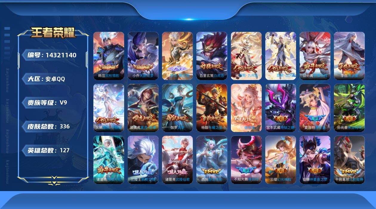 [14321140]可二次 贵族9-贵族积分104291-336皮-2典藏-27传说-1无双-0珍品传说-3全皮-1改名卡 安卓手q31区 营地id471223187永恒钻石ii【无双皮肤】:器灵·螭龙剑【荣耀典藏】:弑呛猎影天鹅之梦【优质限定皮肤】:神威祈雪灵祝白虎志至尊宝凤求凰【传说皮肤】:地狱火寅虎·赤拳续相思幻光神呛久胜战神绯月行地狱之眼愿照·山河定愿照·千秋盛