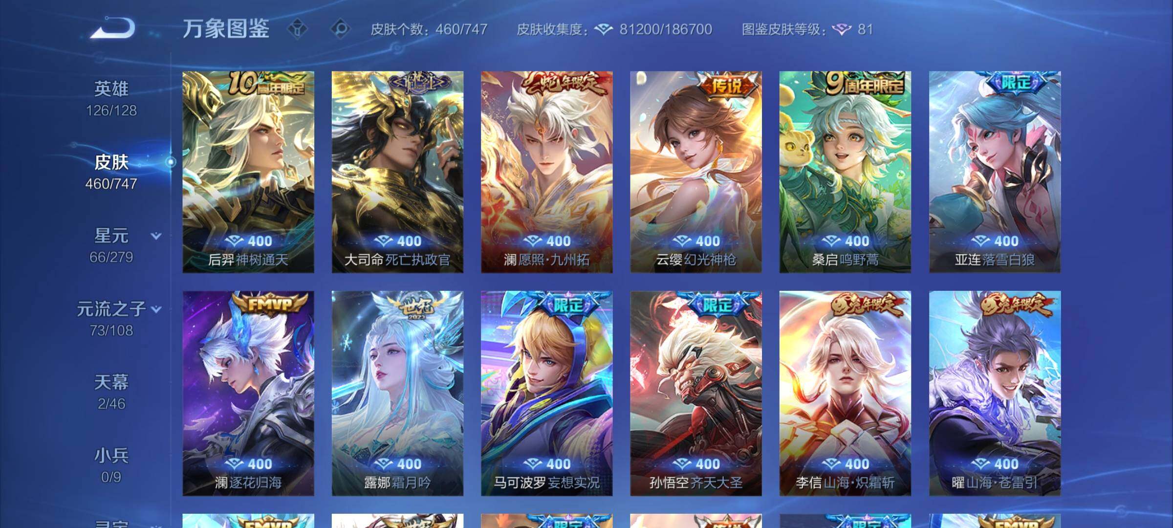 【店铺推荐高质量v9·差19751点卷升v10·馥梦繁花·鸣剑曳影·星域神启·甄姬雪境奇遇·器灵螭龙剑·7珍品传说·全皮曜·玉鸾吟·李·寅虎赤拳·猪年全限定·五虎上将全限定·时雨天司·山海苍雷引·山海炽霜斩·可二次】w7220-安卓q-126英雄-460皮肤-21王者印记-300铭文-贵族积分16w【贵族9】【2典藏·1珍品无双·2无双·7珍品·6星传说·41传说·2天幕·33按键·2