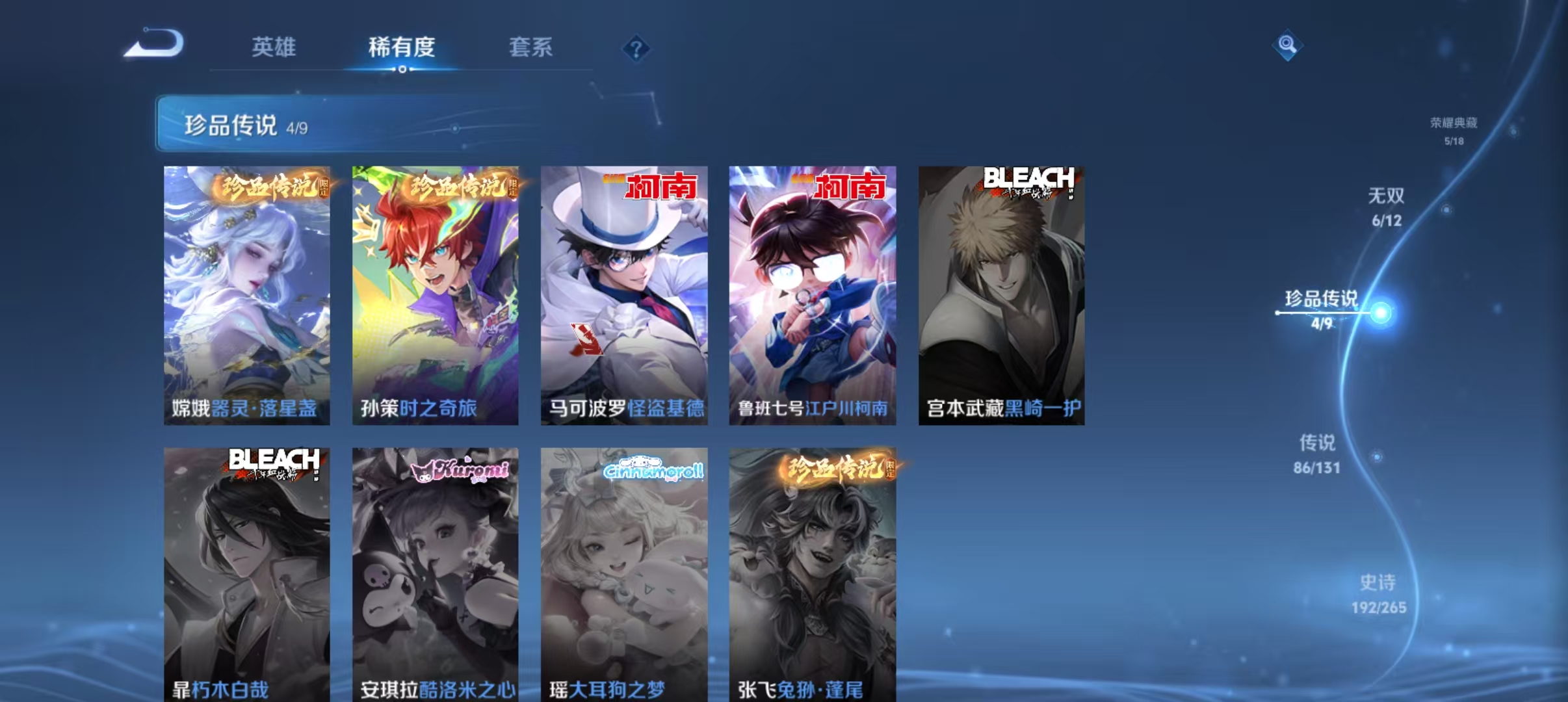 txwz23020(v10-580皮6无双4珍品86传说限定多多)库洛米时间天幕 纸笺情愫夭幕 铃舟系梦 6无双(离恨烟,花合斗,神罪,器灵·螭龙剑,青丘·九尾,时之魔女)6水晶(神鉴启示录 银·白咏叹调 幻阙歌 天鹅之梦 拾光映像 武则天)4珍品(器灵·落星盏,时之奇旅,怪盗基德,江户川柯南)86传说(海洋之心,纵目迁山,神树通天,星之鸣奏,幻光神呛,愿照·千秋盛,愿照·福禄聚,愿照·岁时盈,愿照·众生和,玄雷天君,山海·琳琅生,映山客,鸣野蒿,妄想实况,画中仙,久胜战神,牧神诗旅,燃星之曲,霜北刀,炽翼辉光,启示之音,冥王哈迪斯,诗剑行,记忆之芯,音你闪耀,战鼓燎原,霜月吟,无尽星芒,碎云,黄金射手座,游龙清影,群星魔术团,胖达荣荣,时雨天司,音你心动,觅芳踪,黄金狮子座,仲夏夜之梦,乞巧织情,飞鸢探春,惊梅引,小动物乐团,挚爱之约,挚爱花嫁,心动手记,天魔缭乱,黄金天蝎座,黄金白羊座,神器·狴犴令,金乌负日,末日机甲,时之恋人,落雪白狼,曦玄引,乘龙·问璇玑,乘龙·淬吴钩,乘龙·铭钟鼎,末日机甲,琥珀纪元,补天,逐花归海,淬星耀世,影龙天霄,时之奇旅,遇见神鼓,时之奇旅,花朝如约,一念神魔,灼幽烈阳,浮生妄,地狱之眼,百相守梦,绛天战甲,齐天大圣,山海·炽霜斩,怒海麟威,寅虎·瑞焰,异界灵契,启明星使,炽阳神光,零号·赤焰,超时空战士,云鹰飞将,太华,云霓雀翎,地狱火)太花红枫 寅虎赤焰 零号雷霆 时之思念 幽冥火 金色仲夏夜 未来机甲 幽冥之眼 至尊宝
