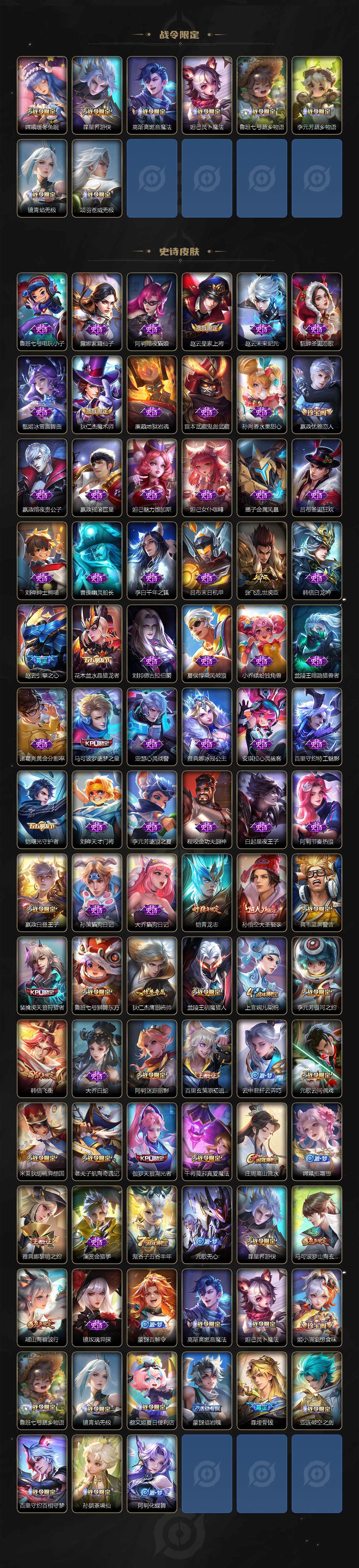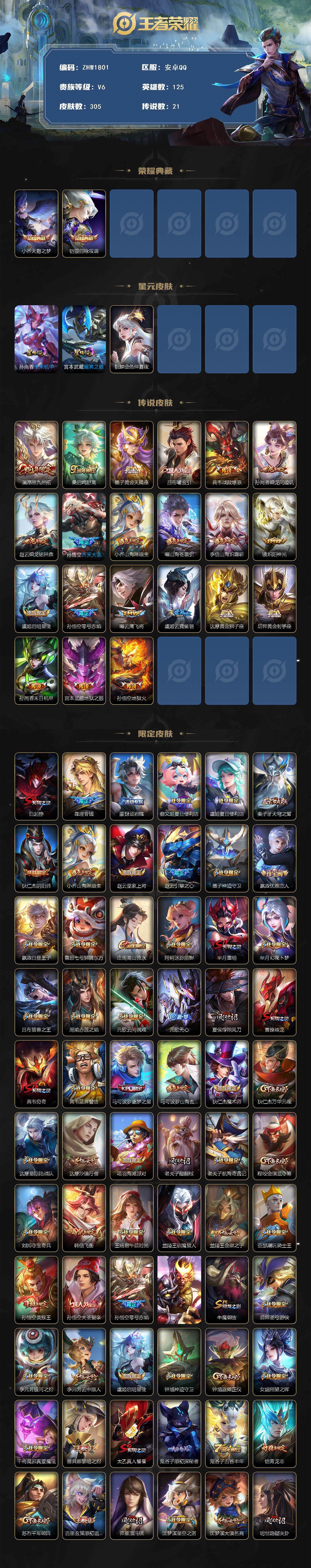 可二次【店主推荐捡漏号!可直接换绑】安卓q-v6-永恒钻石v段位-125英雄-305皮肤-2典藏皮肤-21传说-86史诗-3星元 【荣耀典藏】:小乔天鹅之梦,铠银白咏叹调 【传说皮肤】:澜愿照九州拓,桑启鸣野蒿,墨子黄金天蝎座,吕布曦玄引,典韦战鼓燎原,孙尚香乘龙问璇玑,赵云乘龙铭钟鼎,孙悟空齐天大圣,小乔山海琳琅生,曜山海苍雷引,李信山海炽霜斩,镜炽阳神光,虞姬启明星使,孙悟空零号赤焰,曜云鹰飞将,虞姬云霓雀翎,达摩黄金狮子座,后羿黄金射手座,孙尚香末日机甲,宫本武藏地狱之眼,孙悟空地狱火 【限定皮肤】:白起狰,暃埋骨钱,蒙犽顽岩魄,蔡文姬夏日便利店,虞姬夏日便利店,姜子牙天穹之誓,狄仁杰阴阳师,小乔山海琳琅生,赵云皇家上将,赵云引擎之心,墨子神迹守卫,嬴政优雅恋人,嬴政白昼王子,鲁班七号狮舞东方,庄周高山流水,阿轲迷踪丽影,芈月重明,芈月幻夜卜梦,吕布猎兽之王,周瑜赤莲之焰,元歌云间偶戏,元歌无心,夏侯惇朔风刀,曹操烛龙,典韦穷奇,典韦蓝屏警告,马可波罗逐梦之星,马可波罗山海玄木吟,狄仁杰魔术师,狄仁杰万华元夜,达摩星际陆战队,达摩沙漠行僧,项羽海滩派对,老夫子醍醐杖,老夫子航海奇遇记,程咬金演武夺筹,刘邦夺宝奇兵,韩信飞衡,王昭君午后时光,兰陵王驯魔猎人,兰陵王金庭之子,亚瑟潮玩骑士王,孙悟空美猴王,孙悟空大圣娶亲,孙悟空零号赤焰,孙悟空齐天大圣,牛魔御旌,后羿圣弓游侠,李元芳银河之约,李元芳云中旅人,虞姬启明星使,钟馗神迹守卫,钟馗驱傩正仪,女娲朔望之晖,干将莫邪真爱魔法,雅典娜黎明之约,太乙真人饕餮,鬼谷子原初探秘者,鬼谷子五谷丰年,铠青龙志,苏烈千军破阵,百里玄策原初追逐者,弈星混沌棋,沈梦溪星空之诺,沈梦溪大漠名商,明世隐疑决卦,裴擒虎天狼狩猎者,裴擒虎擒涛扼浪,狂铁御狮,米莱狄御霄,米莱狄胡桃异想国,瑶山海碧波行,云中君纤云弄巧,李信山海炽霜斩,伽罗天狼溯光者,盾山御銮,上官婉儿梁祝,嫦娥拒霜思,嫦娥暖冬兔眠,曜山海苍雷引,桑启海盐诗旅,暃星界游侠,张良古海寻踪,蒙犽百解令,高渐离燃音魔法,妲己灵卜魔法,鬼谷子天穹祈灯,姬小满妄想食味,孙尚香乘龙问璇玑,赵云乘龙铭钟鼎,吕布曦玄引,沈梦溪龙舞盛年,鲁班七号蔬乡物语,李元芳蔬乡物语,刘邦剑破天穹,程咬金群星魔术团,镜青焰无极,项羽苍威无极,周瑜熔金海岸 【年限皮肤】:铠青龙志,孙悟空美猴王,韩信飞衡,瑶山海碧波行,马可波罗山海玄木吟,李信山海炽霜斩,小乔山海琳琅生,曜山海苍雷引,孙尚香乘龙问璇玑,赵云乘龙铭钟鼎 【赛季限定】:白起狰,芈月重明,夏侯惇朔风刀,曹操烛龙,典韦穷奇,狄仁杰万华元夜,达摩沙漠行僧,老夫子醍醐杖,程咬金演武夺筹,兰陵王金庭之子,张良古海寻踪,牛魔御旌,李元芳云中旅人,钟馗驱傩正仪,雅典娜黎明之约,太乙真人饕餮,鬼谷子原初探秘者,苏烈千军破阵,百里玄策原初追逐者,弈星混沌棋,沈梦溪大漠名商,明世隐疑决卦,裴擒虎擒涛扼浪,狂铁御狮,米莱狄御霄,盾山御銮,桑启海盐诗旅,鬼谷子天穹祈灯,刘邦剑破天穹,姜子牙天穹之誓 【战令限定】:墨子神迹守卫,蔡文姬夏日便利店,虞姬夏日便利店,嬴政白昼王子,鲁班七号狮舞东方,阿轲迷踪丽影,芈月幻夜卜梦,吕布猎兽之王,周瑜赤莲之焰,元歌云间偶戏,典韦蓝屏警告,达摩星际陆战队,老夫子航海奇遇记,刘邦夺宝奇兵,王昭君午后时光,兰陵王驯魔猎人,亚瑟潮玩骑士王,后羿圣弓游侠,李元芳银河之约,钟馗神迹守卫,女娲朔望之晖,干将莫邪真爱魔法,沈梦溪星空之诺,米莱狄胡桃异想国,嫦娥暖冬兔眠,暃星界游侠,高渐离燃音魔法,妲己灵卜魔法,鲁班七号蔬乡物语,李元芳蔬乡物语,镜青焰无极,项羽苍威无极 【史诗皮肤】:鲁班七号电玩小子,露娜紫霞仙子,阿轲暗夜猫娘,赵云皇家上将,赵云未来纪元,貂蝉圣诞恋歌,甄姬冰雪圆舞曲,狄仁杰魔术师,廉颇地狱岩魂,宫本武藏鬼剑武藏,孙尚香水果甜心,嬴政优雅恋人,嬴政暗夜贵公子,嬴政摇滚巨星,妲己魅力维加斯,妲己女仆咖啡,墨子金属风暴,吕布圣诞狂欢,刘禅绅士熊喵,曹操幽灵船长,李白千年之狐,吕布末日机甲,张飞乱世虎臣,韩信白龙吟,赵云引擎之心,花木兰水晶猎龙者,刘邦德古拉伯爵,夏侯惇乘风破浪,小乔缤纷独角兽,兰陵王暗隐猎兽者,诸葛亮黄金分割率,马可波罗逐梦之星,亚瑟心灵战警,雅典娜冰冠公主,安琪拉心灵骇客,百里守约特工魅影,铠曙光守护者,刘禅天才门将,李元芳逐浪之夏,程咬金功夫厨神,白起星夜王子,阿轲节奏热浪,嬴政白昼王子,孙策猫狗日记,大乔猫狗日记,铠青龙志,孙悟空大圣娶亲,典韦蓝屏警告,裴擒虎天狼狩猎者,鲁班七号狮舞东方,狄仁杰鹰眼统帅,兰陵王驯魔猎人,上官婉儿梁祝,李元芳银河之约,韩信飞衡,大乔白蛇,阿轲迷踪丽影,百里玄策原初追逐者,云中君纤云弄巧,元歌云间偶戏,米莱狄胡桃异想国,老夫子航海奇遇记,伽罗天狼溯光者,干将莫邪真爱魔法,庄周高山流水,嫦娥拒霜思,雅典娜黎明之约,澜赏金猎手,鬼谷子五谷丰年,元歌无心,暃星界游侠,马可波罗山海玄木吟,瑶山海碧波行,镜玫瑰异探,蒙犽百解令,妲己灵卜魔法,高渐离燃音魔法,姬小满妄想食味,鲁班七号蔬乡物语,镜青焰无极,蔡文姬夏日便利店,蒙犽顽岩魄,暃埋骨钱,亚连破空之剑,百里守约百相守梦,孙膑茶境仙,阿轲化蝶舞 【其他皮肤】:项羽海滩派对,韩信教廷特使,韩信街头霸王,露娜哥特玫瑰,达摩大发