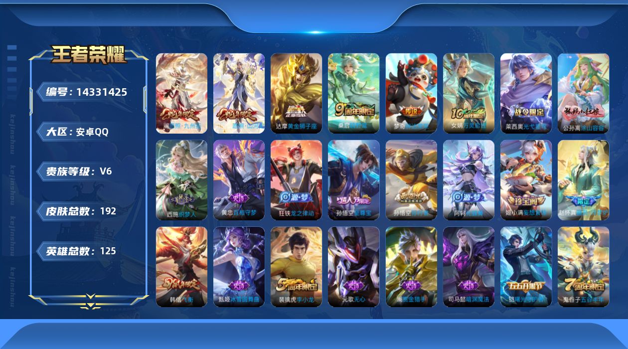 [14331425]积分夺宝290 安卓q-192皮肤-6传说-54史诗 【英雄全皮】:孙权全皮 【传说皮肤】:后羿神树通天,司空震愿照山河定,澜愿照九州拓,桑启鸣野蒿,达摩黄金狮子座,梦奇胖达荣荣 【限定皮肤】:蒙犽顽岩魄,姜子牙天穹之誓,杨戬破阵退雄兵,狄仁杰阴阳师,赵云皇家上将,高渐离死亡摇滚,高渐离玩趣恶龙,元歌无心,狄仁杰魔术师,狄仁杰万华元夜,达摩沙漠行僧,项羽海滩派对,程咬金演武夺筹,韩信飞衡,兰陵王金庭之子,孙悟空至尊宝,孙悟空孙行者,李元芳云中旅人,钟馗驱傩正仪,鬼谷子五谷丰年,百里玄策原初追逐者,沈梦溪大漠名商,裴擒虎李小龙,裴擒虎擒涛扼浪,米莱狄胡桃异想国,云中君纤云弄巧,鲁班大师探海日志,桑启海盐诗旅,阿古朵江河有灵,张良古海寻踪,蒙恬荣光圣徽,鬼谷子天穹祈灯,姬小满妄想食味,沈梦溪龙舞盛年,刘邦剑破天穹,程咬金群星魔术团,周瑜熔金海岸 【年限皮肤】:韩信飞衡 【赛季限定】:狄仁杰万华元夜,达摩沙漠行僧,程咬金演武夺筹,兰陵王金庭之子,张良古海寻踪,李元芳云中旅人,钟馗驱傩正仪,百里玄策原初追逐者,沈梦溪大漠名商,裴擒虎擒涛扼浪,鲁班大师探海日志,桑启海盐诗旅,鬼谷子天穹祈灯,蒙恬荣光圣徽,刘邦剑破天穹,姜子牙天穹之誓 【战令限定】:米莱狄胡桃异想国 【史诗皮肤】:赵云皇家上将,赵云未来纪元,甄姬冰雪圆舞曲,狄仁杰魔术师,廉颇地狱岩魂,宫本武藏鬼剑武藏,孙尚香水果甜心,妲己魅力维加斯,妲己女仆咖啡,墨子龙骑士,吕布圣诞狂欢,曹操幽灵船长,吕布末日机甲,张飞乱世虎臣,孙悟空至尊宝,刘邦德古拉伯爵,夏侯惇乘风破浪,小乔缤纷独角兽,兰陵王暗隐猎兽者,雅典娜冰冠公主,百里守约特工魅影,铠曙光守护者,蔡文姬舞动绿茵,程咬金功夫厨神,白起星夜王子,孙策猫狗日记,伽罗箭羽风息,狄仁杰鹰眼统帅,韩信飞衡,百里玄策原初追逐者,裴擒虎李小龙,云中君纤云弄巧,米莱狄胡桃异想国,孙悟空孙行者,司马懿暗渊魔法,澜赏金猎手,鬼谷子五谷丰年,元歌无心,刘禅电玩爆裂旋风,阿古朵江河有灵,蒙恬荣光圣徽,姬小满妄想食味,蒙犽顽岩魄,马可波罗星界特工,牛魔星界战将,赵怀真器灵浮梦炉,阿轲化蝶舞,狂铁龙之律动,黄忠百相守梦,西施织梦人,公孙离涂山容容,莱西奥光弋星穹,女娲万灵启世,少司缘巫礼祀神 【其他皮肤】:项羽海滩派对,韩信教廷特使,韩信街头霸王,露娜哥特玫瑰,阿轲爱心护理,达摩大发明家,赵云白