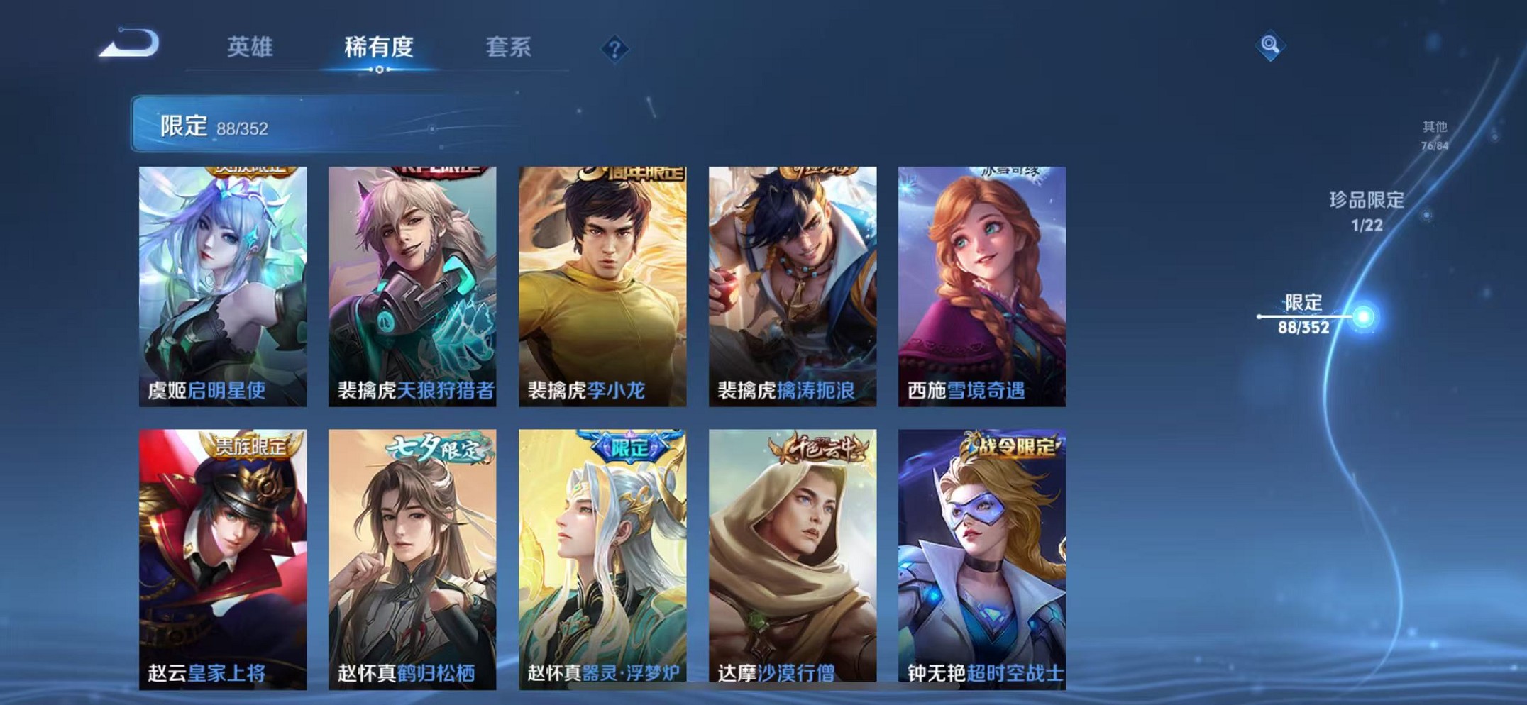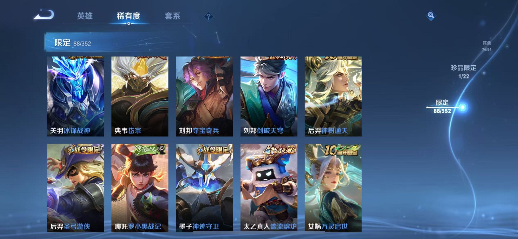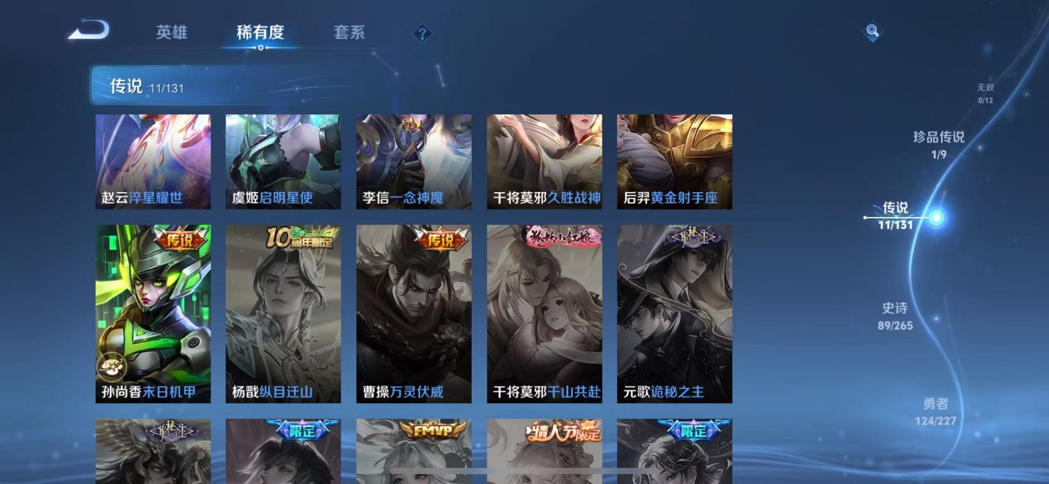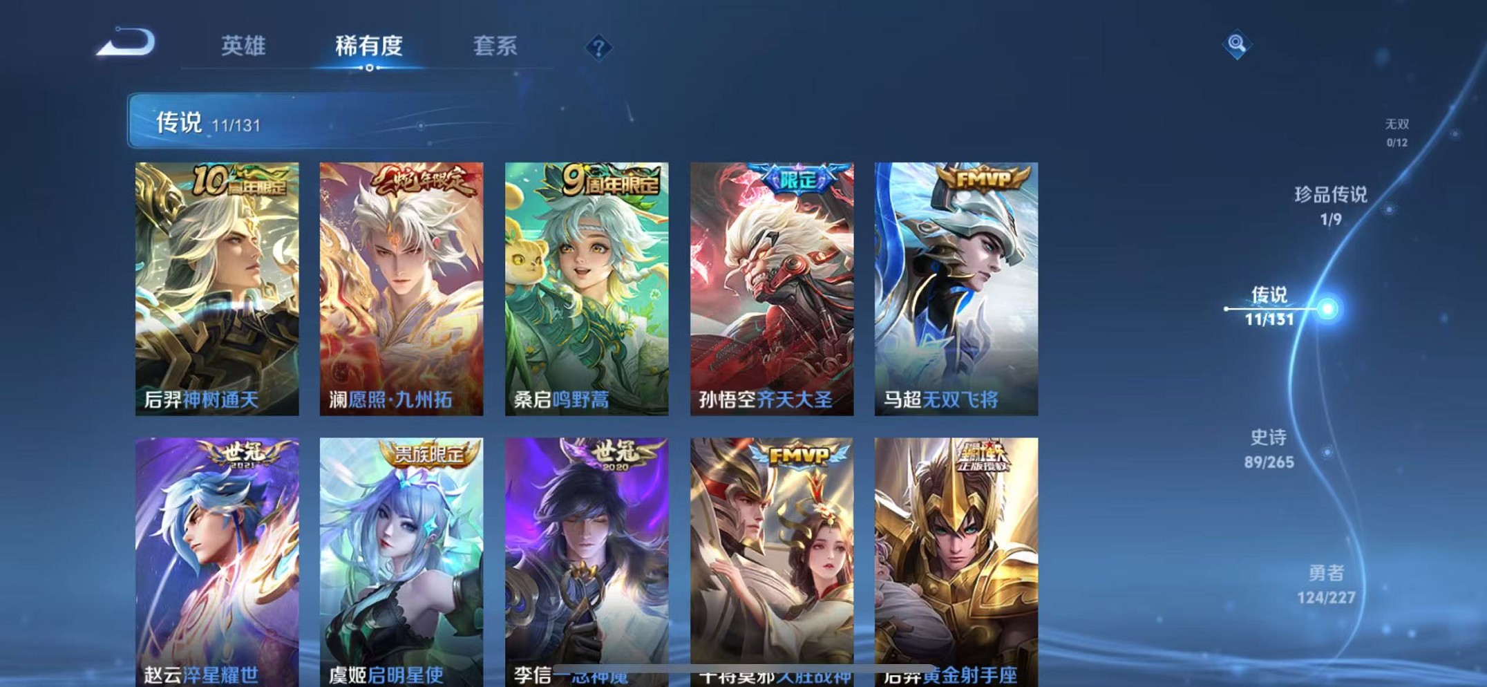 【302皮肤1典藏1星元11传说1珍品2金标 可秒换绑】苹果q-125英雄【1水晶】九霄神辉【1星元】未来机甲【11传说】神树通天 鸣野蒿 愿照·九州拓 齐天大圣 无双飞将 久胜战神 黄金射手座 一念神魔 末日机甲 启明星使 淬星耀世【1珍宝传说】器灵·落星盏【83史诗】万灵启世 冰锋战神 飞衡 龙之律动 神威 至尊宝 百相守梦 玫瑰异探 器灵·浮梦炉 涂山容容 星界游侠 顽趣 鹤归松栖 山海·