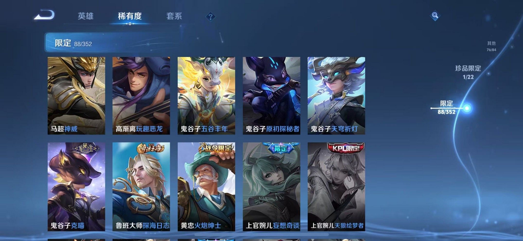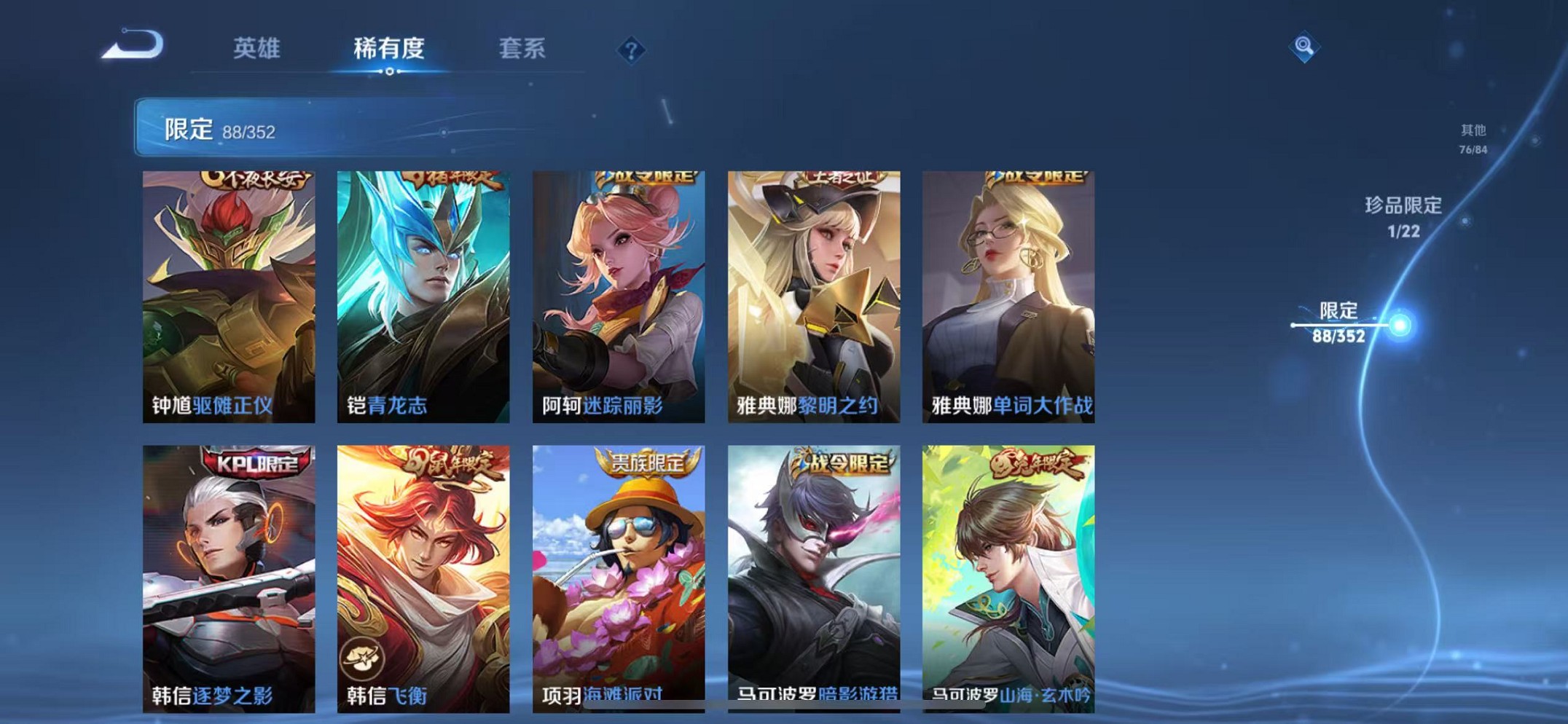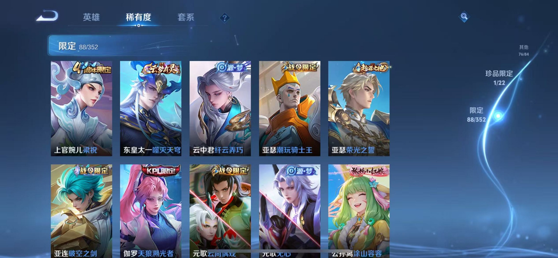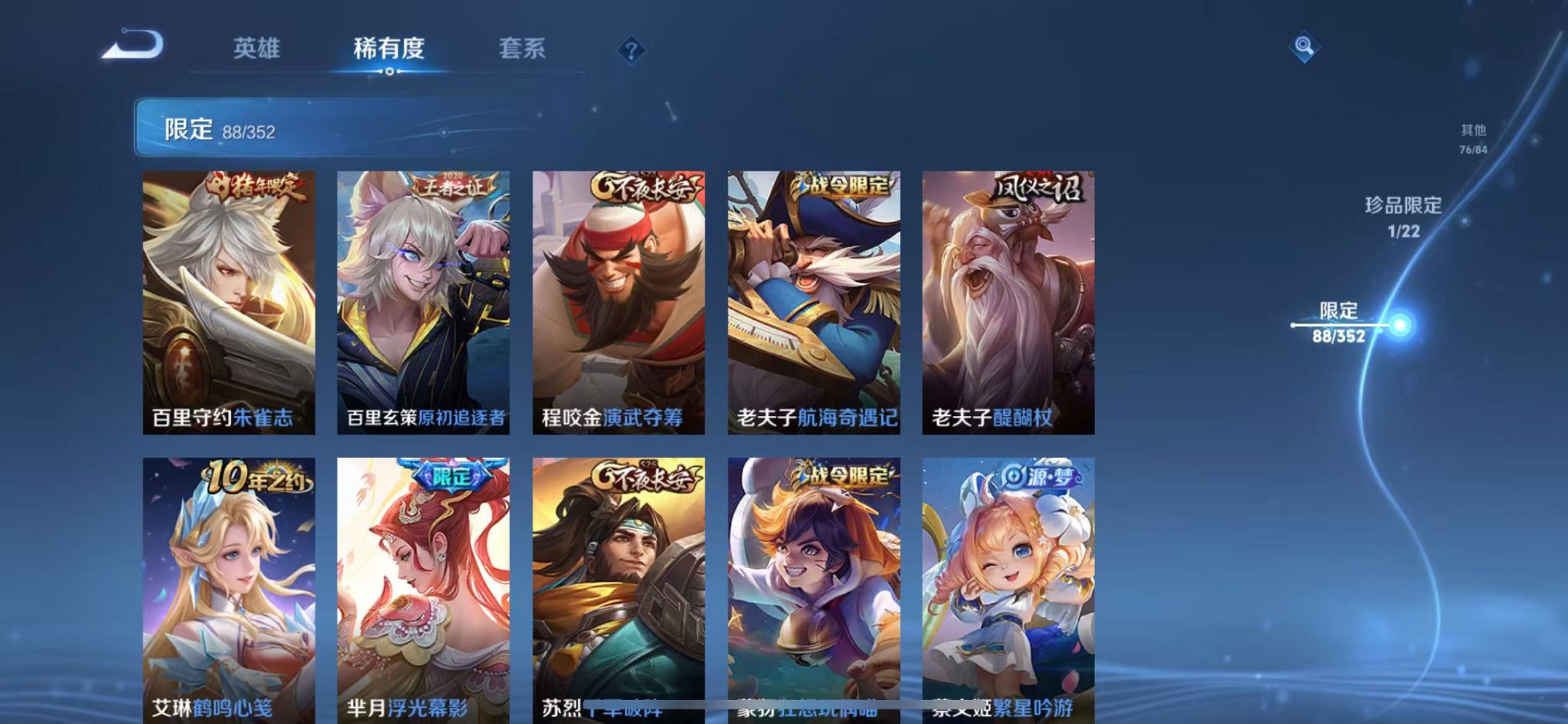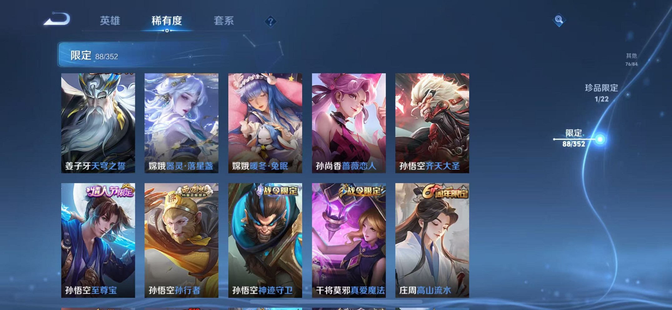 【302皮肤1典藏1星元11传说1珍品2金标 可秒换绑】苹果q-125英雄【1水晶】九霄神辉【1星元】未来机甲【11传说】神树通天 鸣野蒿 愿照·九州拓 齐天大圣 无双飞将 久胜战神 黄金射手座 一念神魔 末日机甲 启明星使 淬星耀世【1珍宝传说】器灵·落星盏【83史诗】万灵启世 冰锋战神 飞衡 龙之律动 神威 至尊宝 百相守梦 玫瑰异探 器灵·浮梦炉 涂山容容 星界游侠 顽趣 鹤归松栖 山海·