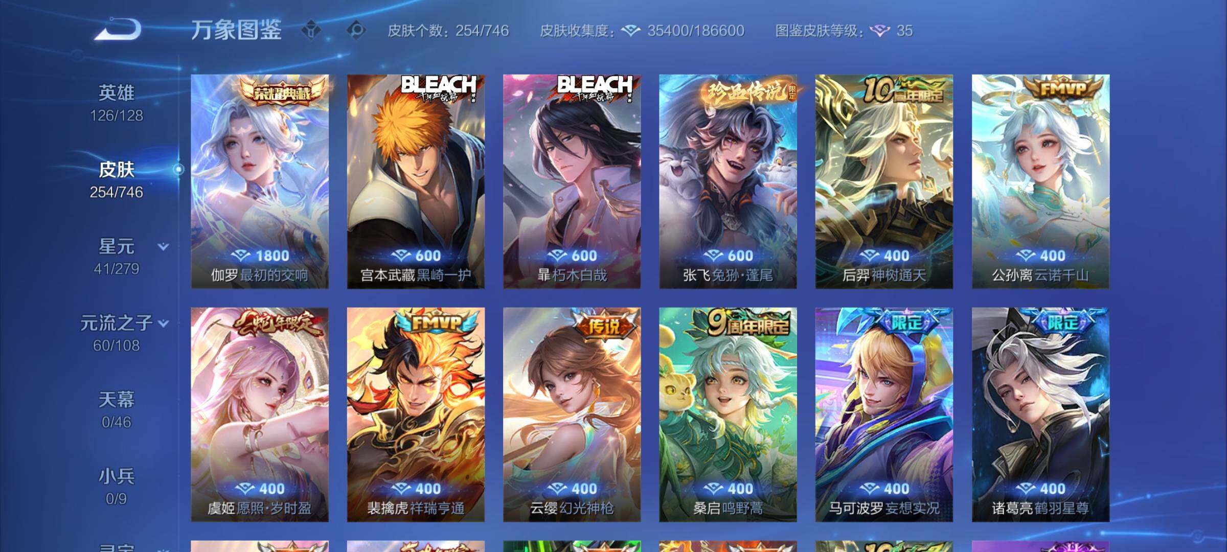 2291838-可换绑【性价比优质号 6金标 伽罗典藏 三珍品 凤求凰 多传说限定号】 1星传说 12按键 21王者印记 满级铭文 可二次2113 安卓q-v7-254皮肤-1典藏皮肤-3珍品传说-12传说-61史诗【英雄全皮】:影全皮【荣耀典藏】:伽罗最初的交响【珍品传说】:张飞兔狲蓬尾,暃朽木白哉,宫本武藏黑崎一护【星元皮肤】:李白玉鸾吟【传说皮肤】:后羿神树通天,公孙离云诺千山,虞