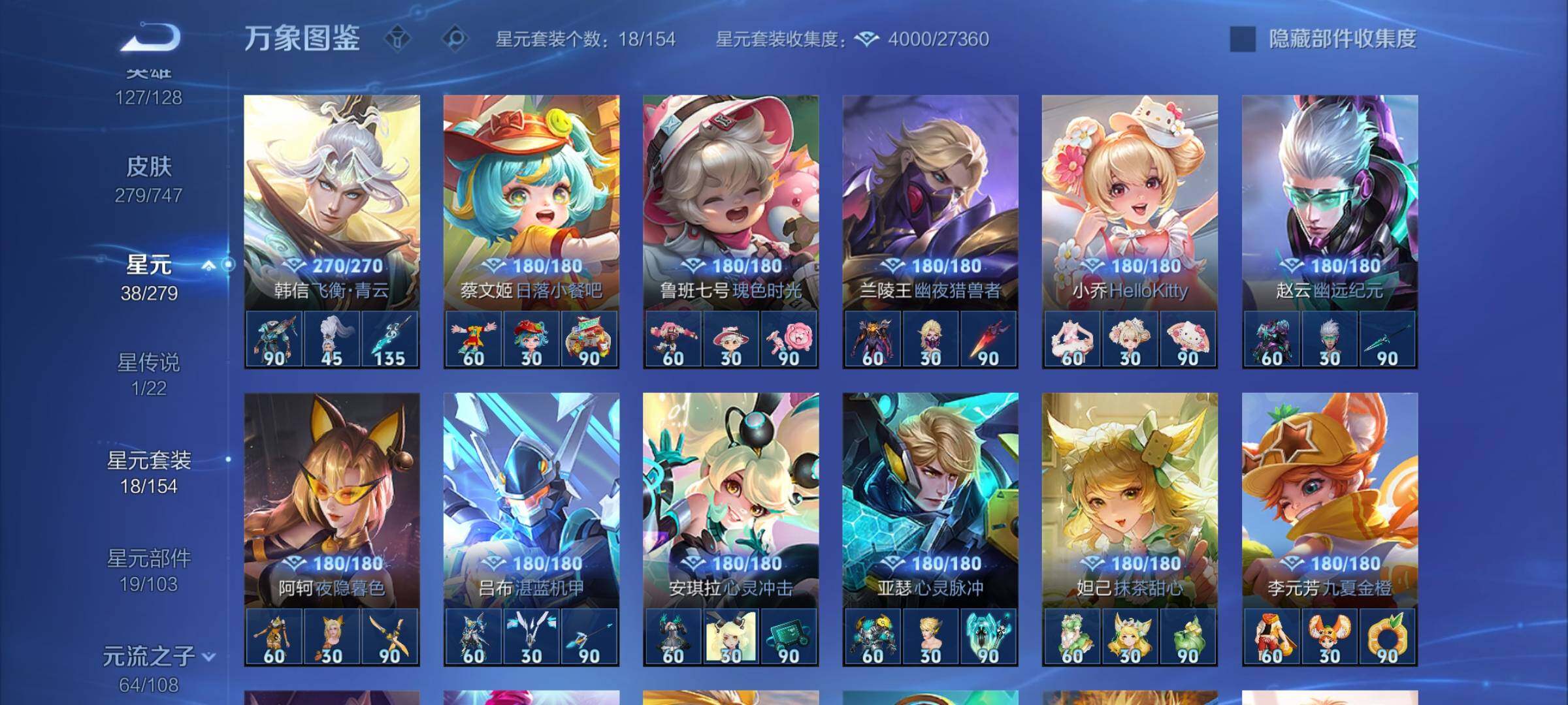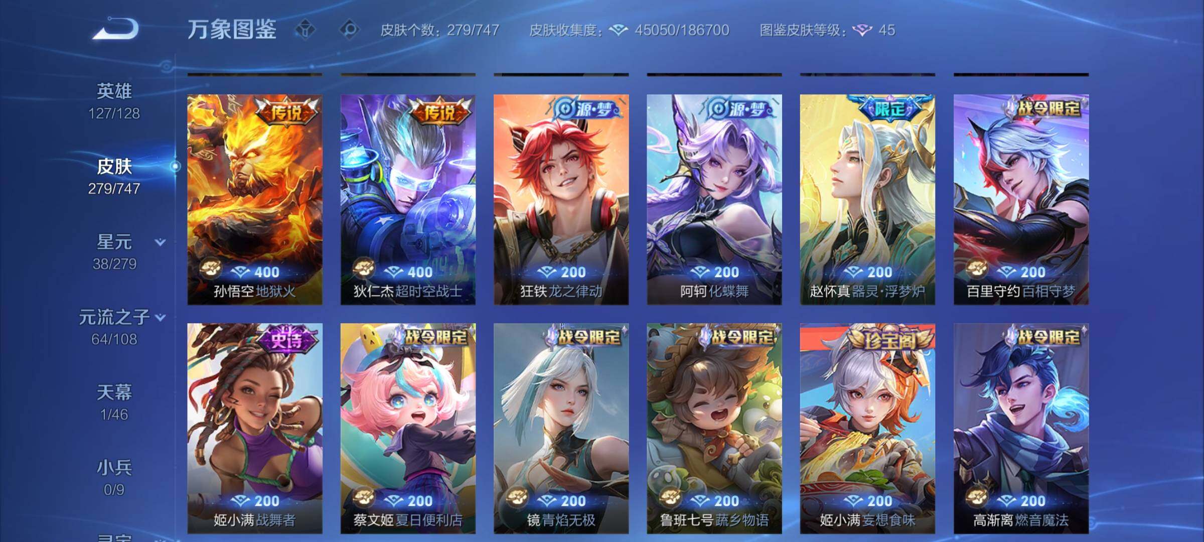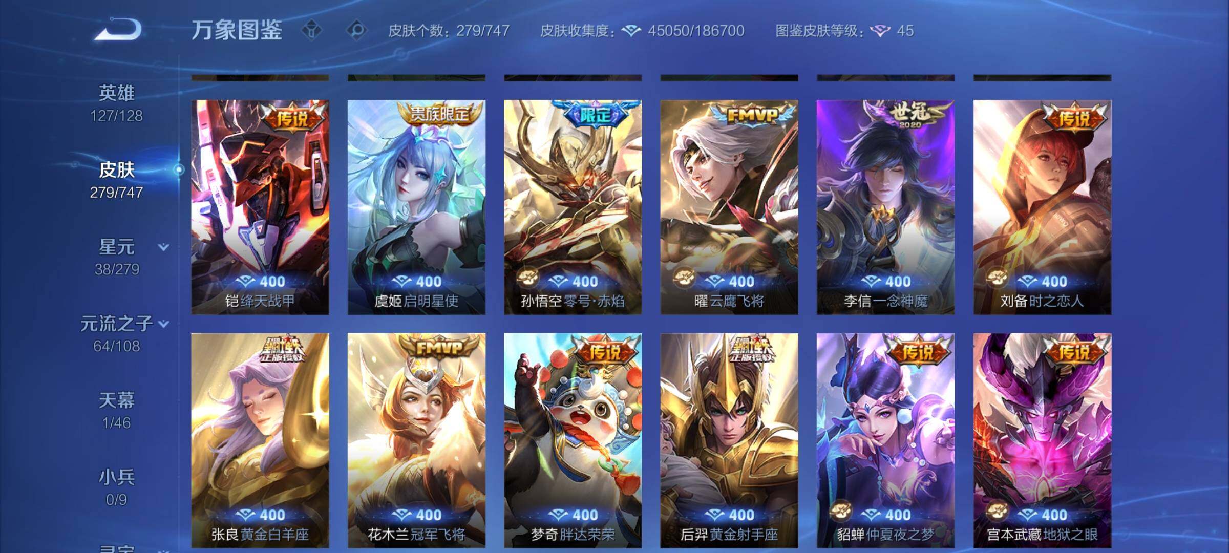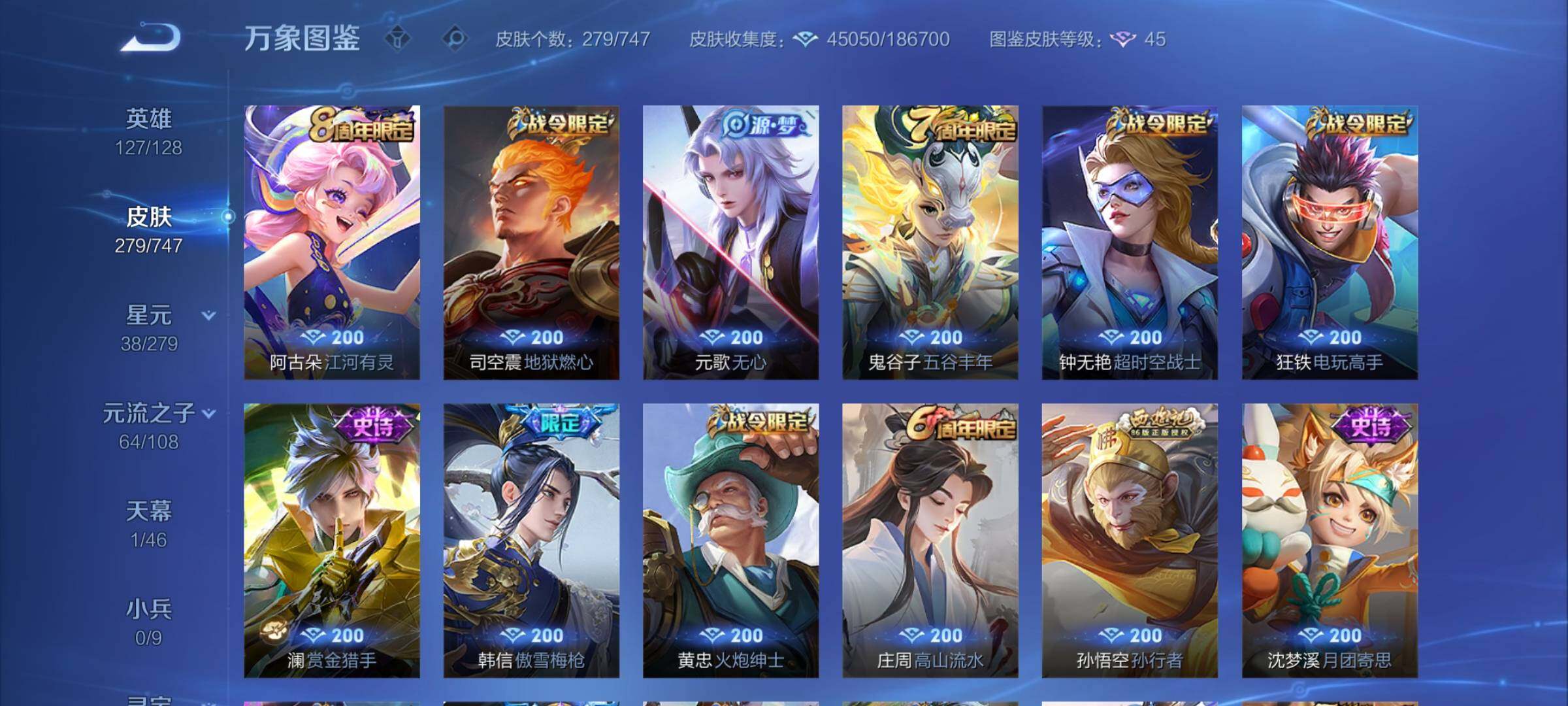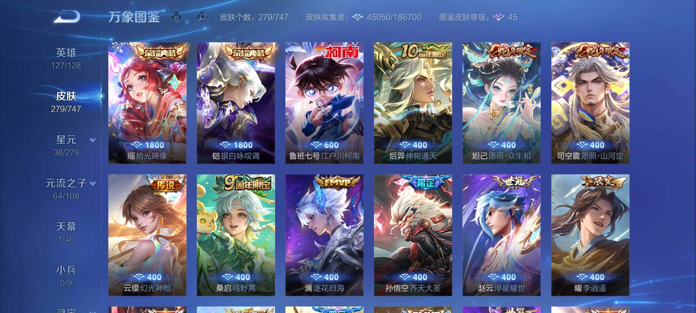【高性价比·银白咏叹调·拾光映像·柯南·愿照山河定·愿照众生和·齐天大圣·李·淬星耀世·零号赤焰·一念神魔·飞衡·虎魄·可二次】w7231-安卓q-127英雄-279皮肤-5王者印记-220铭文-贵族积分6w【贵族8】【2典藏·1珍品·1星传说·23传说·1天幕·9按键】【因赛季更新游戏段付以上号为准!】 【英雄全皮】:司空震全皮 【荣耀典藏】:铠银白咏叹调,瑶拾光映像 【珍品传说】: