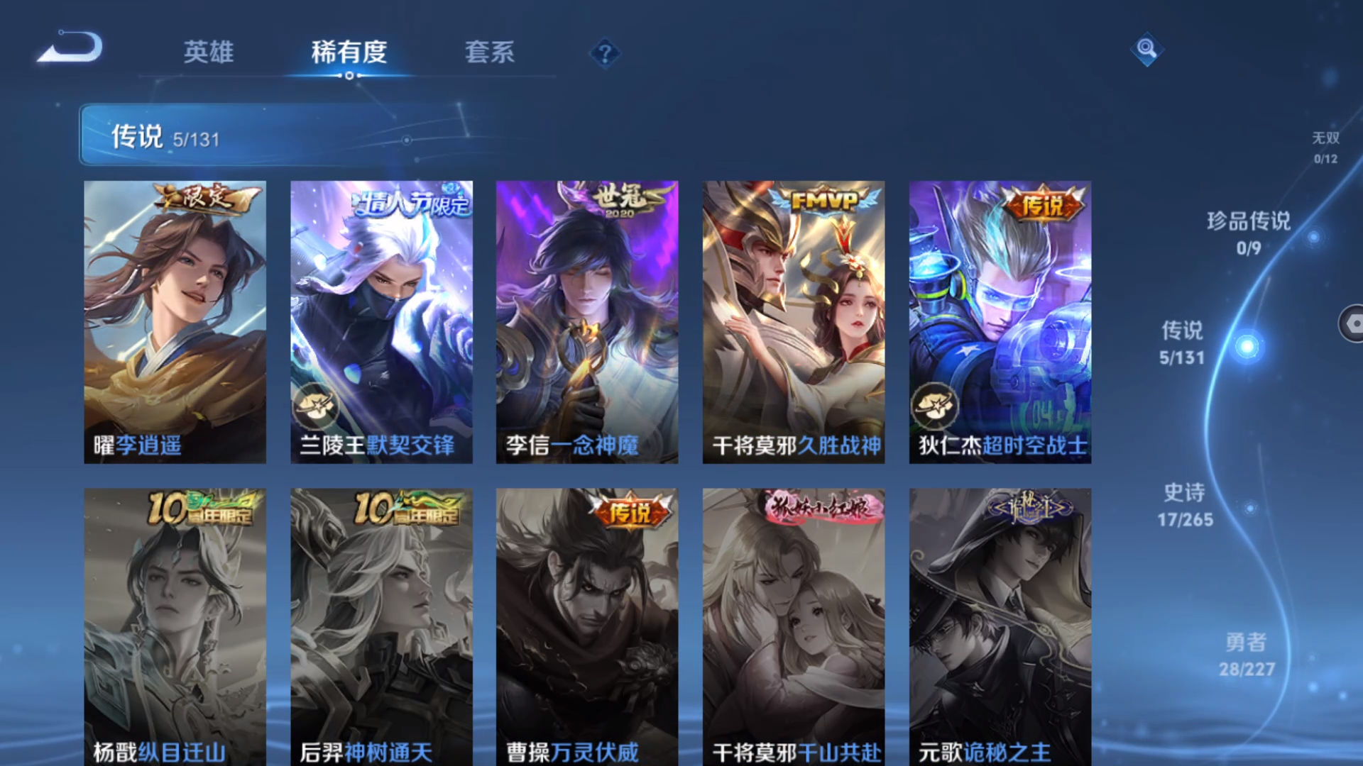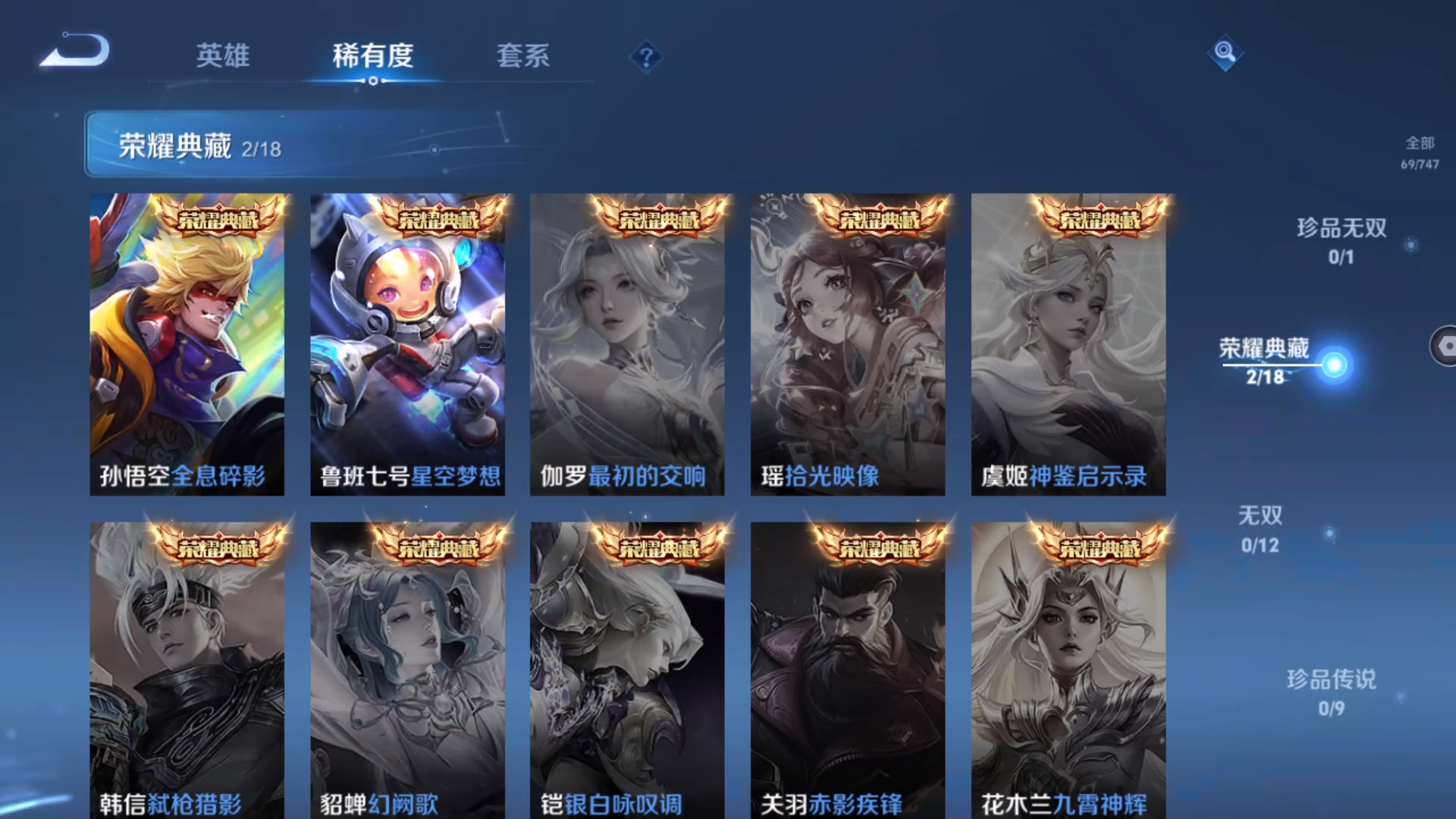 【王者荣耀】【lywz22418】珍品无双0 典藏2 无双0 珍品传说0 传说5 史诗17 英雄69 皮肤69 贵族0级 荣耀典藏:全息碎影|星空梦想__传说皮肤:久胜战神|狄仁杰-超时空战士|一念神魔|李|兰陵王-默契交锋__稀有限定:朱雀志|李小龙|暗影游猎|海滩派对|皇家上将|混沌棋|狂想玩偶喵|魔术师|驱傩正仪|醍醐杖|万华元夜|演武夺筹|疑决卦|阴阳师|云间偶戏|逐梦之光|暗夜猫娘|暗隐猎兽者|冰冠公主|魅力维加斯|魅语|偶像歌手|晚萤|鹰眼统帅|修罗|原初探秘者|单词大作战__优质皮肤:创世神祝|激情绿茵|锦衣卫|启蛰|第七人偶|潮流仙人|街头旋风|幸存者|福禄兄弟|隐刃|范海辛|魇语军师|加勒比小姐|丁香结|坚韧之力|幻想奇妙夜|阿尔法小队|死亡骑士|天使之翼|忍·炎影|街头霸王|无尽征程|拳王|猪八戒-西部大镖客|缤纷绘卷|西施-归虚梦演|鲁班大师-归虚梦演|乓乓大师|蒙犽-归虚梦演|万事如意|太乙真人-圆桌骑士|化身博士|花好人间|潮玩骑士王|炽热元素使__贵族等级:无贵族等级__王者段位:白银2典藏星空梦想,全息碎影 李 ,默契交锋,一念神魔,超时空战士,久胜战神,朱雀志,李小龙