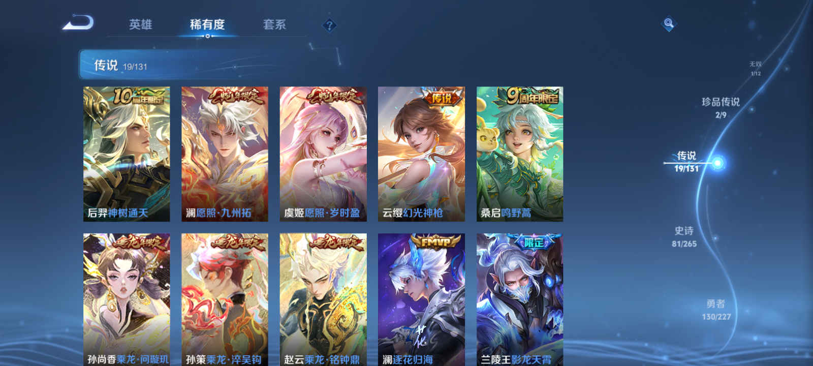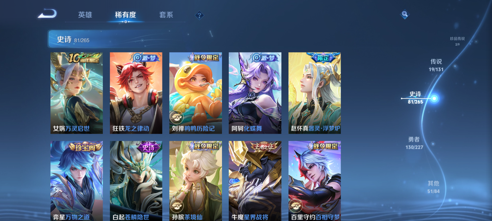 【王者荣耀】【lywz22410】珍品无双0 典藏1 无双1 珍品传说2 传说19 史诗81 英雄127 皮肤285 贵族8级 荣耀典藏:九霄神辉__无双皮肤:群星魔术团__珍品传说:大耳狗之梦|酷洛米之心__传说皮肤:鸣野蒿|启明星使|地狱之眼|一念神魔|云鹰飞将|淬星耀世|浮生妄|画中仙|妄想实况|影龙天霄|逐花归海|乘龙·淬吴钩|乘龙·铭钟鼎|乘龙·问璇玑|山海·炽霜斩|幻光神呛|愿照·岁时盈|愿照·九州拓|神树通天__稀有限定:寅虎·御盾|寅虎·心曲|至尊宝|龙胆|孙行者|山海·玄木吟|拒霜思|百解令|冰霜恋舞曲|大漠名商|古海寻踪|海滩派对|海盐诗旅|华丽摇滚|皇家上将|剑破天穹|江河有灵|蓝屏警告|魔术师|匿光破解者|匿光侦查者|奇幻香踪|擒涛扼浪|青焰无极|燃音魔法|荣光圣徽|探海日志|天狼运算者|天穹祈灯|妄想食味|无心|五谷丰年|纤云弄巧|星界游侠|星空之诺|阴阳师|驭风魔法|原初追逐者|暗隐猎兽者|缤纷独角兽|冰雪圆舞曲|苍穹之光|乘风破浪|乘龙·聚宝船|乘龙·忆丹青|大乔-猫狗日记|德古拉伯爵|地狱岩魂|电玩·爆裂旋风|伽罗-琥珀纪元|功夫厨神|鬼剑武藏|箭羽风息|金属风暴|乐园奇幻夜|李元芳-蔬乡物语|龙骑士|吕布-末日机甲|魅力维加斯|魅语|女仆咖啡|偶像歌手|鲁班七号-蔬乡物语|水果甜心|水晶猎龙者|赵云-未来纪元|星夜王子|摇滚巨星|鹰眼统帅|幽灵船长|遇见神鹿|至美·乘鲤谣|钟无艳-超时空战士|紫霞仙子|百里守约-百相守梦|老夫子-百相守梦|星界特工|噬灭天穹|破空之剑|蔡文姬-夏日便利店|虞姬-夏日便利店|天穹之誓|怒海争锋|修罗|曙光守护者|千年之狐|特工魅影|茶境仙|星界战将|谧流熔炉|苍鳞隐世|万物之道|器灵·浮梦炉|化蝶舞|云中旅人|玲珑珍味|孙悟空-神迹守卫|访茗客|暖冬·兔眠|灵卜魔法|苍威无极|落雪兰心|刘禅-鸭鸭历险记|沈梦溪-鸭鸭历险记|龙之律动|布丁狗之约|虚灵犬护|逆浪荇歌|荣光之誓|万灵启世|鹤鸣心笺__优质皮肤:尼罗河女神|一千零一夜|创世神祝|年年有余|孤猎|午夜歌剧院|未来旅行|激情绿茵|碧珀绯影|秩序猎龙将|森|超能战警|维京掠夺者|踏雪寻梅|启蛰|战争骑士|画中游|生化警戒|第七人偶|潮流仙人|芝加哥教父|街头旋风|绝影神呛|地府判官|幸存者|赤焰之缨|福禄兄弟|隐刃|前尘|特种部队|龙域领主|爱与和平|占星师|魇语军师|极冰防御线|东海龙王|蔷薇王座|灼热之刃|精准探案法|战争女神|阿摩司公爵|精灵公主|修竹墨客|万圣前夜|怪诞之夜|动物派对|绒语心约|长夏之忆|异域游侠|暗都幽影|功夫炙烤|暖冬絮语|潮玩探月行|虎啸剑宗|瓷语鉴心|秘密基地|次元突破|鲨炮海盗猫|野性能量|丁香结|虹云星官|守护之力|幻乐之宴|功夫老勺|命运角斗场|幻想奇妙夜|海滩丽影|兔女郎|死亡骑士|黄金武士|少女阿狸|天使之翼|玩偶对对碰|宫本武藏-未来纪元|红桃皇后|忍·炎影|爱心护理|街头霸王|教廷特使|鸿运当头|金色潮汐|时空谍影|零食大作战|西部游侠|太极少年|乐园追猎者|牛运亨通|幻泉雾影|潮玩造梦师|危途狂花|胡桃狂想曲|契约魔法|潮玩牛仔|次元傲视|无尽征程|黑桃队长|幽兰居士|拳王|时尚教父|救世之瞳|白色死神|白执事|哥特玫瑰|魅影绮裳|西施-雪境奇遇|金福满堂|星梦巡礼|灵卦秘语|爆裂喵拳|浪漫序章|猪八戒-西部大镖客|缤纷绘卷|掌控之力|逐霄战戟|龙腾万里|乱世虎臣|经纬探寻者|敏锐之力|西施-归虚梦演|孙悟空-西部大镖客|牛魔-西部大镖客|鲁班大师-归虚梦演|龙舞盛年|乓乓大师|五福同心|盾山-圆桌骑士|曜-归虚梦演|唤灵魔甲|太乙真人-圆桌骑士|程咬金-群星魔术团|完美运算|花好人间|熔金海岸|无尽旅途|潮玩骑兵|苍林狼骑|蔚蓝守将|劲辣红锅|特工战影|炽热元素使|妄想特派|秘证寻踪|春野闲踪|灵野札记|玫蓝誓约|命运加冕|潮玩士官长|无双福将|哪吒-罗小黑战记__贵族等级:贵族8级__王者段位:最强王者无双群星魔术团 典藏九霄神辉 2珍品大耳狗之梦,酷洛米之心 9按键 愿照·九州拓,愿照·岁时盈,影龙天霄妄想实况,云鹰飞将,启明星使,乘龙·铭钟鼎,乘龙·问璇玑,乘龙·淬吴钩,逐花归海,地狱之眼,一念神魔,浮生妄,画中仙,山海·炽霜斩,淬星耀世