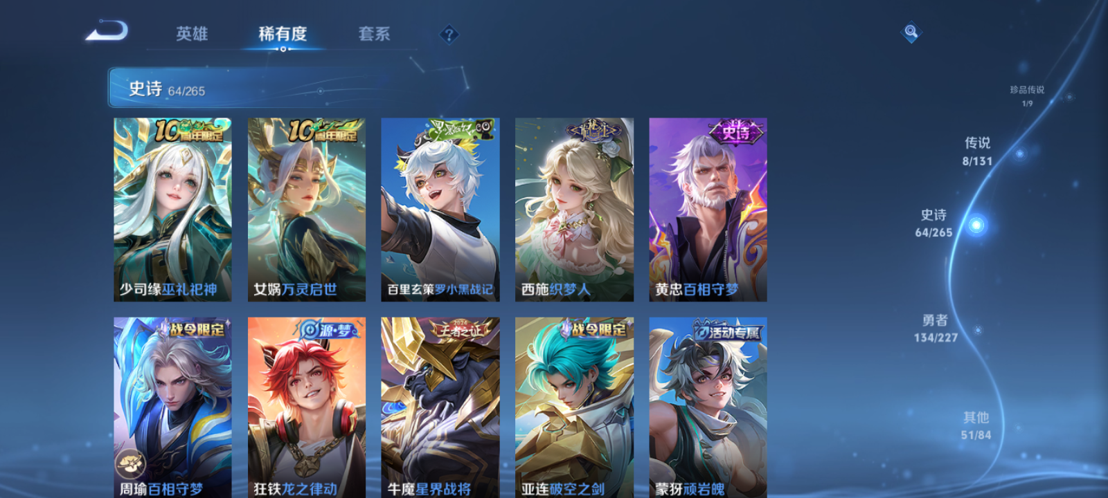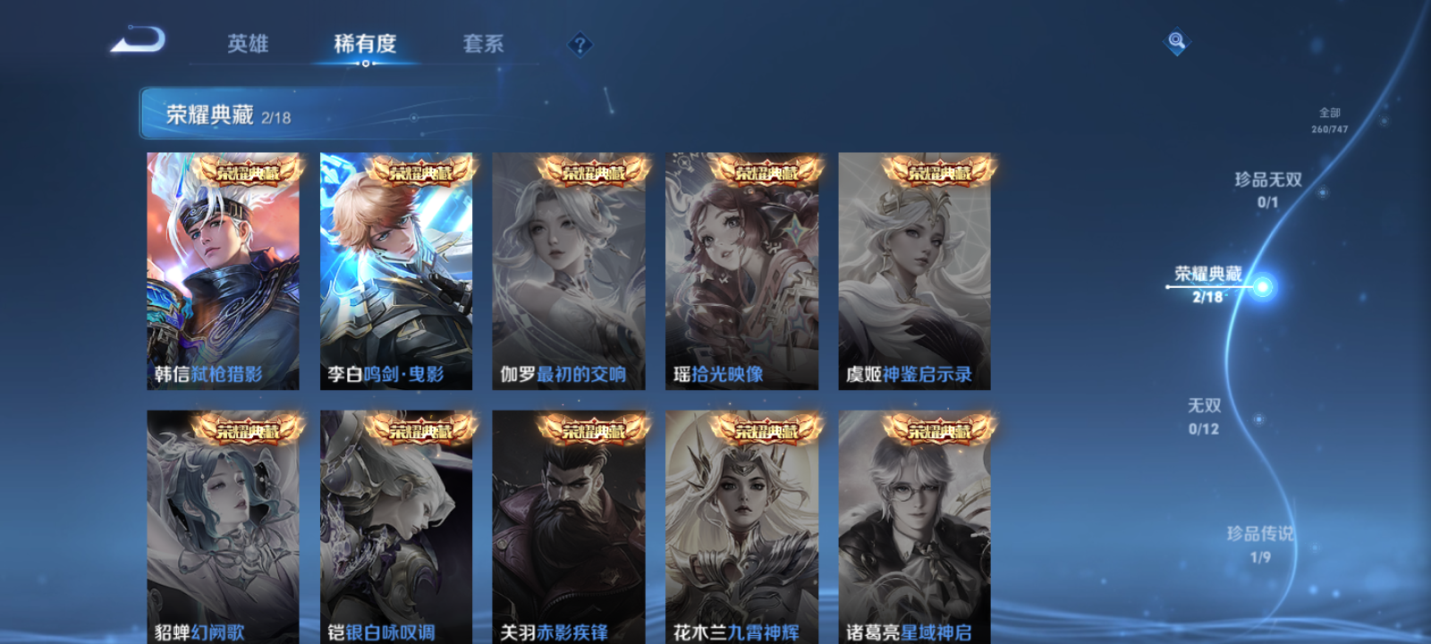 【王者荣耀】【lywz22395】珍品无双0 典藏2 无双0 珍品传说1 传说8 史诗64 英雄126 皮肤260 贵族7级 荣耀典藏:鸣剑·曳影|弑呛猎影__珍品传说:器灵·落星盏__传说皮肤:鸣野蒿|胖达荣荣|地狱之眼|地狱火|齐天大圣|逐花归海|幻光神呛|神树通天__稀有限定:至尊宝|大圣娶亲|飞衡|蔷薇恋人|神威|孙行者|傲雪梅呛|李小龙|梁祝|狮舞东方|大漠名商|高山流水|古海寻踪|海滩派对|海盐诗旅|皇家上将|混沌棋|剑破天穹|金庭之子|黎明之约|魔术师|千军破阵|擒涛扼浪|青焰无极|穷奇|驱傩正仪|沙漠行僧|朔风刀|探海日志|饕餮|醍醐杖|天穹祈灯|万华元夜|妄想食味|五谷丰年|演武夺筹|疑决卦|阴阳师|银河之约|优雅恋人|御旌|御銮|御狮|暗隐猎兽者|白龙吟|缤纷独角兽|冰冠公主|冰雪圆舞曲|苍穹之光|乘风破浪|大乔-猫狗日记|地狱岩魂|电玩·爆裂旋风|功夫厨神|鬼剑武藏|节奏热浪|金属风暴|魅力维加斯|女仆咖啡|偶像歌手|圣诞狂欢|圣诞恋歌|水果甜心|水晶猎龙者|天才门将|赵云-未来纪元|星夜王子|摇滚巨星|鹰眼统帅|幽灵船长|逐浪之夏|紫霞仙子|噬灭天穹|敬我三分|破空之剑|顽岩魄|天穹之誓|曙光守护者|心灵战警|千年之狐|舞动绿茵|特工魅影|心灵骇客|星界战将|谧流熔炉|御霄|烛龙|重明|云中旅人|钟馗-神迹守卫|孙悟空-神迹守卫|龙之律动|布丁狗之约|虚灵犬护|逆浪荇歌|孙策-百相守梦|周瑜-百相守梦|黄忠-百相守梦|织梦人|百里玄策-罗小黑战记|荣光之誓|万灵启世|巫礼祀神|鹤鸣心笺__优质皮肤:一千零一夜|创世神祝|年年有余|孤猎|熊喵少女|午夜歌剧院|露花倒影|未来旅行|激情绿茵|碧珀绯影|秩序猎龙将|锦衣卫|超能战警|绯红之刃|踏雪寻梅|启蛰|伊势巫女|画中游|生化警戒|潮流仙人|芝加哥教父|街头旋风|绝影神呛|幸存者|赤焰之缨|福禄兄弟|隐刃|前尘|特种部队|三太子|剑舞者|范海辛|龙域领主|爱与和平|占星师|花间舞|魇语军师|极冰防御线|花见巫女|棒球奇才|蔷薇王座|加勒比小姐|阿摩司公爵|异域舞娘|精灵公主|万圣前夜|破阵·退雄兵|暗都幽影|功夫炙烤|潮玩探月行|秘密基地|次元突破|鲨炮海盗猫|野性能量|丁香结|虹云星官|守护之力|坚韧之力|幻乐之宴|功夫老勺|海滩丽影|阿尔法小队|兔女郎|死亡骑士|黄金武士|少女阿狸|天使之翼|玩偶对对碰|宫本武藏-未来纪元|东方不败|红桃皇后|忍·炎影|爱心护理|街头霸王|教廷特使|王牌新星|零食大作战|西部游侠|太极少年|牛运亨通|幻泉雾影|进击墨子号|拳王|救世之瞳|白色死神|爱与正义|程咬金-星际陆战队|白执事|大发明家|哥特玫瑰|西施-雪境奇遇|星梦巡礼|灵卦秘语|景韶洛都|浪漫序章|缤纷绘卷|掌控之力|雾都夜雨|铁骨偃魂|纽约教父|龙腾万里|霸王丸|敏锐之力|孙悟空-西部大镖客|牛魔-西部大镖客|热血海滩|龙舞盛年|汉昭烈帝|乓乓大师|五福同心|盾山-圆桌骑士|蒙犽-归虚梦演|万事如意|曜-归虚梦演|唤灵魔甲|沉稳之力|程咬金-群星魔术团|完美运算|化身博士|花好人间|熔金海岸|万象初新|苍林狼骑|蔚蓝守将|劲辣红锅|特工战影|炽热元素使|妄想特派|灵野札记|玫蓝誓约|命运加冕|小满鸭|死霸装|无双福将|锦麟游梦|踏浪烽翎|云械蓝图|落日弦歌|克喵|哪吒-罗小黑战记|张良-罗小黑战记__贵族等级:贵族7级__王者段位:至尊星耀打野号 3星传说 9按键 2典藏鸣剑·曳影,弑呛猎影 珍品器灵·落星盏 至尊宝,齐天大圣,逐花归海,傲雪梅呛,李小龙,飞衡,大圣娶亲