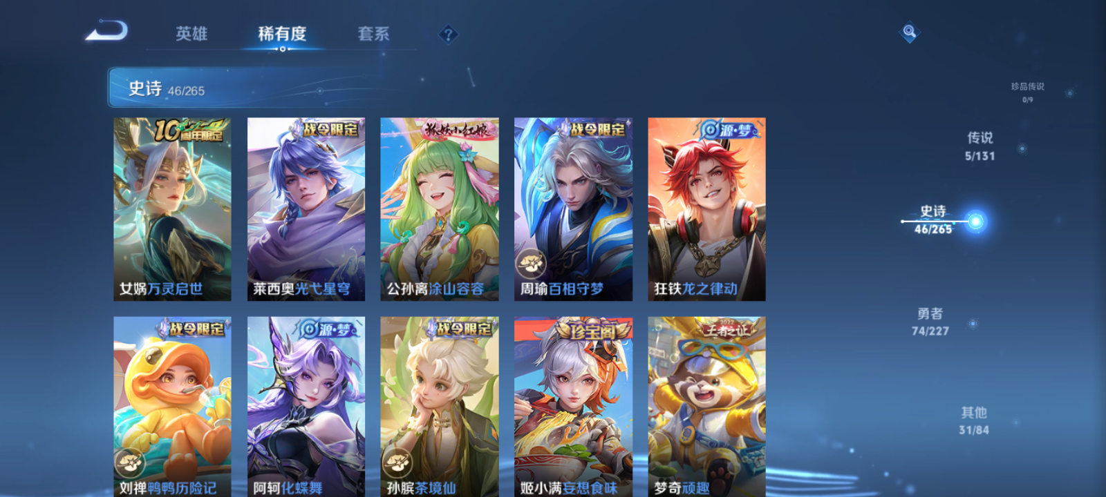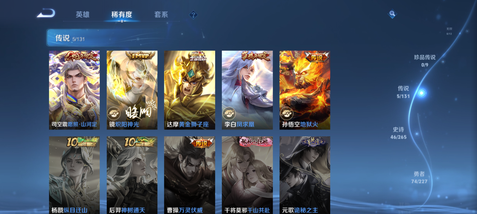 【王者荣耀】【lywz22339】珍品无双0 典藏1 无双0 珍品传说0 传说5 史诗46 英雄125 皮肤157 贵族7级 荣耀典藏:弑呛猎影__传说皮肤:炽阳神光|地狱火|黄金狮子座|凤求凰|愿照·山河定__稀有限定:至尊宝|蔷薇恋人|蜜橘之夏|孙行者|李小龙|梁祝|狮舞东方|暗影游猎|高山流水|海滩派对|海盐诗旅|胡桃异想国|皇家上将|混沌棋|金庭之子|黎明之约|魔术师|千军破阵|擒涛扼浪|驱傩正仪|沙漠行僧|朔风刀|探海日志|醍醐杖|万华元夜|妄想食味|五谷丰年|星空之诺|驯魔猎人|演武夺筹|疑决卦|阴阳师|银河之约|御旌|御銮|原初追逐者|逐梦之影|暗渊魔法|功夫厨神|鬼剑武藏|黄金分割率|金属风暴|梦奇-顽趣|圣诞狂欢|水果甜心|水晶猎龙者|孙策-猫狗日记|天才门将|赵云-未来纪元|星夜王子|鹰眼统帅|幽灵船长|心灵战警|千年之狐|无限星赏官|特工魅影|茶境仙|谧流熔炉|化蝶舞|御霄|原初探秘者|云中旅人|钟馗-神迹守卫|达摩-星际陆战队|流音漫舞|访茗客|死神来了|刘禅-鸭鸭历险记|沈梦溪-鸭鸭历险记|龙之律动|布丁狗之约|虚灵犬护|逆浪荇歌|孙策-百相守梦|周瑜-百相守梦|涂山容容|光弋星穹|往忆晖光|荣光之誓|万灵启世|鹤鸣心笺__优质皮肤:一千零一夜|埃及法老|孤猎|激情绿茵|天启骑士|绯红之刃|启蛰|战争骑士|伊势巫女|威尼斯狂欢|第七人偶|潮流仙人|街头旋风|绝影神呛|幸存者|赤焰之缨|隐刃|剑舞者|星航指挥官|爱与和平|花间舞|灼热之刃|精准探案法|圣殿之光|战争女神|霓裳曲|异域舞娘|精灵公主|潮玩探月行|次元突破|幻想奇妙夜|海滩丽影|兔女郎|死亡骑士|黄金武士|少女阿狸|红桃皇后|忍·炎影|街头霸王|教廷特使|零食大作战|危途狂花|紫罗兰之誓|拳王|时尚教父|救世之瞳|程咬金-星际陆战队|大发明家|哥特玫瑰|景韶洛都|猪八戒-西部大镖客|缤纷绘卷|掌控之力|龙腾万里|孙悟空-西部大镖客|五福同心|盾山-圆桌骑士|曜-归虚梦演|沉稳之力|赤莲之焰|花好人间|劲辣红锅|妄想特派|春野闲踪|灵野札记|玫蓝誓约|死霸装|锦麟游梦|哪吒-罗小黑战记__贵族等级:贵族7级__王者段位:最强王者打野小号 韩信典藏 愿照·山河定,黄金狮子座,炽阳神光,凤求凰,孙行者,蜜橘之夏,逐梦之影,至尊宝,