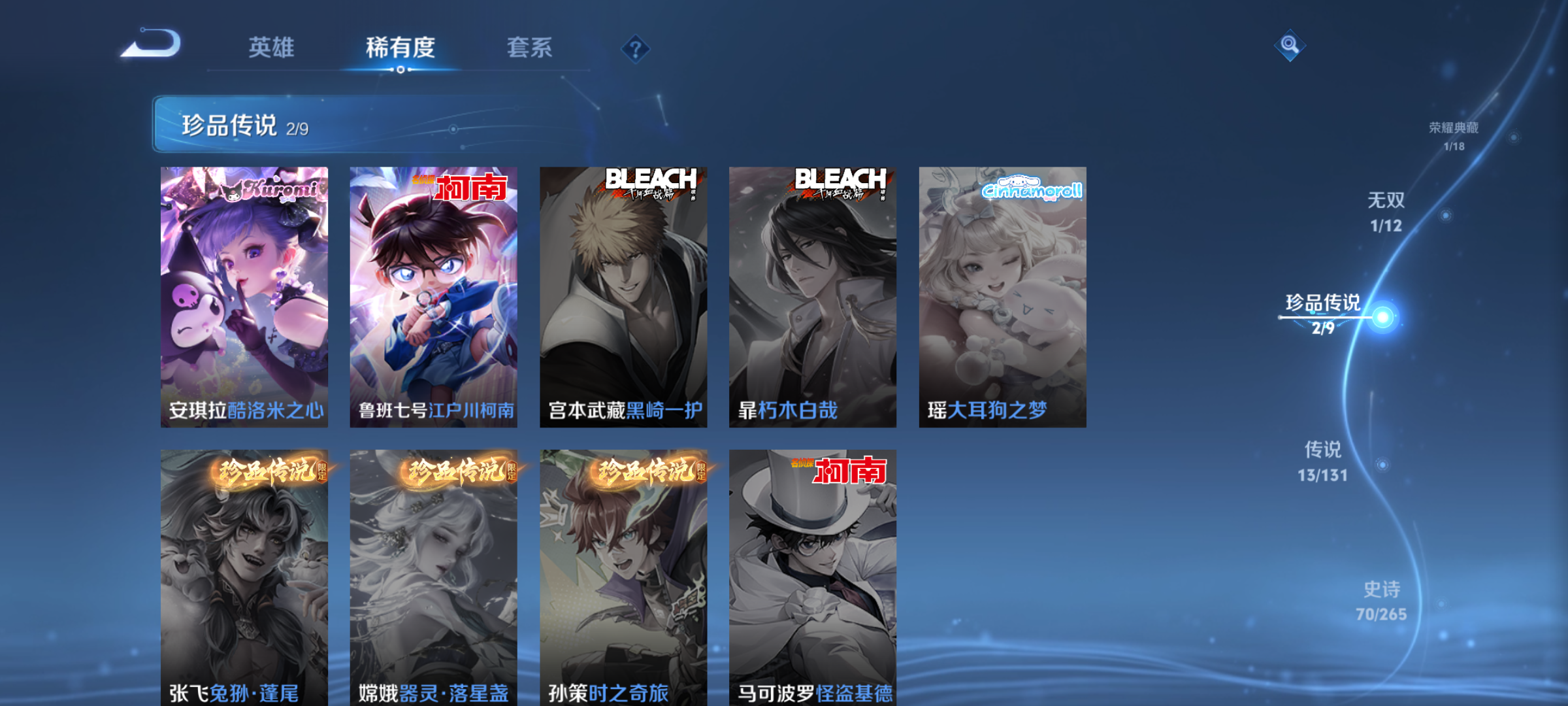 txwz23006 v7 223皮 1典藏 弑呛猎影 1无双 器灵·螭龙剑 2珍品传说 酷洛米之心,江户川柯南 13传说 地狱之眼,冠军飞将,愿照·众生和,久胜战神,愿照·九州拓,愿照·岁时盈,鸣野蒿,炽阳神光,黄金白羊座,冥王哈迪斯,黄金狮子座,山海·炽霜斩,一念神魔 70史诗 冰霜恋舞曲,巫礼祀神,万灵启世,水晶猎龙者,织梦人,涂山容容,黎明之约,守夜人,百相守梦,赞萌露比,暗隐猎兽者,幽灵船长,摇滚巨星,石田雨龙,龙之律动,女仆咖啡,蔷薇恋人,地狱岩魂,化蝶舞,神威,狼魂孤将,星界游侠,暗影游猎,乘风破浪,糖绘人间,器灵·浮梦炉,赏金猎手,茶境仙,百相守梦,缤纷独角兽,星界战将,绅士熊喵,末日机甲,金属风暴,李小龙,星界特工,白蛇,破空之剑,魅语,至尊宝,原初追逐者,涂山红红,水果甜心,神器·万象笔,顽岩魄,鬼剑武藏,冰雪圆舞曲,千年之狐,燃音魔法,乱世虎臣,圣诞恋歌,冰冠公主,江河有灵,魔术师,匿光侦查者,真我赫兹,天秀·启明,引擎之心,德古拉伯爵,猫狗日记,皇家上将,偶像歌手,无心,孙行者,五谷丰年,鹰眼统帅,星夜王子,修罗,电玩小子,魅力维加斯