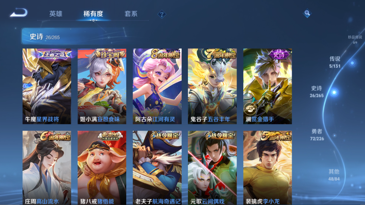 【v6 5传说1星元 未来机甲】安卓q-151皮肤-123英雄 【传说皮肤】 鸣野蒿 续相思 炽阳神光 时之恋人 末日机甲 【史诗皮肤】 星界战将 谧流熔炉 劲辣红锅 威尼斯狂欢 聚星闪耀 江河有灵 完美运算 死神来了 魅力维加斯 猫狗日记 魔术师 鹰眼统帅 箭羽风息 鬼剑武藏 水晶猎龙者 曙光守护者 航海奇遇记 圣诞狂欢 金属风暴 李小龙 水果甜心 偶像歌手 云间偶戏 乱世虎臣 皇家上将 猪