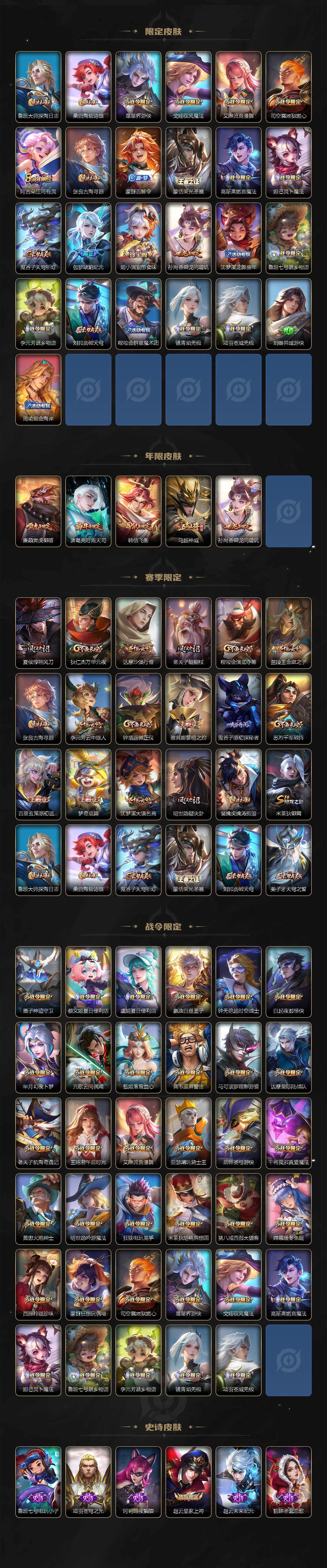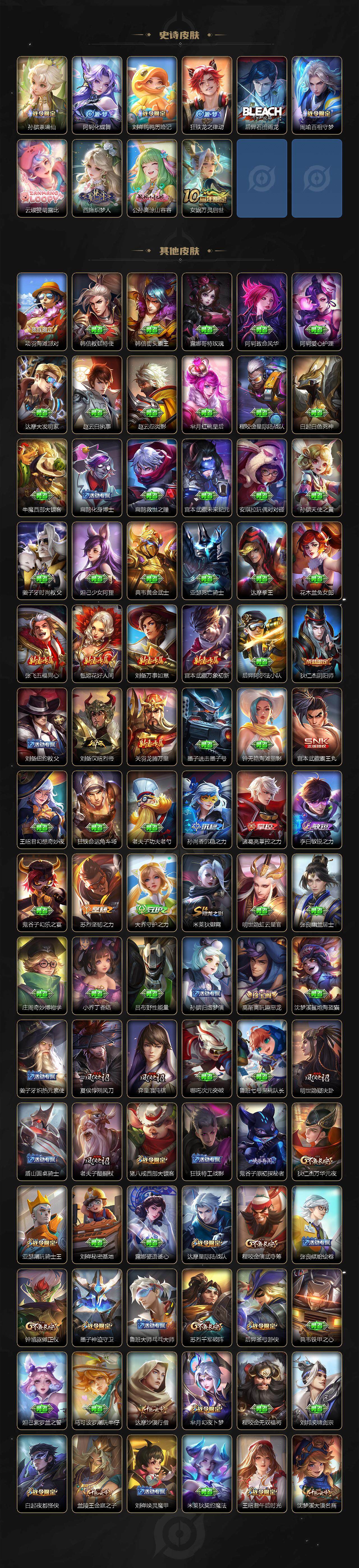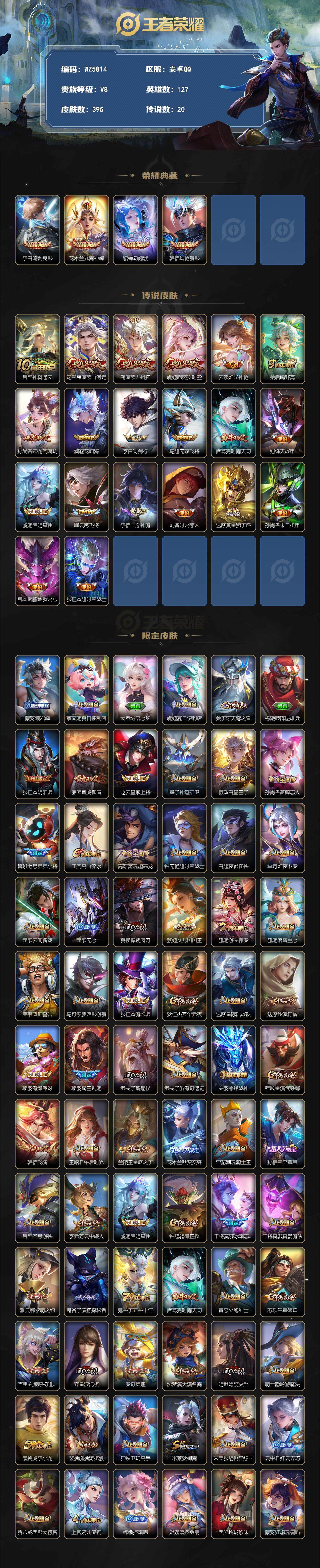 安卓q-v8-至尊星耀ii段位-127英雄-395皮肤-4典藏-0珍品无双-0无双-0珍品传说-20传说-117史诗 【英雄全皮】:达摩全皮,孙权全皮,鬼谷子全皮,蒙恬全皮,司空震全皮,空空儿全皮,影全皮 【荣耀典藏】:李白鸣剑曳影,花木兰九霄神辉,貂蝉幻阙歌,韩信弑呛猎影 【传说皮肤】:后羿神树通天,司空震愿照山河定,澜愿照九州拓,虞姬愿照岁时盈,云缨幻光神呛,桑启鸣野蒿,孙尚香乘龙问璇玑,澜逐花归海,李白诗剑行,马超无双飞将,诸葛亮时雨天司,铠绛天战甲,虞姬启明星使,曜云鹰飞将,李信一念神魔,刘备时之恋人,达摩黄金狮子座,孙尚香末日机甲,宫本武藏地狱之眼,狄仁杰超时空战士 【限定皮肤】:蒙犽顽岩魄,蔡文姬夏日便利店,大乔绒语心约,虞姬夏日便利店,姜子牙天穹之誓,杨戬破阵退雄兵,狄仁杰阴阳师,廉颇寅虎御盾,赵云皇家上将,墨子神迹守卫,嬴政白昼王子,孙尚香蔷薇恋人,鲁班七号乒乒小将,庄周高山流水,高渐离玩趣恶龙,钟无艳超时空战士,白起夜都怪侠,芈月幻夜卜梦,元歌云间偶戏,元歌无心,夏侯惇朔风刀,甄姬女儿国国王,甄姬游园惊梦,甄姬落雪兰心,典韦蓝屏警告,马可波罗暗影游猎,狄仁杰魔术师,狄仁杰万华元夜,达摩星际陆战队,达摩沙漠行僧,项羽海滩派对,项羽霸王别姬,老夫子醍醐杖,老夫子航海奇遇记,关羽冰锋战神,程咬金演武夺筹,韩信飞衡,王昭君午后时光,兰陵王金庭之子,花木兰默契交锋,亚瑟潮玩骑士王,孙悟空至尊宝,后羿圣弓游侠,李元芳云中旅人,虞姬启明星使,钟馗驱傩正仪,干将莫邪冰霜恋舞曲,干将莫邪真爱魔法,雅典娜黎明之约,鬼谷子原初探秘者,鬼谷子五谷丰年,诸葛亮时雨天司,黄忠火炮绅士,苏烈千军破阵,百里玄策原初追逐者,弈星混沌棋,梦奇顽趣,沈梦溪大漠名商,明世隐疑决卦,明世隐吟游魔法,裴擒虎李小龙,裴擒虎擒涛扼浪,狂铁电玩高手,米莱狄御霄,米莱狄胡桃异想国,云中君纤云弄巧,猪八戒西部大镖客,上官婉儿梁祝,嫦娥拒霜思,嫦娥暖冬兔眠,西施玲珑珍味,蒙犽狂想玩偶喵,鲁班大师探海日志,桑启海盐诗旅,暃星界游侠,戈娅驭风魔法,艾琳流音漫舞,司空震地狱燃心,阿古朵江河有灵,张良古海寻踪,蒙犽百解令,蒙恬荣光圣徽,高渐离燃音魔法,妲己灵卜魔法,鬼谷子天穹祈灯,伽罗琥珀纪元,姬小满妄想食味,孙尚香乘龙问璇玑,沈梦溪龙舞盛年,鲁班七号蔬乡物语,李元芳蔬乡物语,刘邦剑破天穹,程咬金群星魔术团,镜青焰无极,项羽苍威无极,刘备异域游侠,周瑜熔金海岸 【年限皮肤】:廉颇寅虎御盾,诸葛亮时雨天司,韩信飞衡,马超神威,孙尚香乘龙问璇玑 【赛季限定】:夏侯惇朔风刀,狄仁杰万华元夜,达摩沙漠行僧,老夫子醍醐杖,程咬金演武夺筹,兰陵王金庭之子,张良古海寻踪,李元芳云中旅人,钟馗驱傩正仪,雅典娜黎明之约,鬼谷子原初探秘者,苏烈千军破阵,百里玄策原初追逐者,弈星混沌棋,梦奇顽趣,沈梦溪大漠名商,明世隐疑决卦,裴擒虎擒涛扼浪,米莱狄御霄,鲁班大师探海日志,桑启海盐诗旅,鬼谷子天穹祈灯,蒙恬荣光圣徽,刘邦剑破天穹,姜子牙天穹之誓 【战令限定】:墨子神迹守卫,蔡文姬夏日便利店,虞姬夏日便利店,嬴政白昼王子,钟无艳超时空战士,白起夜都怪侠,芈月幻夜卜梦,元歌云间偶戏,甄姬落雪兰心,典韦蓝屏警告,马可波罗暗影游猎,达摩星际陆战队,老夫子航海奇遇记,王昭君午后时光,艾琳流音漫舞,亚瑟潮玩骑士王,后羿圣弓游侠,干将莫邪真爱魔法,黄忠火炮绅士,明世隐吟游魔法,狂铁电玩高手,米莱狄胡桃异想国,猪八戒西部大镖客,嫦娥暖冬兔眠,西施玲珑珍味,蒙犽狂想玩偶喵,司空震地狱燃心,暃星界游侠,戈娅驭风魔法,高渐离燃音魔法,妲己灵卜魔法,鲁班七号蔬乡物语,李元芳蔬乡物语,镜青焰无极,项羽苍威无极 【史诗皮肤】:鲁班七号电玩小子,项羽苍穹之光,阿轲暗夜猫娘,赵云皇家上将,赵云未来纪元,貂蝉圣诞恋歌,甄姬冰雪圆舞曲,王昭君偶像歌手,狄仁杰魔术师,廉颇地狱岩魂,宫本武藏鬼剑武藏,孙尚香蔷薇恋人,孙尚香水果甜心,妲己魅力维加斯,妲己女仆咖啡,墨子龙骑士,墨子金属风暴,吕布圣诞狂欢,曹操幽灵船长,李白千年之狐,吕布末日机甲,张飞乱世虎臣,项羽霸王别姬,关羽冰锋战神,孙悟空至尊宝,花木兰水晶猎龙者,刘邦德古拉伯爵,夏侯惇乘风破浪,小乔缤纷独角兽,兰陵王暗隐猎兽者,诸葛亮黄金分割率,甄姬游园惊梦,亚瑟心灵战警,雅典娜冰冠公主,安琪拉心灵骇客,百里守约特工魅影,铠曙光守护者,蔡文姬舞动绿茵,刘禅天才门将,李元芳逐浪之夏,程咬金功夫厨神,白起星夜王子,阿轲节奏热浪,嬴政白昼王子,孙策猫狗日记,大乔猫狗日记,干将莫邪冰霜恋舞曲,典韦蓝屏警告,伽罗箭羽风息,狄仁杰鹰眼统帅,公孙离无限星赏官,上官婉儿梁祝,娜可露露晚萤,韩信飞衡,小乔青蛇,不知火舞魅语,橘右京修罗,马超神威,马可波罗暗影游猎,蒙犽狂想玩偶喵,百里玄策原初追逐者,裴擒虎李小龙,云中君纤云弄巧,元歌云间偶戏,花木兰默契交锋,米莱狄胡桃异想国,百里玄策热力回旋,老夫子航海奇遇记,鲁班七号乒乒小将,杨戬天秀启明,干将莫邪真爱魔法,钟馗乐园奇幻夜,庄周高山流水,司马懿暗渊魔法,嫦娥拒霜思,黄忠火炮绅士,雅典娜黎明之约,甄姬女儿国国王,廉颇寅虎御盾,夏洛特永昼,明世隐吟游魔法,狂铁电玩高手,钟无艳超时空战士,鬼谷子五谷丰年,元歌无心,梦奇顽趣,暃星界游侠,刘禅电玩爆裂旋风,戈娅驭风魔法,司空震地