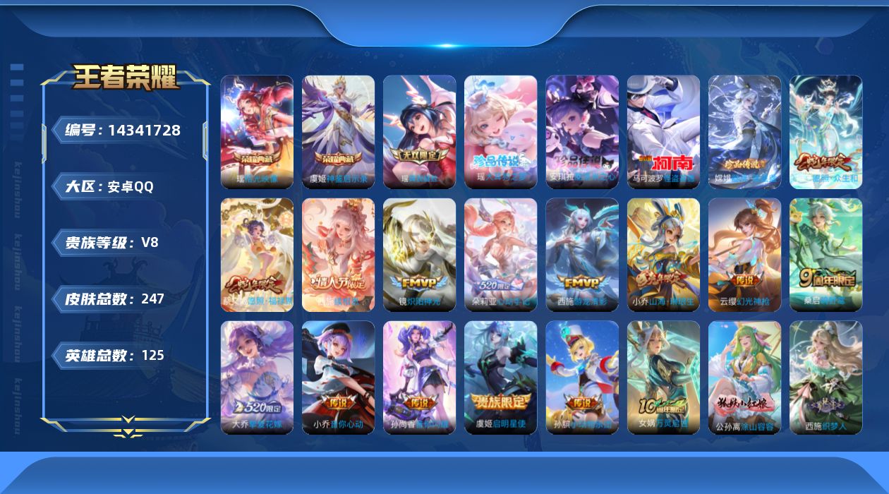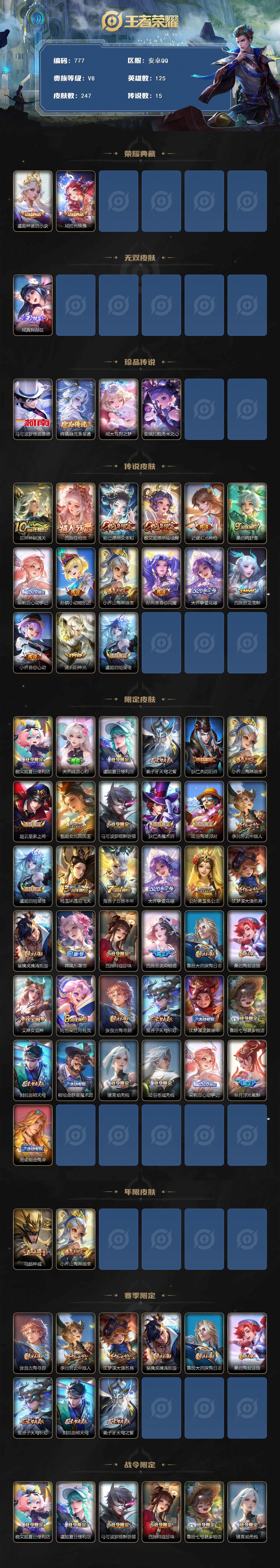[14341728]可二次 小女号 贵族8-贵族积分64475-47皮2典藏15传说1无双4珍品传说-5个英雄全皮 安卓手q421区247皮2典藏15传说1无双4珍品传说v8 营地id527516625荣耀王者【珍品传说皮肤】:器灵·落星盏怪盗基德酷洛米之心大耳狗之梦【无双皮肤】:瑶真我赫兹【荣耀典藏】:神鉴启示录拾光映像【优质限定皮肤】:神威山海·琳琅生【传说皮肤】:神树通天续相思