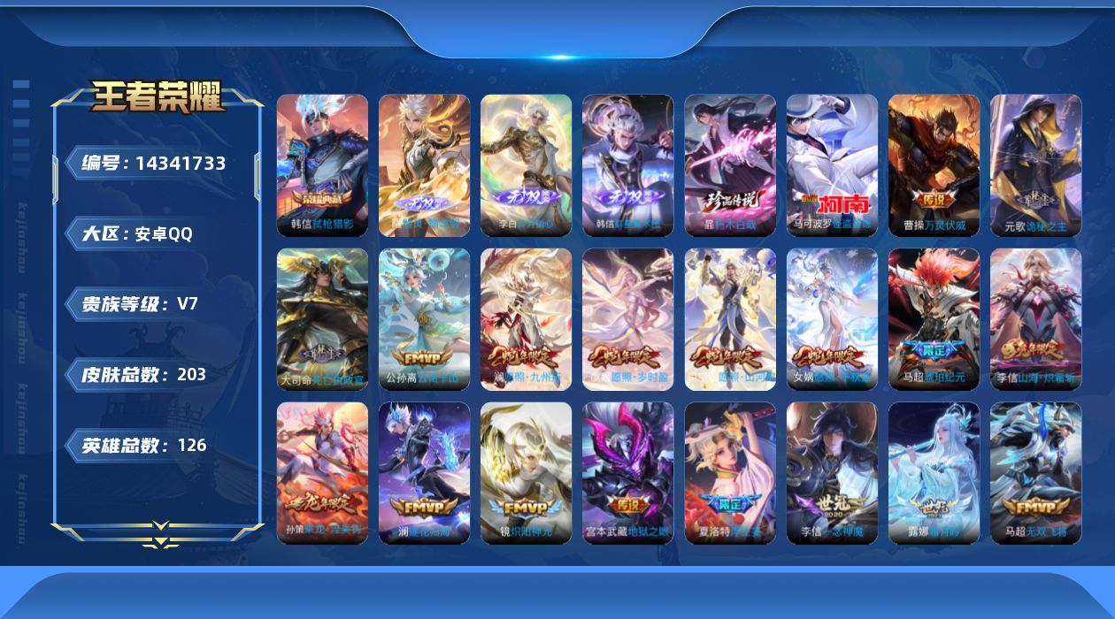 [14341733]贵族7-贵族积分49903-203皮1典藏26传说3无双2珍品传说-5个英雄全皮 安卓手q349区203皮1典藏26传说3无双2珍品传说v7 营地id1702310167非凡王者【珍品传说皮肤】:朽木白哉怪盗基德【无双皮肤】:碎月剑心群星魔术团器灵·螭龙剑【荣耀典藏】:弑呛猎影【优质限定皮肤】:无双飞将山海·炽霜斩【传说皮肤】:神树通天万灵伏威千山共赴诡秘
