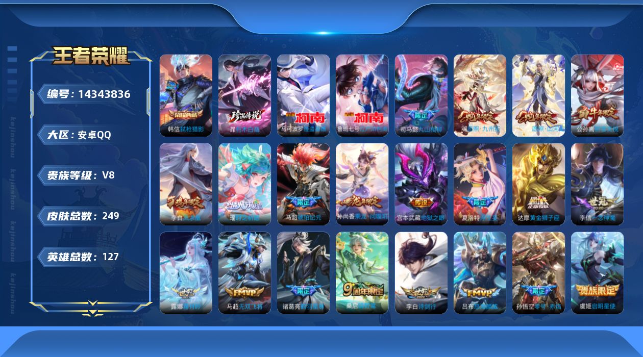 [14343836]v8 1典藏 3珍品传说 23传说 127英雄 249皮肤 可修改实名 【英雄全皮】:敖隐全皮鬼谷子全皮戈娅全皮金蝉全皮夏洛特全皮司马懿全皮影全皮 【稀有英雄】:敖隐小龙人大司命嬴政始皇帝韩信韩跳跳夏洛特夏师傅艾琳橘右京橘子娜可露露鸟人不知火舞赵云金蝉唐僧戈娅 【荣耀水晶】:弑呛猎影韩信典藏 【珍品传说】:江户川柯南怪盗基德朽木白哉 【传说皮】:琥珀纪元马超乘龙·问璇玑孙尚香年限神树通天九山相柳黄金狮子座零号·赤焰地狱之眼一念神魔无双飞将绛天战甲鸡嘴战神浮生妄电玩·雷克斯鹤羽星尊霜月吟 【珍宝阁皮】:蔷薇恋人女武神 【赛季/战令皮】:噬灭天穹s37古海寻踪s33星界游侠海盐诗旅s30擒涛扼浪s31潮玩骑兵奇幻香踪探海日志s32驭风魔法玲珑珍味剑破天穹s35天穹祈灯s34天穹之誓s36暖冬·兔眠疑决卦s19醍醐杖s20原初探秘者s21万华元夜s22演武夺筹s23驱傩正仪s24银河之约星际陆战队-达摩胡桃异想国沙漠行僧s26金庭之子s27电玩高手电玩铁子午后时光大漠名商s28云中旅人s29超时空战士-钟无艳落雪兰心 【史诗皮】:器灵·浮梦炉百相守梦-黄忠星界战将星界特工涂山容容万灵启世电玩小子小书包黄金分割率永昼蒙恬荣光圣徽冰冠公主晚萤魅语电玩·兔顽号电玩·爆裂旋风匿光破解者银翎春语暗夜猫娘末日机甲-吕布乱世虎臣女仆咖啡摇滚巨星水果甜心绅士熊喵天才门将星夜王子功夫厨神德古拉伯爵暗隐猎兽者鬼剑武藏暗渊魔法舞动绿茵地狱岩魂缤纷独角兽乘风破浪逐浪之夏水晶猎龙者金属风暴圣诞恋歌鹰眼统帅暗夜贵公子魅力维加斯奇遇舞章无心未来纪元-赵云玫瑰异探 【限定皮】:愿照·九州拓澜年限愿照·山河定司空震年限鸣野蒿至尊宝凤求凰白切鸡凤凰于飞白鹤梁神女飞衡韩信年限山海·碧波行瑶年限诗剑行怒海麟威五谷丰年祈雪灵祝雪兔子朱雀志守约年限猪悟能时之祈愿-瑶瑶传限唐三藏 【普通皮】:苍林狼骑魅影绮裳谧流熔炉