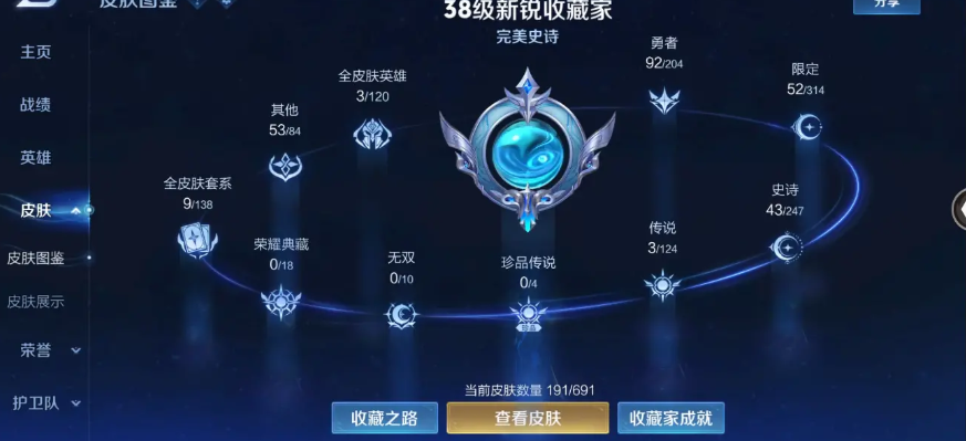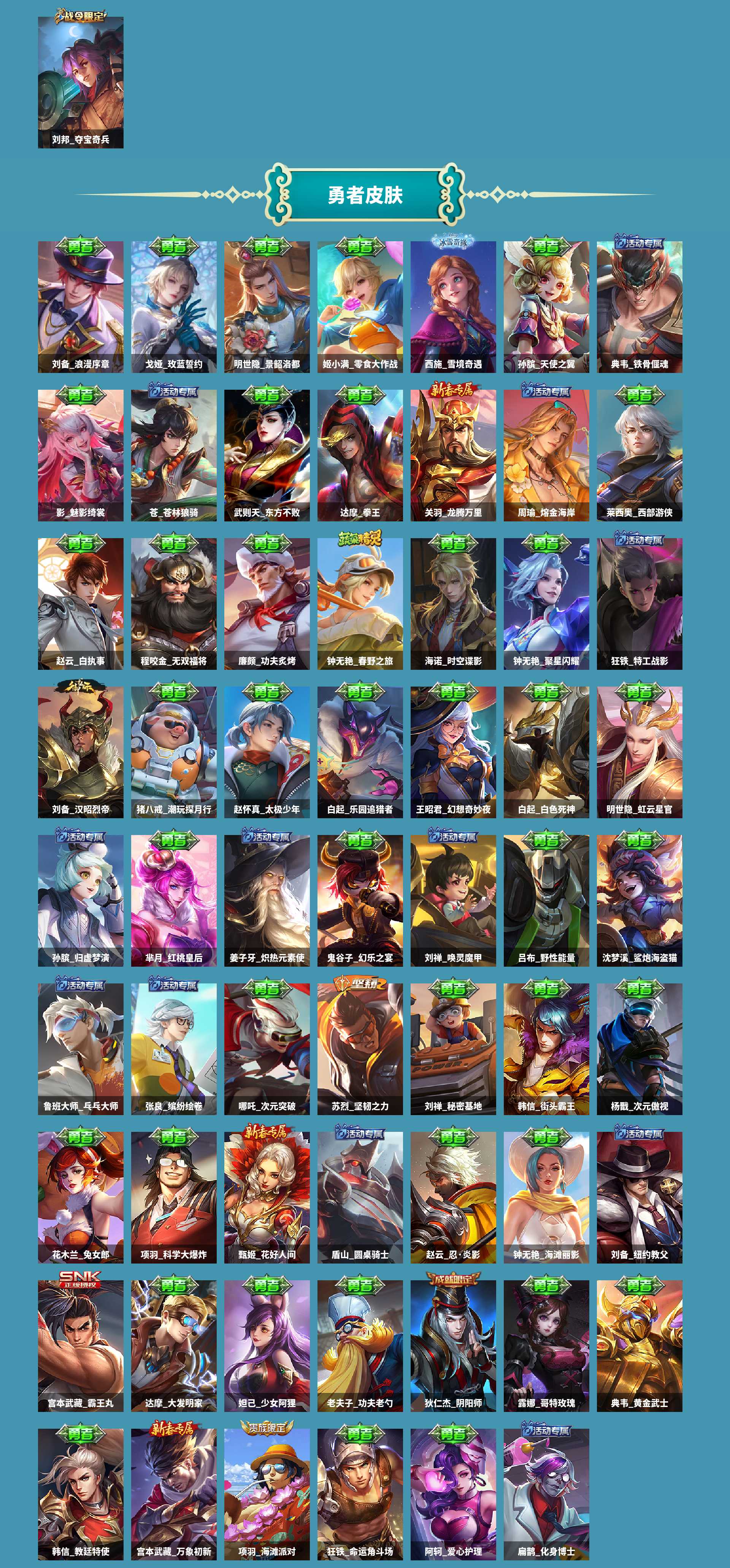 al602938 【亲情价出3传说191皮肤】 皮肤数191 无双皮肤数0 传说皮肤数3 珍品传说皮数0 星传说皮肤数1 史诗皮肤数43 英雄数120 营地id2127250696 贵族等级【文本】贵族7级 贵族等级【文本】贵族7级 【贵族7级】 星元皮肤1 内测皮肤2 年限皮肤1 限定皮肤51 赛季限定28 史诗皮肤43 战令限定8 勇者皮肤91 其他皮肤53 星元皮肤:孙悟空幽冥火; 内测皮肤:孙尚香蔷薇恋人,干将莫邪胡桃夹子; 年限皮肤:马可波罗山海玄木吟; 限定皮肤:钟馗虚灵犬护,太乙真人谧流熔炉,牛魔星界战将,桑启鸣野蒿,庄周高山流水,东皇太一噬灭天穹,亚连破空之剑,孙悟空神迹守卫,梦奇顽趣,姜子牙天穹之誓,孙尚香蔷薇恋人,刘邦剑破天穹,蒙恬荣光圣徽,鬼谷子天穹祈灯,张良古海寻踪,鲁班大师探海日志,裴擒虎擒涛扼浪,暃星界游侠,嫦娥暖冬兔眠,马可波罗山海玄木吟,桑启海盐诗旅,元歌无心,鬼谷子五谷丰年,干将莫邪胡桃夹子,李元芳云中旅人,沈梦溪大漠名商,兰陵王金庭之子,达摩沙漠行僧,苏烈千军破阵,伽罗天狼溯光者,钟馗驱傩正仪,程咬金演武夺筹,元歌云间偶戏,花木兰默契交锋,亚瑟潮玩骑士王,狄仁杰万华元夜,鬼谷子原初探秘者,老夫子醍醐杖,阿轲迷踪丽影,刘邦夺宝奇兵,明世隐疑决卦,狄仁杰鹰眼统帅,弈星混沌棋,狄仁杰阴阳师,夏侯惇朔风刀,狄仁杰魔术师,盾山御銮,赵云皇家上将,裴擒虎天狼狩猎者,项羽海滩派对,米莱狄御霄; 赛季限定:钟馗虚灵犬护,太乙真人谧流熔炉,牛魔星界战将,东皇太一噬灭天穹,梦奇顽趣,姜子牙天穹之誓,刘邦剑破天穹,蒙恬荣光圣徽,鬼谷子天穹祈灯,张良古海寻踪,鲁班大师探海日志,裴擒虎擒涛扼浪,桑启海盐诗旅,李元芳云中旅人,沈梦溪大漠名商,兰陵王金庭之子,达摩沙漠行僧,苏烈千军破阵,钟馗驱傩正仪,程咬金演武夺筹,狄仁杰万华元夜,鬼谷子原初探秘者,老夫子醍醐杖,明世隐疑决卦,弈星混沌棋,夏侯惇朔风刀,盾山御銮,米莱狄御霄; 史诗皮肤:白起星夜王子,刘邦德古拉伯爵,牛魔星界战将,伽罗箭羽风息,庄周高山流水,吕布末日机甲,亚瑟心灵战警,小乔青蛇,亚连破空之剑,梦奇顽趣,嬴政暗夜贵公子,孙尚香蔷薇恋人,貂蝉圣诞恋歌,蒙恬荣光圣徽,嬴政摇滚巨星,程咬金功夫厨神,甄姬冰雪圆舞曲,墨子金属风暴,刘禅电玩爆裂旋风,暃星界游侠,马可波罗山海玄木吟,孙策猫狗日记,元歌无心,鬼谷子五谷丰年,廉颇地狱岩魂,宫本武藏鬼剑武藏,伽罗天狼溯光者,元歌云间偶戏,孙尚香水果甜心,花木兰默契交锋,阿轲迷踪丽影,百里守约特工魅影,阿轲节奏热浪,兰陵王暗隐猎兽者,铠曙光守护者,曹操幽灵船长,狄仁杰鹰眼统帅,狄仁杰魔术师,花木兰水晶猎龙者,韩信白龙吟,露娜紫霞仙子,赵云皇家上将,裴擒虎天狼狩猎者; 战令限定:亚连破空之剑,孙悟空神迹守卫,暃星界游侠,嫦娥暖冬兔眠,元歌云间偶戏,亚瑟潮玩骑士王,阿轲迷踪丽影,刘邦夺宝奇兵; 勇者皮肤:刘备浪漫序章,戈娅玫蓝誓约,明世隐景韶洛都,姬小满零食大作战,西施雪境奇遇,孙膑天使之翼,典韦铁骨偃魂,影魅影绮裳,太乙真人谧流熔炉,苍苍林狼骑,武则天东方不败,达摩拳王,东皇太一噬灭天穹,孙悟空神迹守卫,关羽龙腾万里,姜子牙天穹之誓,周瑜熔金海岸,莱西奥西部游侠,赵云白执事,刘邦剑破天穹,程咬金无双福将,廉颇功夫炙烤,钟无艳春野之旅,海诺时空谍影,鬼谷子天穹祈灯,钟无艳聚星闪耀,张良古海寻踪,狂铁特工战影,刘备汉昭烈帝,鲁班大师探海日志,猪八戒潮玩探月行,裴擒虎擒涛扼浪,赵怀真太极少年,白起乐园追猎者,王昭君幻想奇妙夜,白起白色死神,嫦娥暖冬兔眠,桑启