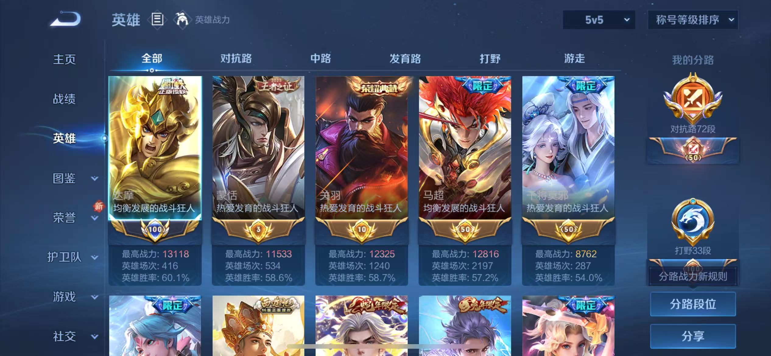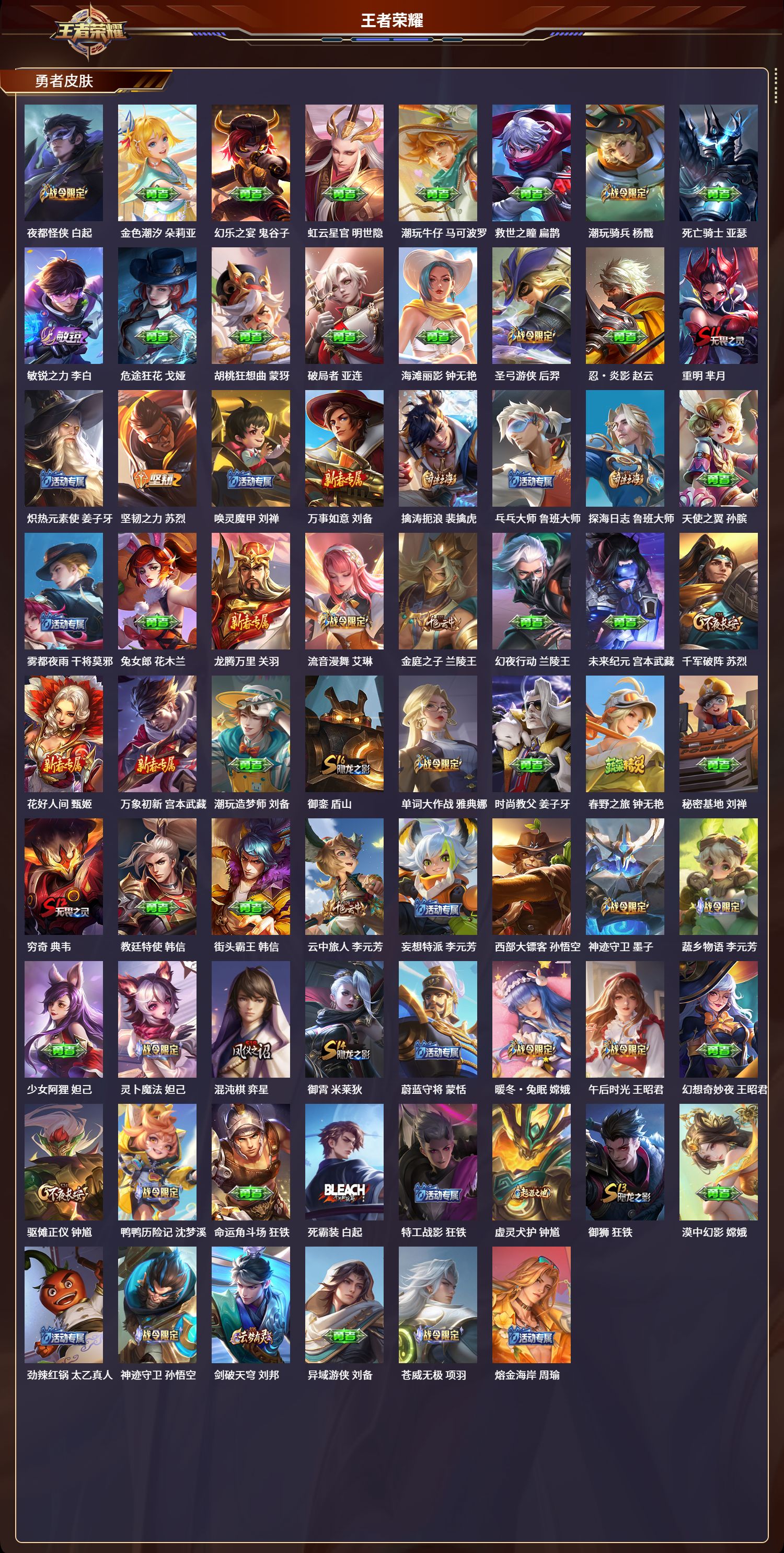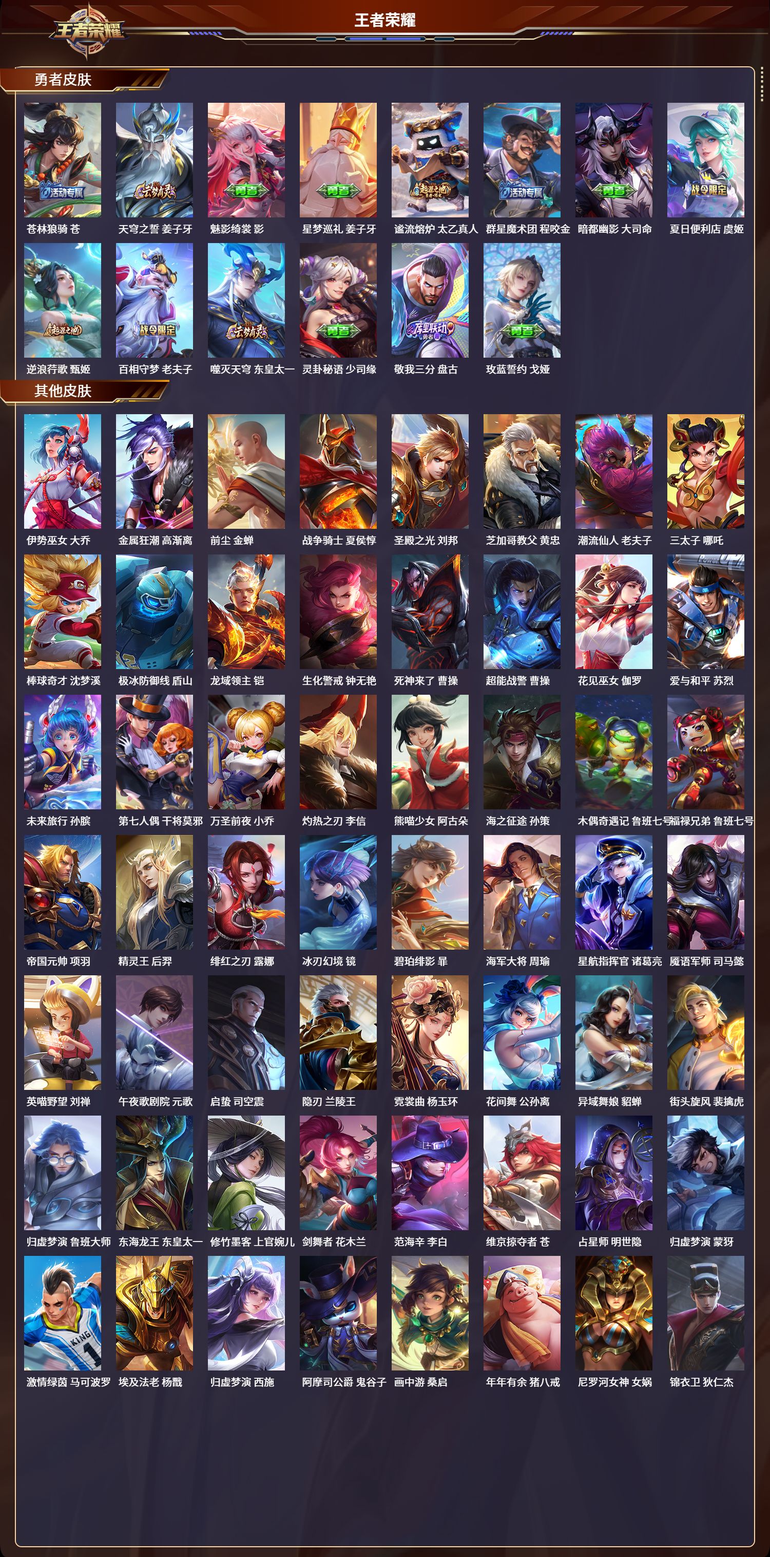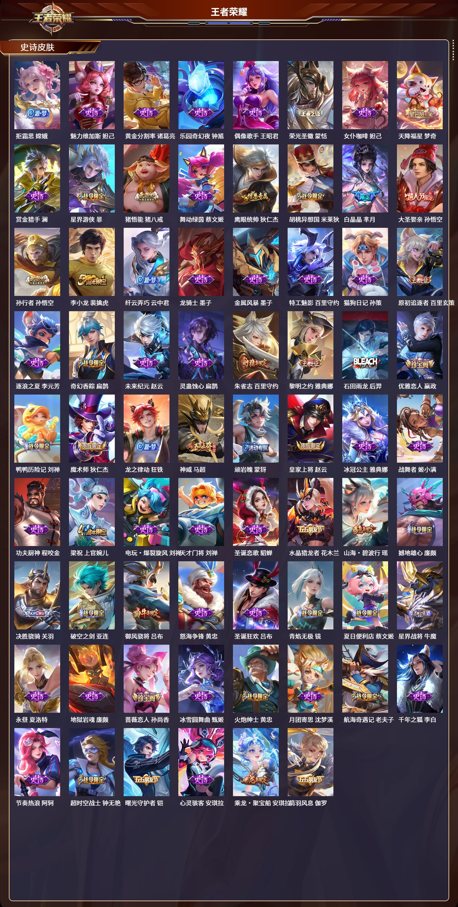 苹果微信/至尊星耀/373皮肤/125英雄/2典藏/0珍品无双/0无双/0珍品传说/35传说/118史诗/9稀有英雄【2 典藏皮肤】九霄神辉 花木兰赤影疾锋 关羽【35 传说皮肤】胖达荣荣 梦奇武圣 关羽启明星使 虞姬无双飞将 马超云鹰飞将 曜齐天大圣 孙悟空永曜之星 杨戬燃星之曲 花木兰浮生妄 夏洛特落雪白狼 亚连地狱之眼 宫本武藏黄金射手座 后羿曦玄引 吕布无限倾
