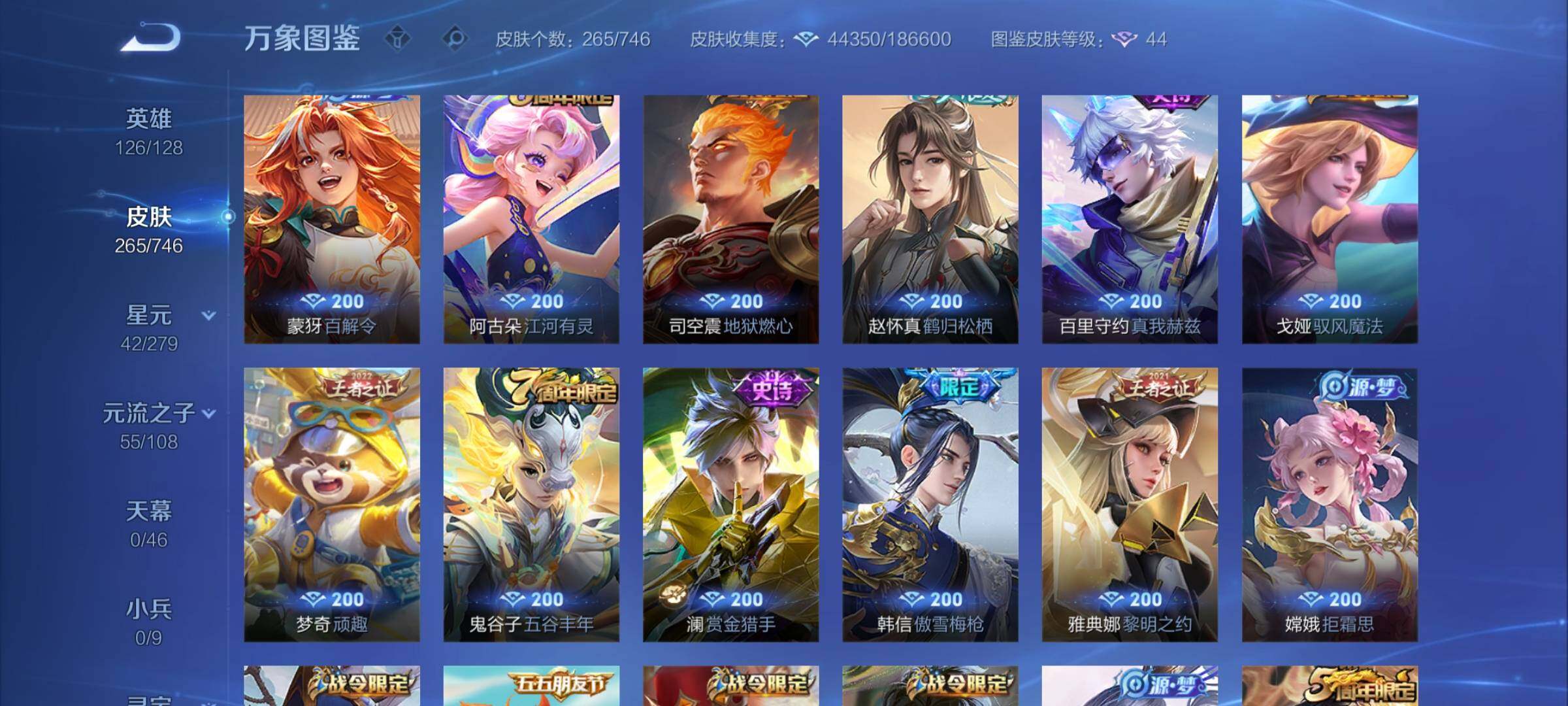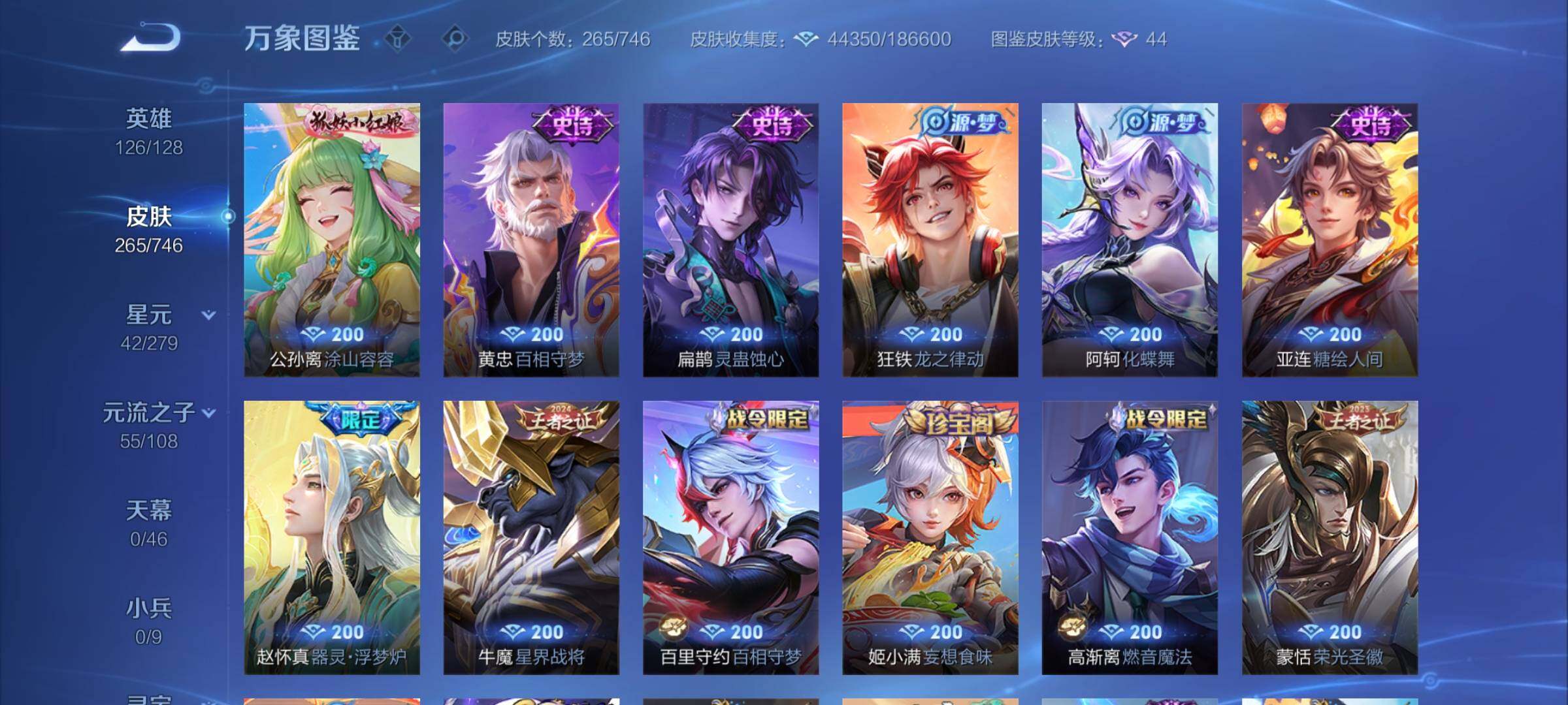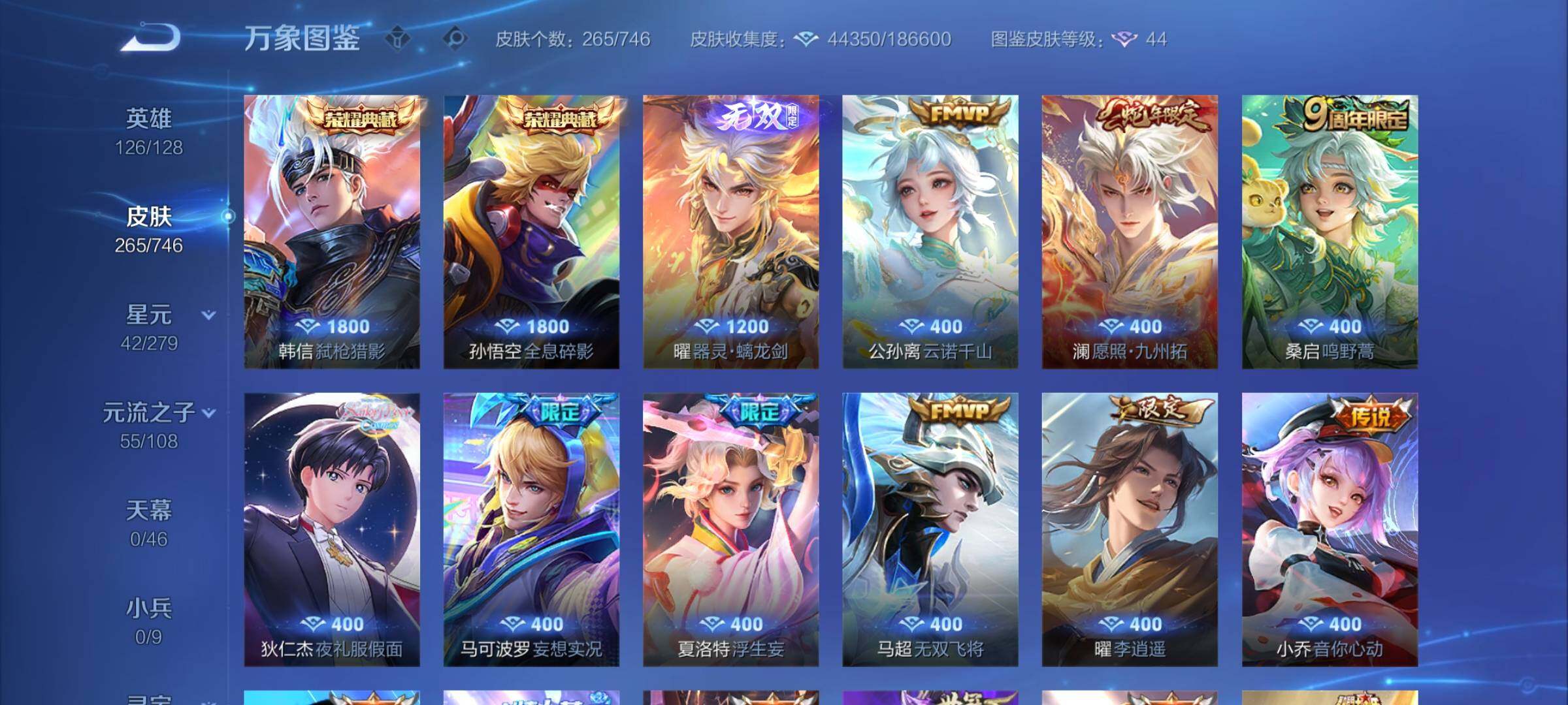 【精品打野号·42段打野·金标万战曜·金标橘子·弑呛猎影·全息碎影·曜器灵螭龙剑·云诺千山·澜愿照九州拓·夜礼服假面·妄想实况·曜李·无双飞将·凤求凰·一念神魔·永曜之星·可二次】w6079-安卓wx-126英雄-265皮肤-14王者印记-160铭文-贵族积分4w【贵族7】【2典藏·1无双·2星传说·20传说·10按键】【因赛季更新游戏段付以上号为准!】 【英雄全皮】:达摩全皮,戈娅全