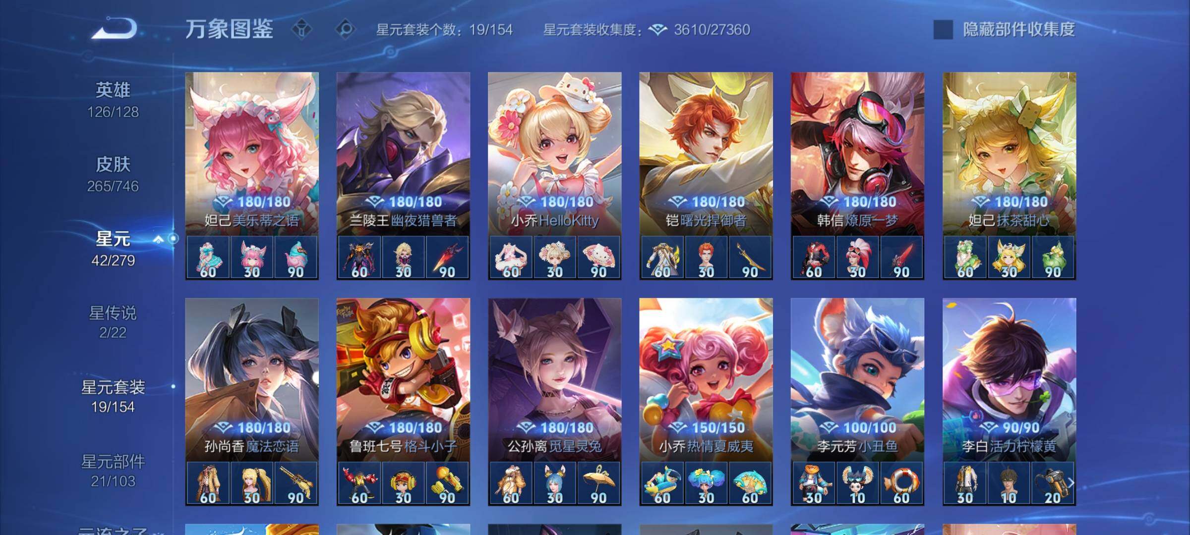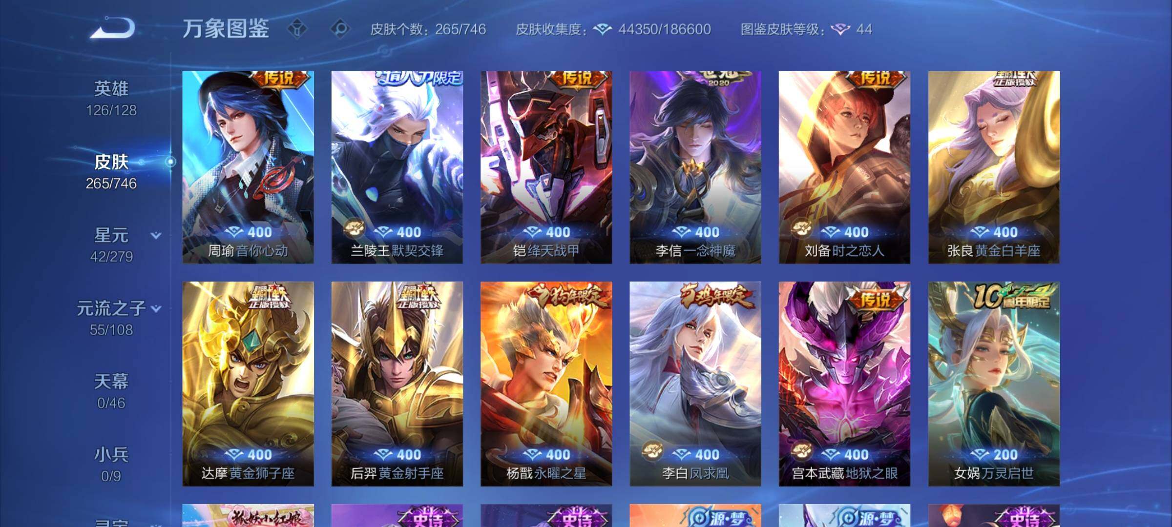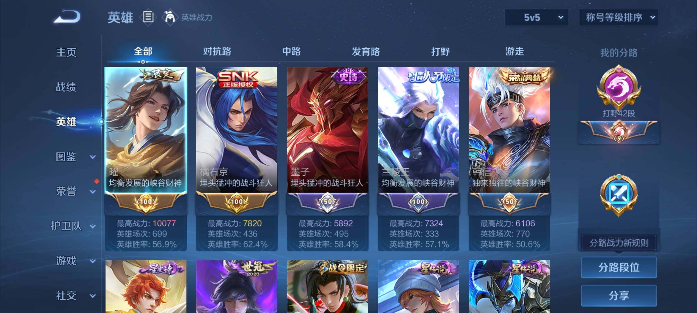 【精品打野号·42段打野·金标万战曜·金标橘子·弑呛猎影·全息碎影·曜器灵螭龙剑·云诺千山·澜愿照九州拓·夜礼服假面·妄想实况·曜李·无双飞将·凤求凰·一念神魔·永曜之星·可二次】w6079-安卓wx-126英雄-265皮肤-14王者印记-160铭文-贵族积分4w【贵族7】【2典藏·1无双·2星传说·20传说·10按键】【因赛季更新游戏段付以上号为准!】 【英雄全皮】:达摩全皮,戈娅全