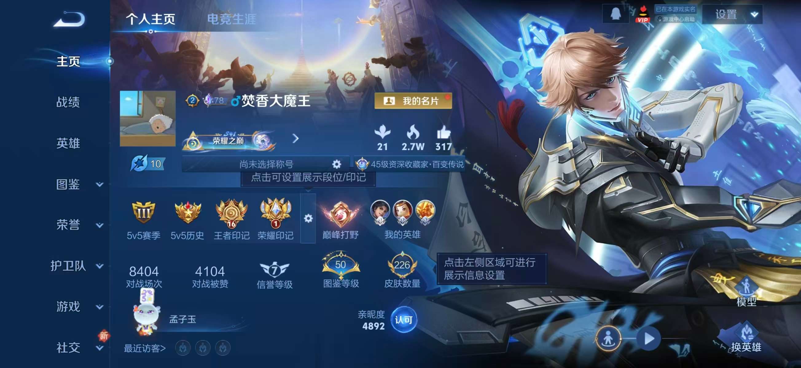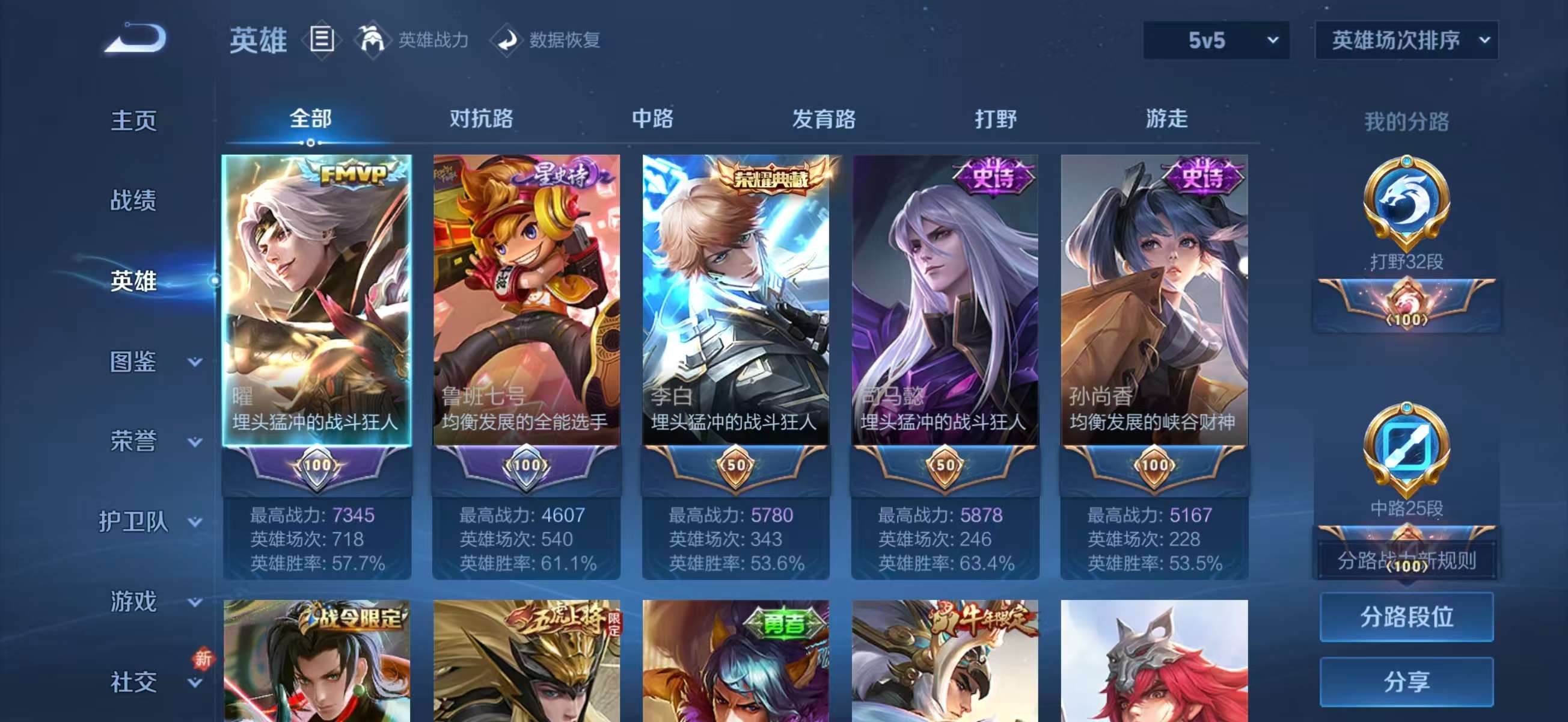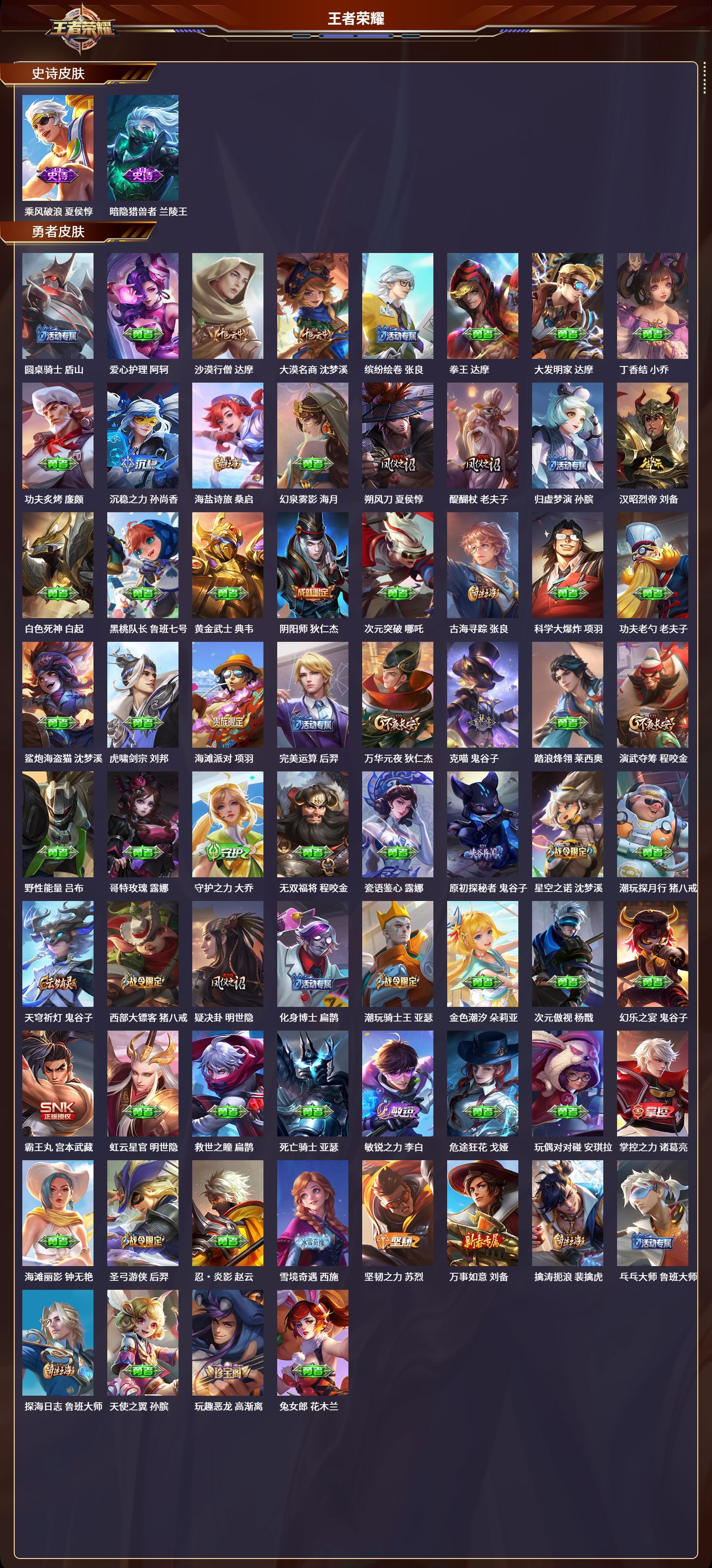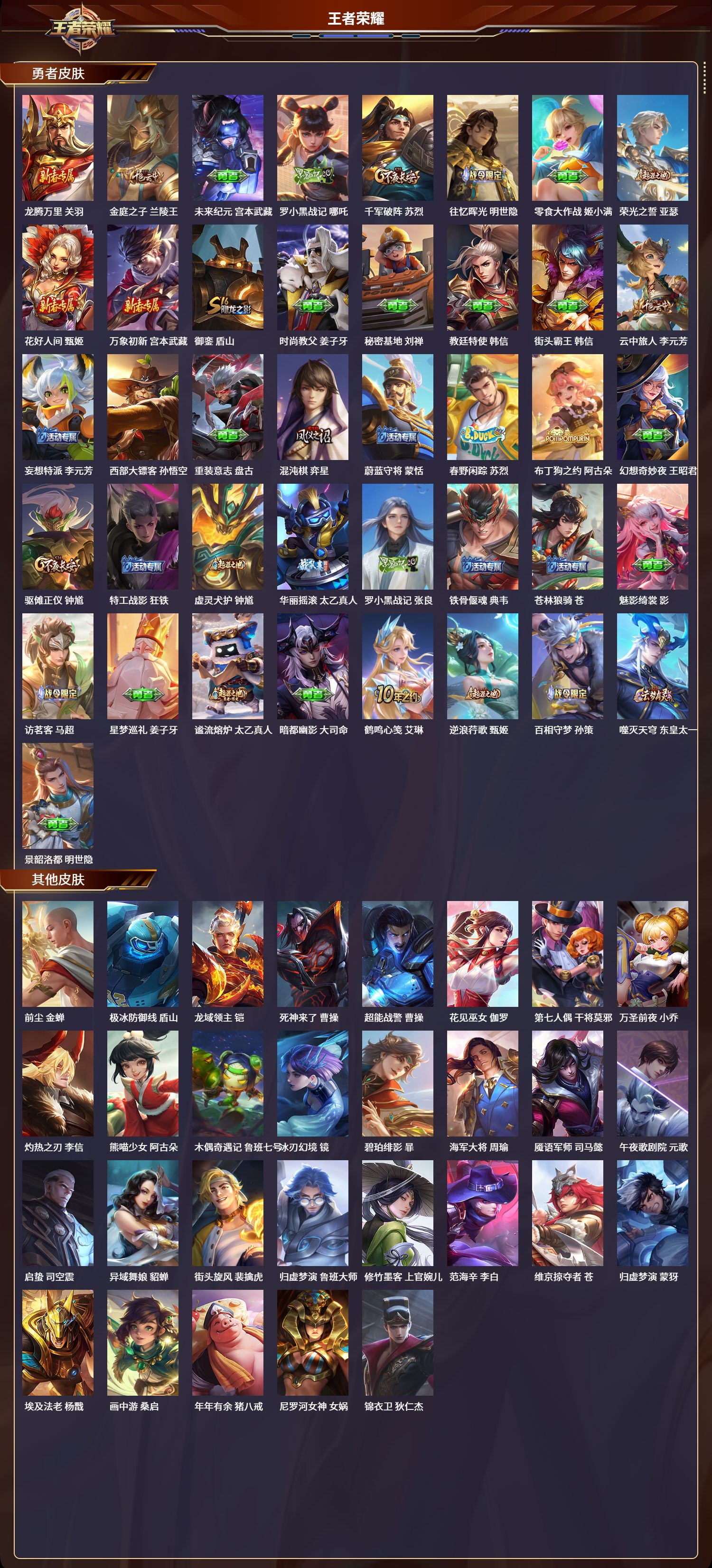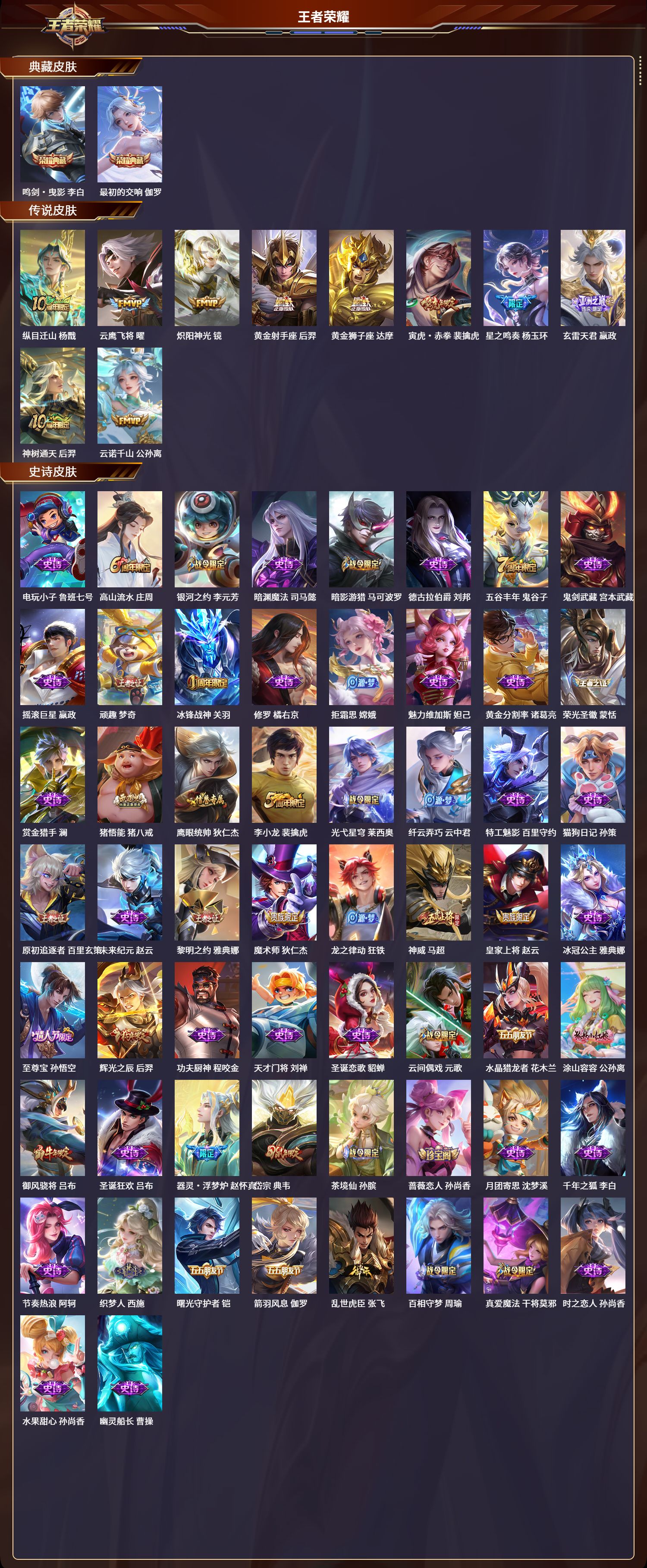 安卓qq/至尊星耀/226皮肤/124英雄/2典藏/0珍品无双/0无双/0珍品传说/10传说/60史诗/8稀有英雄【2 典藏皮肤】鸣剑·曳影 李白最初的交响 伽罗【10 传说皮肤】纵目迁山 杨戬云鹰飞将 曜炽阳神光 镜黄金射手座 后羿黄金狮子座 达摩寅虎·赤拳 裴擒虎星之鸣奏 杨玉环玄雷天君 嬴政神树通天 后羿云诺千山 公孙离【60 史诗皮肤】电玩小子