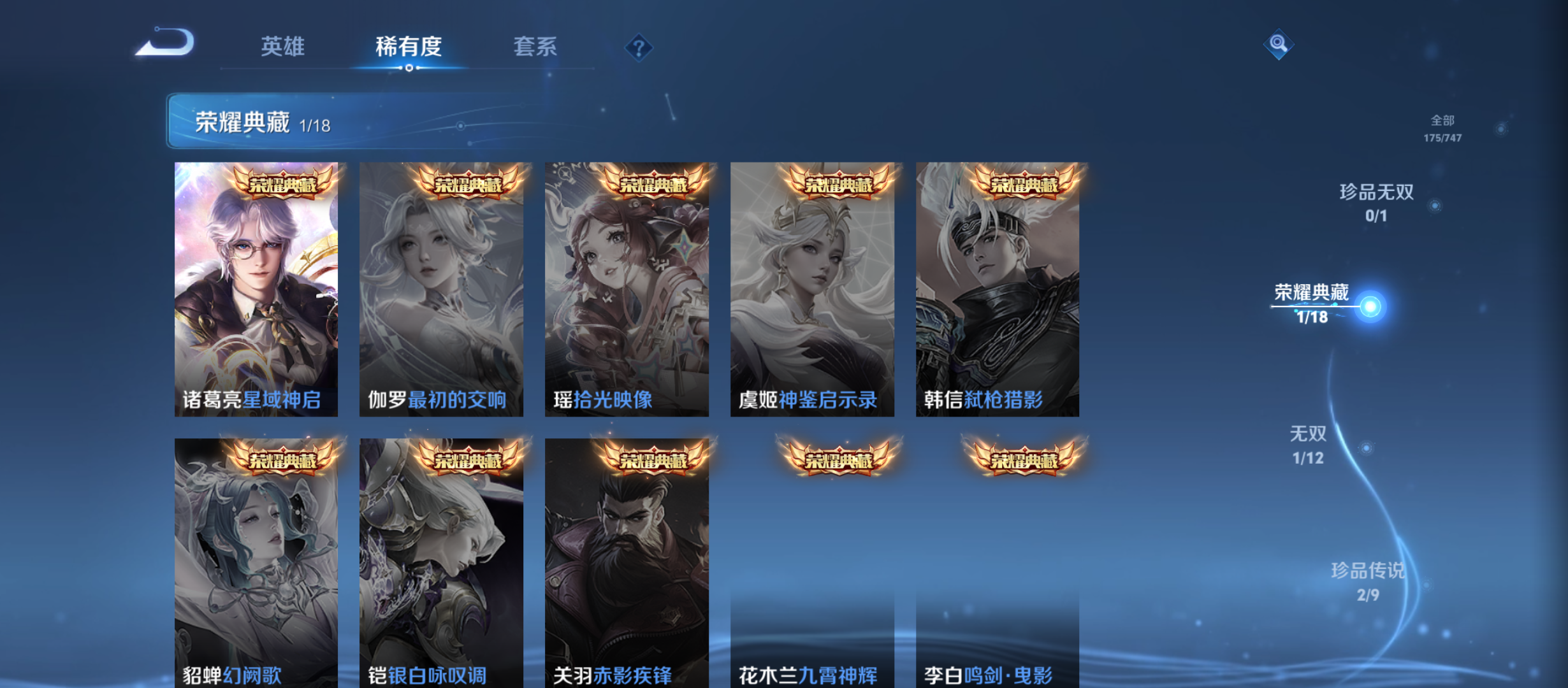 txwz23164 v7 175皮肤 1典藏-星域神启 1无双-神罪 2珍品-黑崎一护,江户川柯南 13传说-黄金射手座,深海之息,千山共赴,地狱火,胖达荣荣,幻光神呛,愿照·千秋盛,愿照·山河定,鸣野蒿,地狱之眼,乞巧织情,冠军飞将,云鹰飞将 52史诗-心灵骇客 化蝶舞 逐浪之夏 水果甜心 箭羽风息 青焰无极 蔬乡物语 特工魅影 猫狗日记 缤纷独角兽 龙之律动 乐园奇幻夜 玩趣恶龙 千年之狐 紫霞仙子 荣光圣徽 燃音魔法 灵卜魔法 光弋星穹 天秀·启明 冰雪圆舞曲 圣诞狂欢 末日机甲 茶境仙 曙光守护者 暗隐猎兽者 苍穹之光 幽灵船长 龙骑士 修罗 暗夜猫娘 蔷薇恋人 未来纪元 无心 功夫厨神 女仆咖啡 鬼剑武藏 猫狗日记 百相守梦 破空之剑 万灵启世 金属风暴 圣诞恋歌 阴阳师 魔术师 蔚蓝守将 电玩高手 孙行者 银河之约 水晶猎龙者 午后时光 乓乓大师 海滩派对 五谷丰年 劲辣红锅 皇家上将 傲雪梅呛