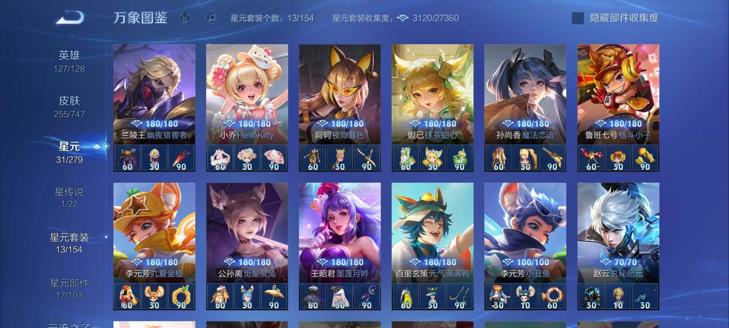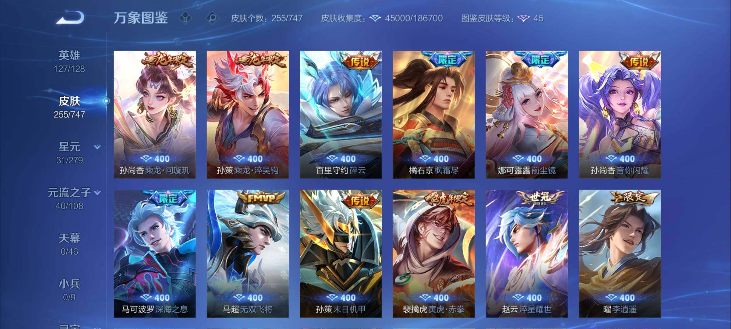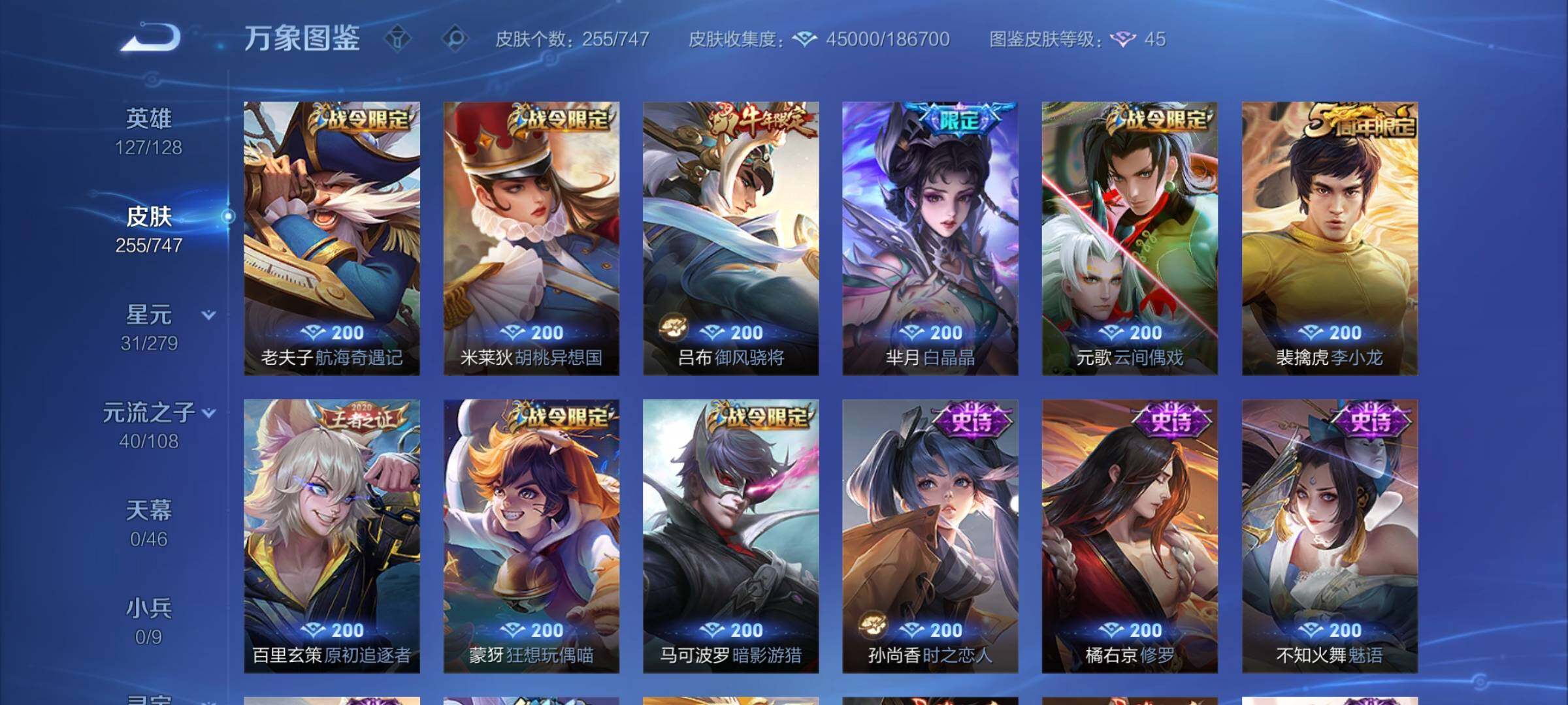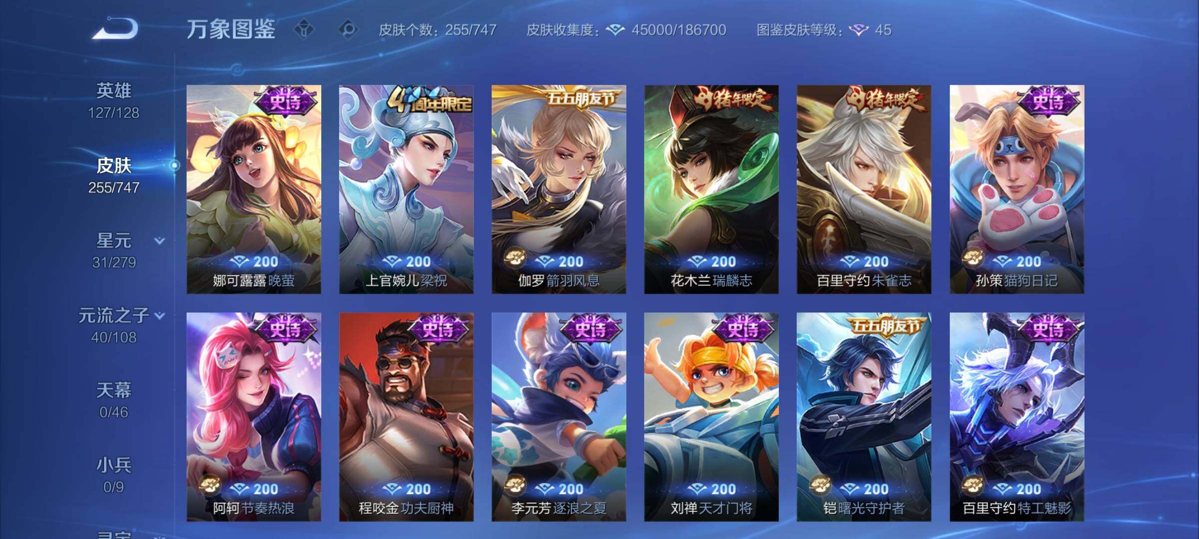【店铺主推·精品质量v8·娜可露露全皮·橘右京全皮·满龙年限定·朽木白哉·黑崎一护·鸣剑曳影·星域神启·李·寅虎赤拳·纵目迁山·神树通天·千山共赴·群星魔术团 ·黄金天蝎座·落雪白狼·乘龙问璇玑·乘龙淬吴钩·乘龙铭钟鼎·时雨天司·可二次】w7343-安卓q-127英雄-255皮肤-9王者印记-300铭文-贵族积分9w【贵族8】【2典藏·2珍品传说·1星传说·33传说·18按键】【因赛季