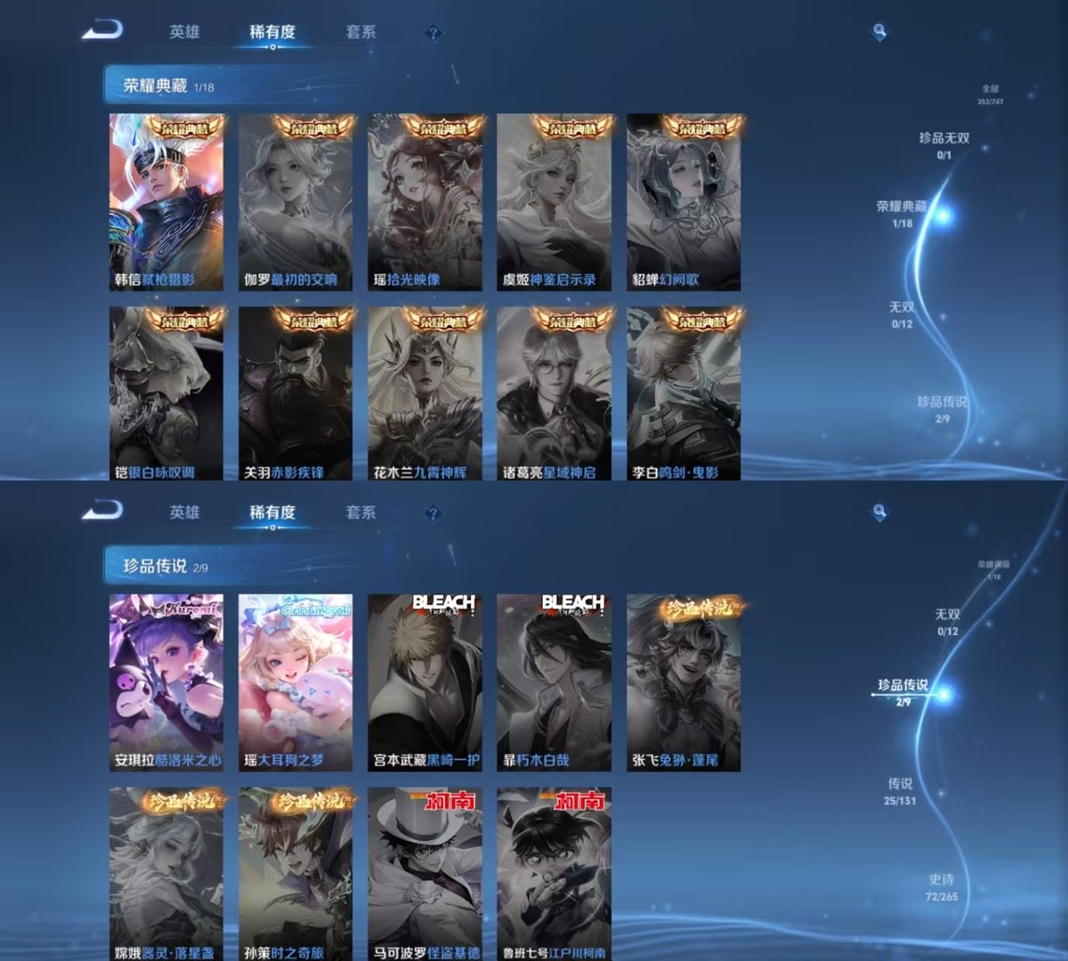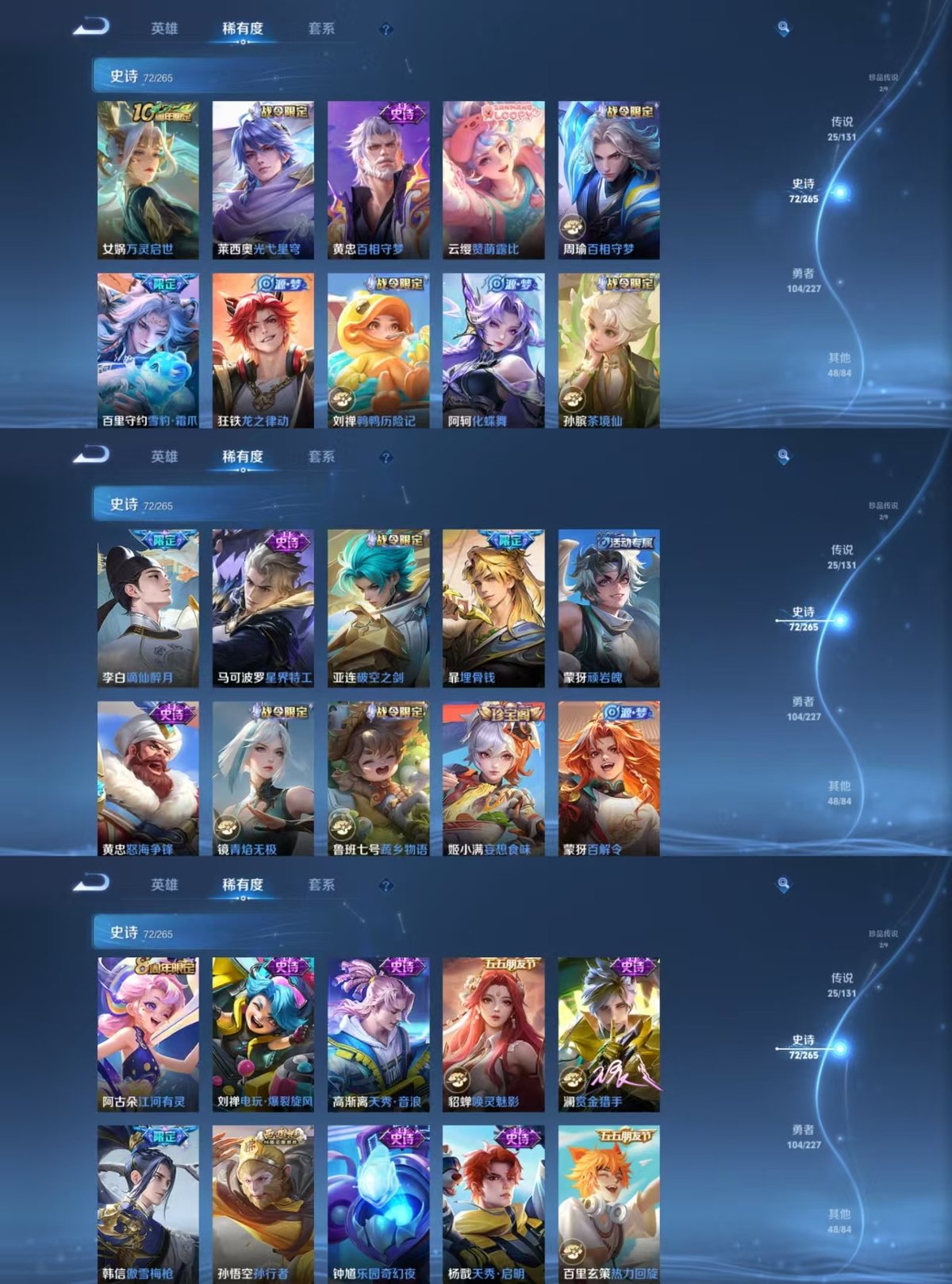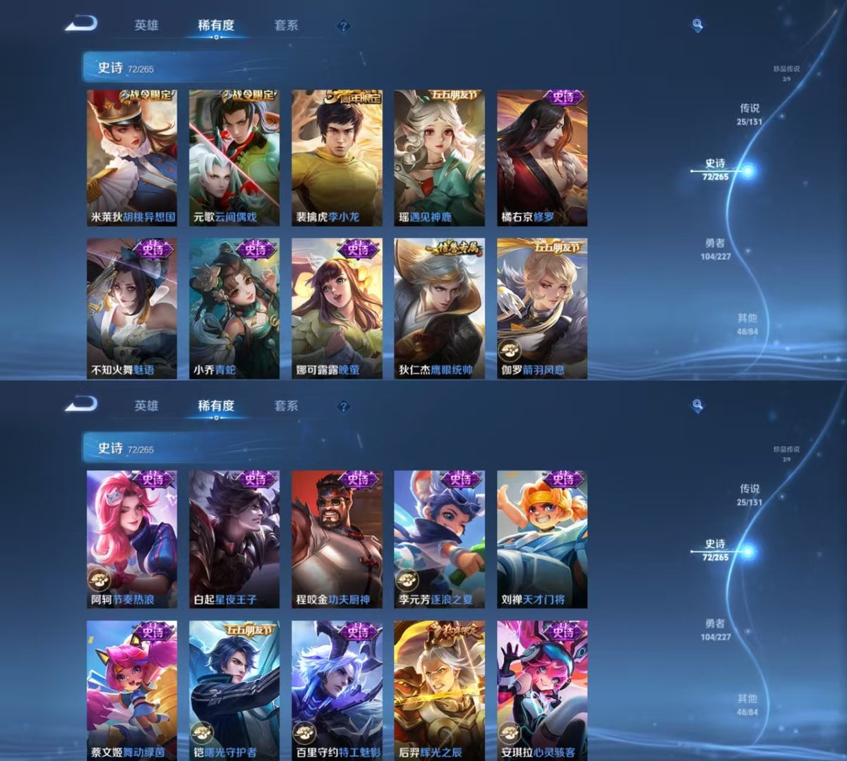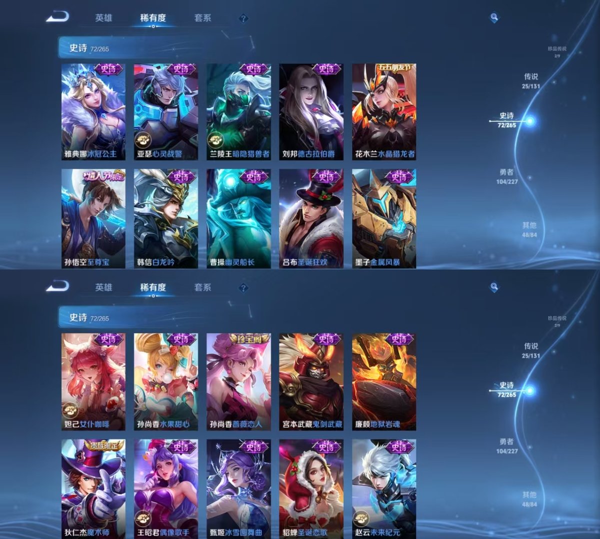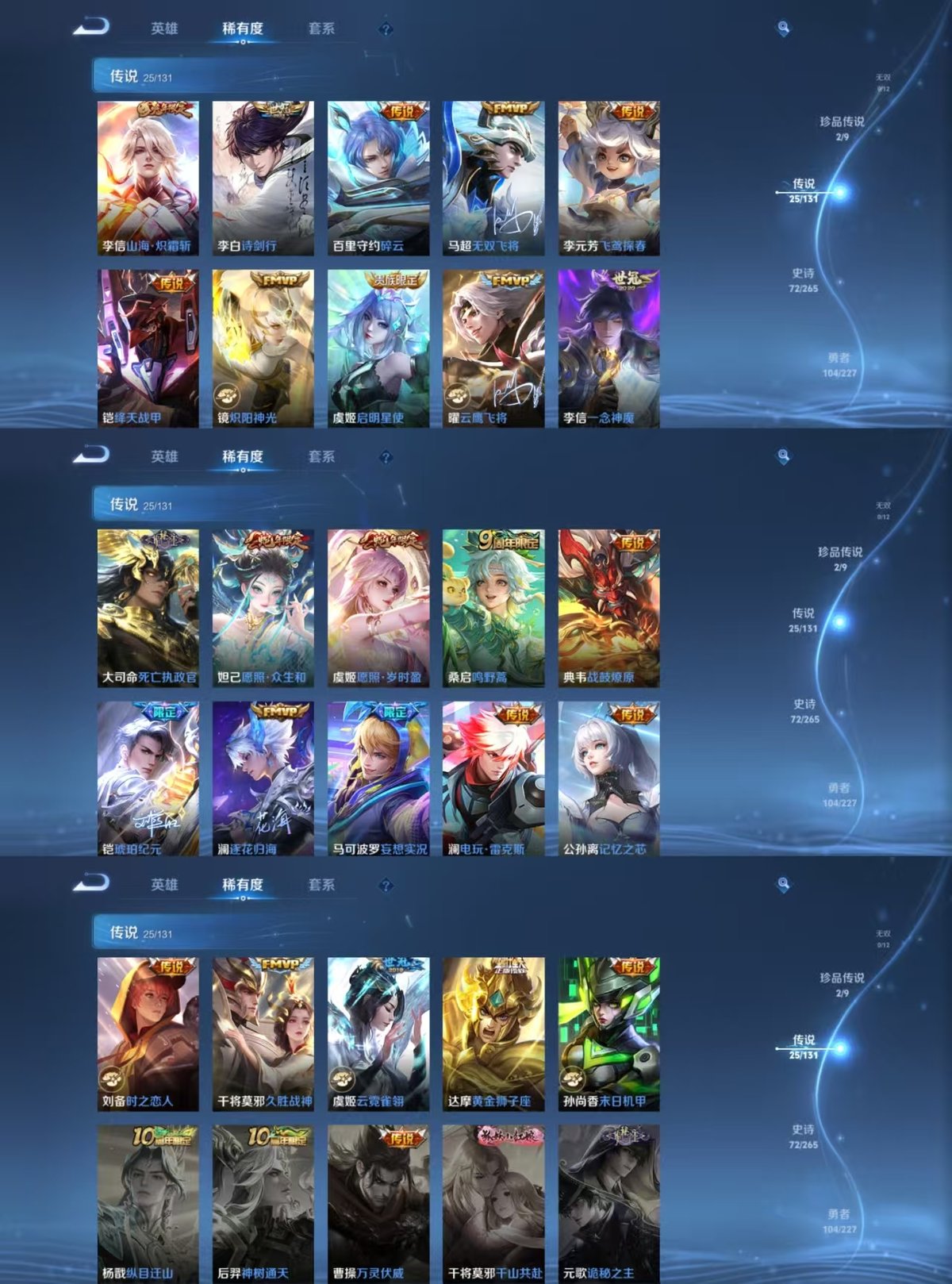 2293377-实名: 可修改 贵族等级: v8 英雄数: 126 皮肤数: 252 荣耀水晶: 弑呛猎影 珍品传说: 酷洛米之心大耳狗之梦 传说皮: 黄金狮子座云鹰飞将绛天战甲久胜战神炽阳神光一念神魔云霓雀翎末日机甲-孙尚香飞鸢探春时之恋人-刘备无双飞将碎云山海·炽霜斩记忆之芯电玩·雷克斯妄想实况澜逐花归海琥珀纪元铠典韦战鼓燎原死亡执政官 限定皮: