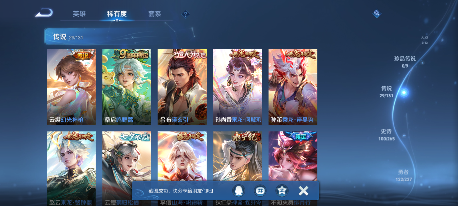 【王者荣耀】【lywz22519】珍品无双0 典藏2 无双0 珍品传说0 传说29 史诗100 英雄126 皮肤318 贵族9级 荣耀典藏:九霄神辉|弑呛猎影__传说皮肤:鸣野蒿|无双飞将|绛天战甲|炽阳神光|启明星使|地狱之眼|仲夏夜之梦|云霓雀翎|久胜战神|黄金白羊座|猫影幻舞|一念神魔|冠军飞将|李|乞巧织情|淬星耀世|绯月行|孙尚香-末日机甲|吕布-曦玄引|时雨天司|天魔缭乱|武陵仙君|乘龙·淬吴钩|乘龙·铭钟鼎|乘龙·问璇玑|云缨-鹤归松栖|山海·炽霜斩|神器·狴犴令|幻光神呛__稀有限定:白晶晶|瑞麟志|玄武志|蔷薇恋人|青春决赛季|孙行者|傲雪梅呛|李小龙|梁祝|山海·碧波行|山海·玄木吟|神器·万象笔|拒霜思|百解令|大漠名商|地狱燃心|电玩高手|古海寻踪|海滩派对|海盐诗旅|后羿-如梦令|皇家上将|辉光之辰|混沌棋|剑破天穹|江河有灵|金庭之子|黎明之约|魔术师|花木兰-默契交锋|奇幻香踪|擒涛扼浪|青焰无极|驱傩正仪|燃音魔法|荣光圣徽|沙漠行僧|朔风刀|探海日志|醍醐杖|天狼狩猎者|天穹祈灯|万华元夜|无心|五谷丰年|午后时光|纤云弄巧|星界游侠|星空之诺|演武夺筹|疑决卦|阴阳师|银河之约|优雅恋人|驭风魔法|遇见飞天|御銮|原初追逐者|云间偶戏|逐梦之星|暗夜贵公子|暗隐猎兽者|暗渊魔法|缤纷独角兽|冰冠公主|冰雪圆舞曲|苍穹之光|乘风破浪|大乔-猫狗日记|德古拉伯爵|地狱岩魂|浮梦罗烟|功夫厨神|鬼剑武藏|黄金分割率|箭羽风息|节奏热浪|金属风暴|乐园奇幻夜|李元芳-蔬乡物语|吕布-末日机甲|魅力维加斯|梦奇-顽趣|女仆咖啡|青蛇|圣诞狂欢|圣诞恋歌|诗语江南|鲁班七号-蔬乡物语|水果甜心|水晶猎龙者|孙策-猫狗日记|天才门将|天秀·启明|晚萤|赵云-未来纪元|星夜王子|摇滚巨星|鹰眼统帅|幽灵船长|钟无艳-超时空战士|逐浪之夏|紫霞仙子|东方月初|顽岩魄|蔡文姬-夏日便利店|虞姬-夏日便利店|天穹之誓|曙光守护者|心灵战警|千年之狐|关羽-百相守梦|孙尚香-时之恋人|无限星赏官|舞动绿茵|特工魅影|心灵骇客|茶境仙|星界战将|谧流熔炉|化蝶舞|原初探秘者|云中旅人|玲珑珍味|流音漫舞|访茗客|暖冬·兔眠|灵卜魔法|苍威无极|落雪兰心|死神来了|虚灵犬护|逆浪荇歌|黄忠-百相守梦|织梦人|涂山容容|荣光之誓__优质皮肤:尼罗河女神|一千零一夜|创世神祝|年年有余|埃及法老|孤猎|木偶奇遇记|熊喵少女|午夜歌剧院|露花倒影|未来旅行|激情绿茵|海之征途|碧珀绯影|秩序猎龙将|锦衣卫|冰刃幻境|森|超能战警|海军大将|绯红之刃|踏雪寻梅|启蛰|战争骑士|画中游|生化警戒|第七人偶|潮流仙人|芝加哥教父|街头旋风|绝影神呛|地府判官|荷鲁斯之眼|幸存者|赤焰之缨|福禄兄弟|隐刃|前尘|特种部队|三太子|精灵王|剑舞者|范海辛|星航指挥官|龙域领主|魇语军师|花见巫女|棒球奇才|蔷薇王座|灼热之刃|精准探案法|圣殿之光|帝国元帅|霓裳曲|阿摩司公爵|异域舞娘|精灵公主|修竹墨客|长夏之忆|功夫炙烤|聚星闪耀|潮玩探月行|瓷语鉴心|秘密基地|次元突破|鲨炮海盗猫|野性能量|丁香结|虹云星官|守护之力|幻乐之宴|功夫老勺|命运角斗场|幻想奇妙夜|海滩丽影|兔女郎|死亡骑士|黄金武士|天使之翼|玩偶对对碰|忍·炎影|爱心护理|街头霸王|教廷特使|鸿运当头|金色潮汐|漠中幻影|时空谍影|破局者|王牌新星|零食大作战|西部游侠|太极少年|牛运亨通|幻泉雾影|次元傲视|拳王|时尚教父|救世之瞳|白色死神|程咬金-星际陆战队|白执事|大发明家|哥特玫瑰|西施-雪境奇遇|星梦巡礼|灵卦秘语|爆裂喵拳|掌控之力|铁骨偃魂|纽约教父|龙腾万里|乱世虎臣|敏锐之力|西施-归虚梦演|牛魔-西部大镖客|鲁班大师-归虚梦演|龙舞盛年|汉昭烈帝|乓乓大师|五福同心|盾山-圆桌骑士|曜-归虚梦演|唤灵魔甲|太乙真人-圆桌骑士|沉稳之力|程咬金-群星魔术团|完美运算|化身博士|花好人间|熔金海岸|潮玩骑士王|万象初新|潮玩骑兵|苍林狼骑|蔚蓝守将|劲辣红锅|特工战影|妄想特派|秘证寻踪|春野闲踪|灵野札记|玫蓝誓约|无双福将|踏浪烽翎|克喵|逐霄之志__贵族等级:贵族9级__王者段位:非凡王者2典藏弑呛猎影,九霄神辉 9按键 冠军飞将,一念神魔,曦玄引,乘龙·问璇玑,乘龙·铭钟鼎,乘龙·淬吴钩,黄金白羊座,云霓雀翎,鹤归松栖,无双飞将,乞巧织情,炽阳神光,启明星使,淬星耀世,绛天战甲,猫影幻舞,山海·炽霜斩,末日机甲,地狱之眼,神器·狴犴令,绯月行,天魔缭乱,武陵仙君,李 ,仲夏夜之梦,时雨天司,久胜战神