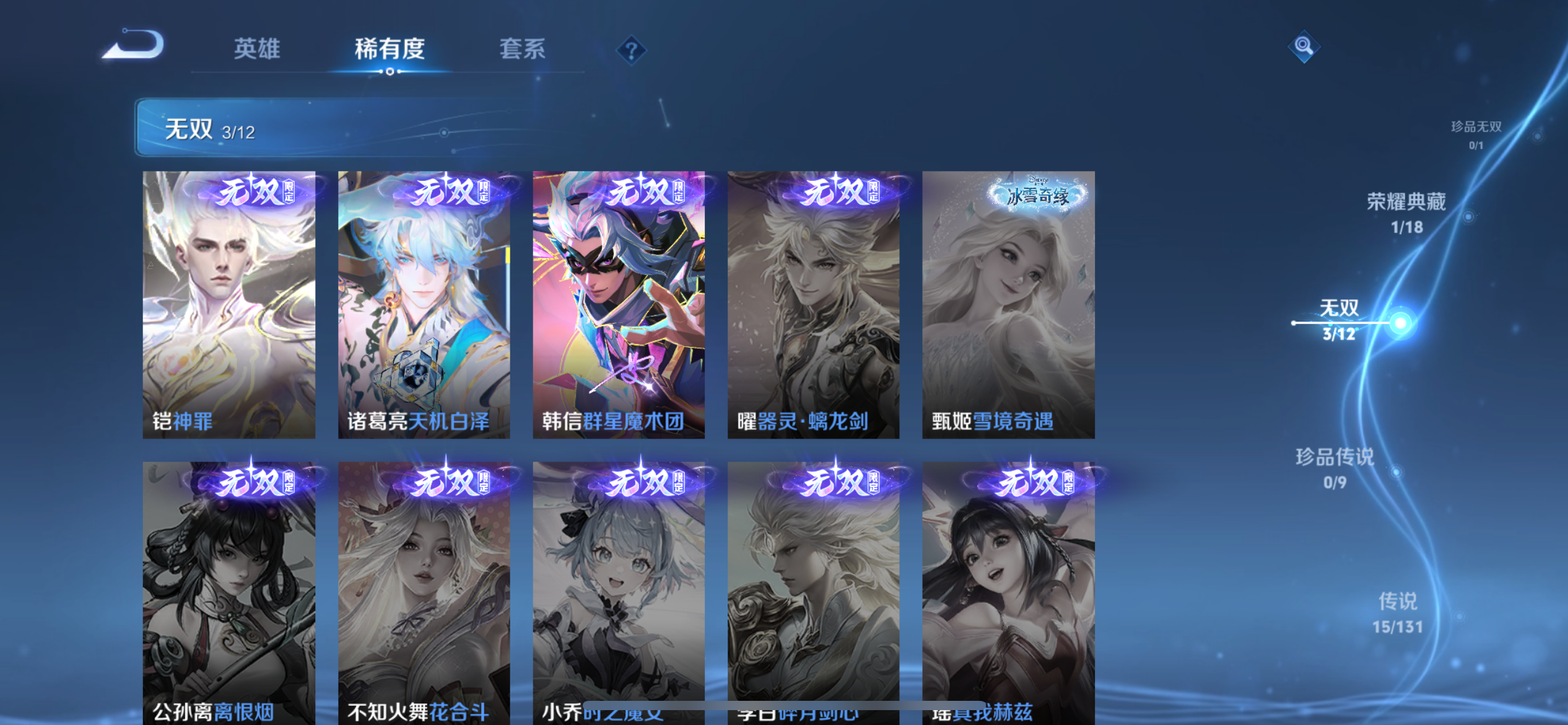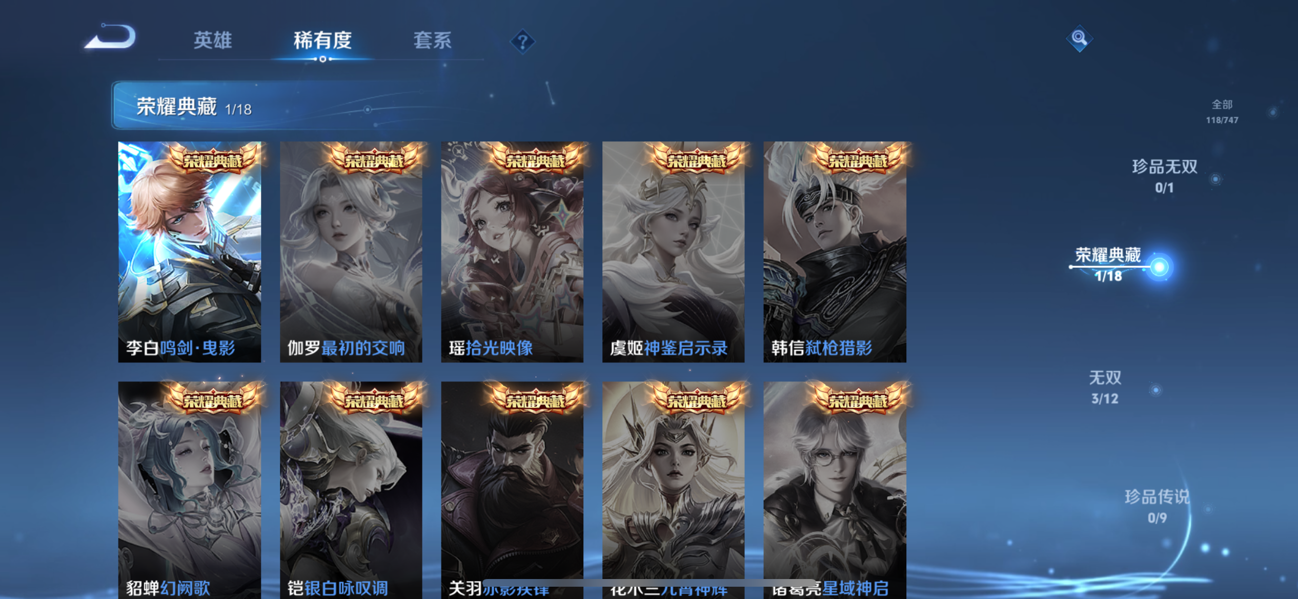 【王者荣耀】【lywz22446】珍品无双0 典藏1 无双3 珍品传说0 传说15 史诗33 英雄115 皮肤118 贵族7级 荣耀典藏:鸣剑·曳影__无双皮肤:群星魔术团|天机白泽|神罪__传说皮肤:鸣野蒿|深海之息|无双飞将|炽阳神光|地狱之眼|黄金狮子座|一念神魔|云鹰飞将|马超-琥珀纪元|燃星之曲|逐花归海|愿照·岁时盈|愿照·九州拓|云诺千山|神树通天__稀有限定:至尊宝|一生所爱|冰霜恋舞曲|海滩派对|胡桃异想国|皇家上将|魔术师|匿光追影者|阴阳师|云间偶戏|暗隐猎兽者|鬼剑武藏|黄金分割率|魅力维加斯|赏金猎手|圣诞狂欢|水果甜心|水晶猎龙者|天才门将|星夜王子|鹰眼统帅|幽灵船长|修罗|无限星赏官|茶境仙|谧流熔炉|化蝶舞|流音漫舞|访茗客|龙之律动|布丁狗之约|虚灵犬护|逆浪荇歌|孙策-百相守梦|周瑜-百相守梦|黄忠-百相守梦|涂山容容|光弋星穹|傩神司|往忆晖光|荣光之誓|万灵启世|巫礼祀神|鹤鸣心笺__优质皮肤:尼罗河女神|创世神祝|孤猎|激情绿茵|冰刃幻境|绯红之刃|生化警戒|第七人偶|幸存者|范海辛|魇语军师|灼热之刃|战争女神|丁香结|功夫老勺|幻想奇妙夜|死亡骑士|黄金武士|玩偶对对碰|街头霸王|潮玩牛仔|铁甲之心|重装意志|拳王|救世之瞳|白色死神|哥特玫瑰|西施-雪境奇遇|星梦巡礼|景韶洛都|浪漫序章|掌控之力|雾都夜雨|铁骨偃魂|纽约教父|乱世虎臣|孙悟空-西部大镖客|龙舞盛年|汉昭烈帝|沉稳之力|苍林狼骑|蔚蓝守将|劲辣红锅|春野闲踪|灵野札记|玫蓝誓约|命运加冕|死霸装|锦麟游梦|踏浪烽翎|云械蓝图|克喵|哪吒-罗小黑战记|张良-罗小黑战记|逐霄之志__贵族等级:贵族7级__王者段位:至圣王者打野皮肤号 李白典藏 铠诸葛亮韩信无双 琥珀纪元,黄金狮子座,深海之息,云鹰飞将,逐花归海,地狱之眼,云诺千山,无双飞将,炽阳神光,燃星之曲,愿照·岁时盈,一念神魔,愿照·九州拓