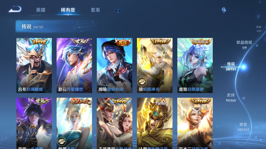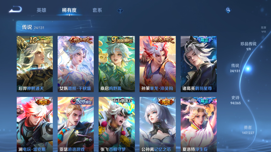 【王者荣耀】【lywz22501】珍品无双0 典藏0 无双1 珍品传说1 传说24 史诗94 英雄126 皮肤333 贵族8级 无双皮肤:青丘·九尾__珍品传说:孙策-时之奇旅__传说皮肤:鸣野蒿|炽阳神光|启明星使|胖达荣荣|地狱之眼|久胜战神|黄金狮子座|黄金射手座|一念神魔|冠军飞将|淬星耀世|电玩·雷克斯|浮生妄|鹤羽星尊|记忆之芯|凤求凰|怒海麟威|太华|亚瑟-追逃游戏|周瑜-音你心动|乘龙·淬吴钩|张飞-百相守梦|愿照·千秋盛|神树通天__稀有限定:至尊宝|青龙志|玄武志|岱宗|飞衡|蔷薇恋人|李小龙|梁祝|暗影游猎|白昼王子|大漠名商|繁星吟游|高山流水|古海寻踪|海滩派对|海盐诗旅|胡桃异想国|皇家上将|混沌棋|剑破天穹|江河有灵|金庭之子|狂想玩偶喵|黎明之约|迷踪丽影|魔术师|花木兰-默契交锋|匿光破解者|奇幻香踪|千军破阵|擒涛扼浪|青焰无极|驱傩正仪|燃音魔法|荣光圣徽|沙漠行僧|朔风刀|探海日志|醍醐杖|天狼征服者|天穹祈灯|万华元夜|妄想食味|五谷丰年|纤云弄巧|星空之诺|驯魔猎人|演武夺筹|疑决卦|阴阳师|银河之约|优雅恋人|御旌|御銮|原初追逐者|云间偶戏|真爱魔法|暗夜贵公子|暗隐猎兽者|白蛇|缤纷独角兽|冰冠公主|冰雪圆舞曲|苍穹之光|乘风破浪|大乔-猫狗日记|地狱岩魂|功夫厨神|鬼剑武藏|黄金分割率|箭羽风息|节奏热浪|金属风暴|乐园奇幻夜|李元芳-蔬乡物语|龙骑士|吕布-末日机甲|梦奇-顽趣|女仆咖啡|偶像歌手|赏金猎手|绅士熊喵|圣诞狂欢|圣诞恋歌|鲁班七号-蔬乡物语|水果甜心|水晶猎龙者|孙策-猫狗日记|天才门将|赵云-未来纪元|星夜王子|摇滚巨星|鹰眼统帅|幽灵船长|逐浪之夏|紫霞仙子|噬灭天穹|敬我三分|顽岩魄|天穹之誓|修罗|曙光守护者|心灵战警|千年之狐|关羽-百相守梦|刘备-百相守梦|孙尚香-时之恋人|无限星赏官|舞动绿茵|特工魅影|心灵骇客|茶境仙|星界战将|谧流熔炉|苍鳞隐世|器灵·浮梦炉|御霄|原初探秘者|云中旅人|单词大作战|钟馗-神迹守卫|达摩-星际陆战队|访茗客|灵卜魔法|夺宝奇兵|苍威无极|圣弓游侠|灵蛊蚀心|布丁狗之约|虚灵犬护|逆浪荇歌|黄忠-百相守梦|涂山容容|荣光之誓|万灵启世|鹤鸣心笺__优质皮肤:尼罗河女神|一千零一夜|创世神祝|年年有余|埃及法老|孤猎|木偶奇遇记|熊喵少女|午夜歌剧院|露花倒影|激情绿茵|海之征途|秩序猎龙将|锦衣卫|冰刃幻境|超能战警|英喵野望|海军大将|绯红之刃|踏雪寻梅|启蛰|伊势巫女|画中游|生化警戒|威尼斯狂欢|第七人偶|潮流仙人|芝加哥教父|街头旋风|绝影神呛|地府判官|荷鲁斯之眼|幸存者|赤焰之缨|隐刃|前尘|特种部队|精灵王|剑舞者|范海辛|星航指挥官|龙域领主|爱与和平|占星师|花间舞|魇语军师|花见巫女|棒球奇才|东海龙王|灼热之刃|精准探案法|圣殿之光|战争女神|霓裳曲|加勒比小姐|阿摩司公爵|异域舞娘|精灵公主|修竹墨客|万圣前夜|怪诞之夜|破阵·退雄兵|功夫炙烤|潮玩探月行|秘密基地|次元突破|鲨炮海盗猫|野性能量|丁香结|奇妙博物学|虹云星官|守护之力|坚韧之力|幻乐之宴|功夫老勺|命运角斗场|幻想奇妙夜|海滩丽影|阿尔法小队|兔女郎|黄金武士|少女阿狸|天使之翼|玩偶对对碰|宫本武藏-未来纪元|东方不败|红桃皇后|忍·炎影|爱心护理|街头霸王|教廷特使|漠中幻影|决胜大满贯|零食大作战|西部游侠|太极少年|幻泉雾影|铁甲之心|重装意志|次元傲视|无尽征程|黑桃队长|拳王|时尚教父|救世之瞳|白色死神|程咬金-星际陆战队|白执事|大发明家|哥特玫瑰|西施-雪境奇遇|金福满堂|星梦巡礼|景韶洛都|浪漫序章|猪八戒-西部大镖客|缤纷绘卷|掌控之力|雾都夜雨|逐霄战戟|铁骨偃魂|纽约教父|龙腾万里|霸王丸|乱世虎臣|敏锐之力|西施-归虚梦演|孙悟空-西部大镖客|牛魔-西部大镖客|龙舞盛年|汉昭烈帝|乓乓大师|五福同心|盾山-圆桌骑士|猎兽之王|万事如意|曜-归虚梦演|唤灵魔甲|太乙真人-圆桌骑士|沉稳之力|赤莲之焰|程咬金-群星魔术团|化身博士|花好人间|熔金海岸|春野之旅|潮玩骑士王|万象初新|潮玩骑兵|苍林狼骑|蔚蓝守将|劲辣红锅|特工战影|炽热元素使|妄想特派|春野闲踪|灵野札记|玫蓝誓约|命运加冕|小满鸭|死霸装|无双福将|锦麟游梦|踏浪烽翎|云械蓝图|克喵|哪吒-罗小黑战记|张良-罗小黑战记__贵族等级:贵族8级__王者段位:传奇王者一个水晶未用,32段对抗,31段游走,万战苏烈,14按键1天幕