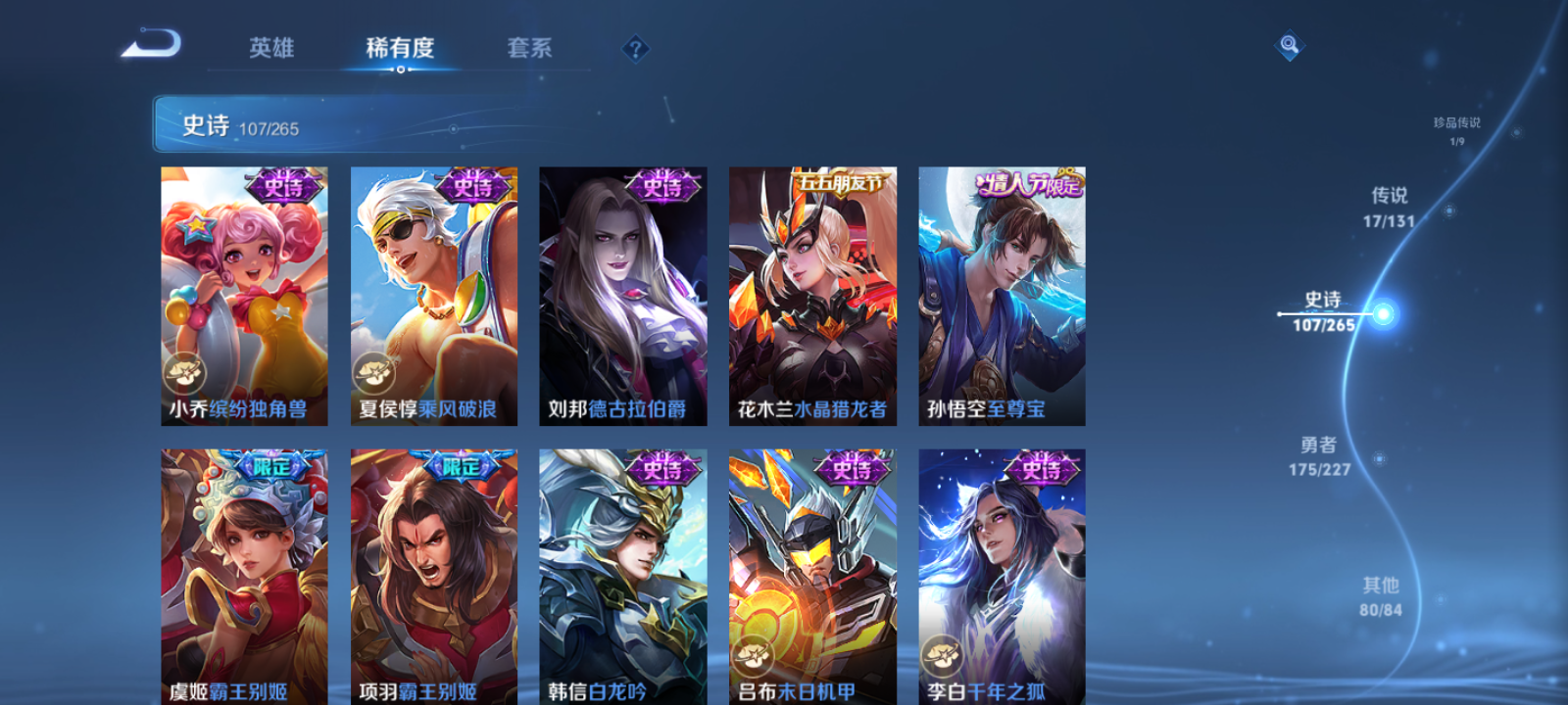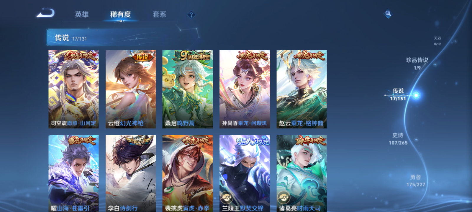 【王者荣耀】【lywz22516】珍品无双0 典藏1 无双0 珍品传说1 传说17 史诗107 英雄127 皮肤381 贵族8级 荣耀典藏:弑呛猎影__珍品传说:怪盗基德__传说皮肤:鸣野蒿|启明星使|地狱之眼|地狱火|仲夏夜之梦|黄金狮子座|冠军飞将|凤求凰|兰陵王-默契交锋|诗剑行|时雨天司|乘龙·铭钟鼎|乘龙·问璇玑|山海·苍雷引|寅虎·赤拳|幻光神呛|愿照·山河定__稀有限定:御风骁将|至尊宝|青龙志|虞姬-霸王别姬|大圣娶亲|岱宗|飞衡|蔷薇恋人|神威|青春决赛季|孙行者|猪悟能|李小龙|拒霜思|暗影游猎|白昼王子|百解令|冰霜恋舞曲|大漠名商|地狱燃心|繁星吟游|古海寻踪|海滩派对|海盐诗旅|航海奇遇记|胡桃异想国|皇家上将|辉光之辰|混沌棋|剑破天穹|江河有灵|金庭之子|决胜骁骑|狂想玩偶喵|魔术师|花木兰-默契交锋|千军破阵|擒涛扼浪|青焰无极|穷奇|驱傩正仪|燃音魔法|沙漠行僧|朔风刀|醍醐杖|天穹祈灯|万华元夜|王者之锤|无心|五谷丰年|纤云弄巧|项羽-霸王别姬|演武夺筹|疑决卦|阴阳师|优雅恋人|游园惊梦|遇见飞天|御旌|御銮|御狮|云间偶戏|暗夜贵公子|暗隐猎兽者|白龙吟|缤纷独角兽|冰冠公主|冰雪圆舞曲|乘风破浪|德古拉伯爵|地狱岩魂|伽罗-琥珀纪元|功夫厨神|鬼剑武藏|黄金分割率|箭羽风息|节奏热浪|金属风暴|乐园奇幻夜|李元芳-蔬乡物语|龙骑士|吕布-末日机甲|魅力维加斯|女仆咖啡|偶像歌手|青蛇|热力回旋|赏金猎手|绅士熊喵|圣诞狂欢|圣诞恋歌|鲁班七号-蔬乡物语|水果甜心|水晶猎龙者|孙策-猫狗日记|天才门将|天秀·启明|晚萤|赵云-未来纪元|星夜王子|雪夜绮愿|摇滚巨星|鹰眼统帅|幽灵船长|月团寄思|逐浪之夏|紫霞仙子|百里守约-百相守梦|老夫子-百相守梦|噬灭天穹|敬我三分|破空之剑|埋骨钱|蔡文姬-夏日便利店|虞姬-夏日便利店|天穹之誓|浮光幕影|怒海争锋|修罗|曙光守护者|心灵战警|千年之狐|舞动绿茵|特工魅影|心灵骇客|茶境仙|谧流熔炉|万物之道|器灵·浮梦炉|御霄|烛龙|原初探秘者|云中旅人|单词大作战|孙悟空-神迹守卫|达摩-星际陆战队|流音漫舞|访茗客|灵卜魔法|苍威无极|墨子-神迹守卫|仙境爱丽丝|灵蛊蚀心|龙之律动|布丁狗之约|虚灵犬护|逆浪荇歌|孙策-百相守梦|周瑜-百相守梦|黄忠-百相守梦|织梦人|涂山容容|光弋星穹|往忆晖光|荣光之誓__优质皮肤:尼罗河女神|一千零一夜|创世神祝|年年有余|埃及法老|孤猎|木偶奇遇记|熊喵少女|午夜歌剧院|露花倒影|未来旅行|激情绿茵|海之征途|天启骑士|碧珀绯影|秩序猎龙将|锦衣卫|冰刃幻境|森|超能战警|英喵野望|维京掠夺者|海军大将|绯红之刃|踏雪寻梅|启蛰|战争骑士|伊势巫女|画中游|生化警戒|威尼斯狂欢|第七人偶|潮流仙人|芝加哥教父|街头旋风|绝影神呛|地府判官|荷鲁斯之眼|幸存者|赤焰之缨|福禄兄弟|隐刃|前尘|特种部队|三太子|精灵王|剑舞者|范海辛|星航指挥官|龙域领主|爱与和平|占星师|花间舞|魇语军师|极冰防御线|花见巫女|棒球奇才|东海龙王|蔷薇王座|灼热之刃|精准探案法|圣殿之光|帝国元帅|战争女神|霓裳曲|加勒比小姐|阿摩司公爵|异域舞娘|精灵公主|修竹墨客|万圣前夜|动物派对|绒语心约|长夏之忆|破阵·退雄兵|异域游侠|暗都幽影|功夫炙烤|暖冬絮语|潮玩探月行|虎啸剑宗|瓷语鉴心|秘密基地|次元突破|鲨炮海盗猫|野性能量|丁香结|奇妙博物学|虹云星官|科学大爆炸|守护之力|坚韧之力|幻乐之宴|功夫老勺|命运角斗场|幻想奇妙夜|海滩丽影|阿尔法小队|兔女郎|死亡骑士|黄金武士|少女阿狸|天使之翼|玩偶对对碰|宫本武藏-未来纪元|红桃皇后|忍·炎影|爱心护理|街头霸王|教廷特使|鸿运当头|金色潮汐|漠中幻影|时空谍影|决胜大满贯|破局者|太极少年|牛运亨通|幻泉雾影|潮玩造梦师|危途狂花|胡桃狂想曲|契约魔法|紫罗兰之誓|铁甲之心|重装意志|次元傲视|无尽征程|黑桃队长|幽兰居士|制霸全明星|拳王|时尚教父|鲤鱼之梦|救世之瞳|白色死神|程咬金-星际陆战队|白执事|大发明家|哥特玫瑰|西施-雪境奇遇|金福满堂|星梦巡礼|灵卦秘语|爆裂喵拳|景韶洛都|浪漫序章|猪八戒-西部大镖客|缤纷绘卷|掌控之力|雾都夜雨|逐霄战戟|铁骨偃魂|纽约教父|龙腾万里|敏锐之力|西施-归虚梦演|孙悟空-西部大镖客|牛魔-西部大镖客|鲁班大师-归虚梦演|龙舞盛年|汉昭烈帝|乓乓大师|五福同心|盾山-圆桌骑士|猎兽之王|蒙犽-归虚梦演|万事如意|曜-归虚梦演|唤灵魔甲|太乙真人-圆桌骑士|沉稳之力|赤莲之焰|程咬金-群星魔术团|完美运算|化身博士|花好人间|熔金海岸|春野之旅|潮玩骑士王|无尽旅途|万象初新|苍林狼骑|蔚蓝守将|劲辣红锅|特工战影|炽热元素使|妄想特派|秘证寻踪|春野闲踪|灵野札记|玫蓝誓约|命运加冕|小满鸭|死霸装|无双福将|锦麟游梦|踏浪烽翎|云械蓝图|戏梦巡演|克喵|青衿临川|逐霄之志__贵族等级:贵族8级__王者段位:荣耀王者打野皮肤号 韩信典藏 马可珍品传说 愿照·山河定,启明星使,时雨天司,乘龙·问璇玑,乘龙·铭钟鼎,山海·苍雷引,寅虎·赤拳,凤求凰等限定皮肤