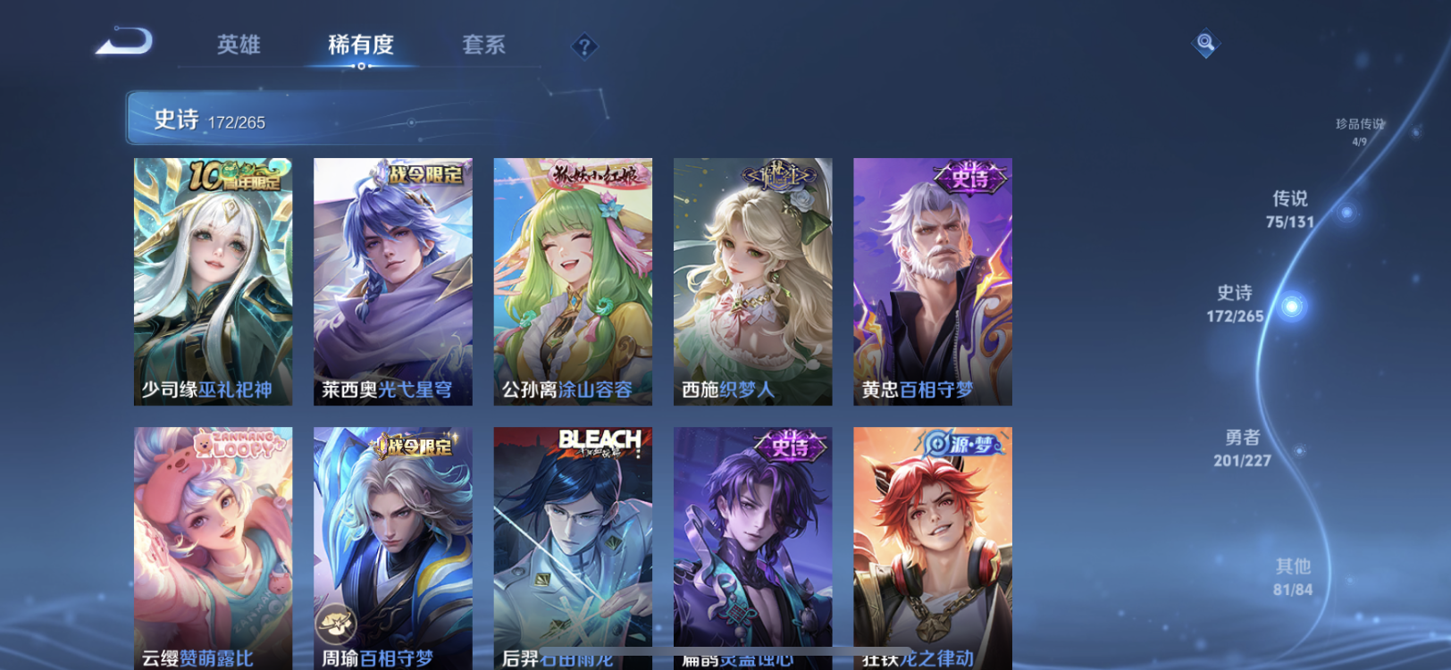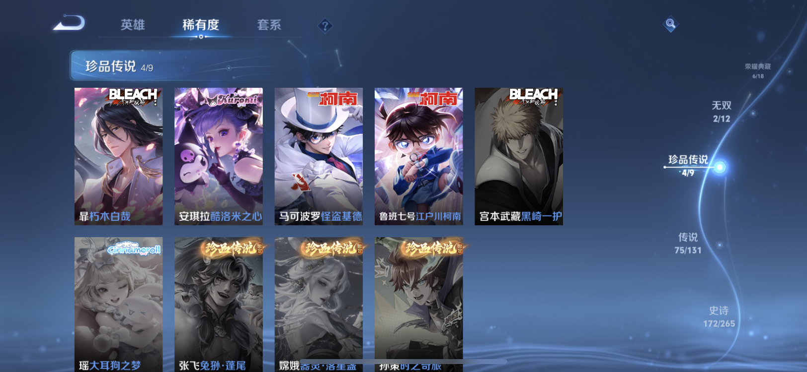 【王者荣耀】【lywz22466】珍品无双0 典藏6 无双2 珍品传说4 传说75 史诗172 英雄128 皮肤541 贵族10级 荣耀典藏:无限飓风号|全息碎影|大秦宣太后|武则天|银白咏叹调|九霄神辉|倪克斯神谕__无双皮肤:离恨烟|神器·明辉仪__珍品传说:江户川柯南|怪盗基德|酷洛米之心|朽木白哉__传说皮肤:鸣野蒿|枫霜尽|前尘镜|深海之息|无尽星芒|无双飞将|挚爱之约|启示之音|花朝如约|异界灵契|炽阳神光|启明星使|地狱之眼|云霓雀翎|久胜战神|黄金狮子座|狄仁杰-超时空战士|黄金白羊座|猫影幻舞|一念神魔|云鹰飞将|飞鸢探春|李|游龙清影|乞巧织情|淬星耀世|瑶-时之祈愿|电玩·雷克斯|绯月行|浮生妄|鹤羽星尊|画中仙|记忆之芯|齐天大圣|安琪拉-追逃游戏|大乔-时之奇旅|凤求凰|惊梅引|兰陵王-默契交锋|零号·赤焰|吕布-曦玄引|怒海麟威|燃星之曲|诗剑行|时雨天司|霜月吟|碎云|太华|妄想实况|武圣|亚瑟-追逃游戏|永曜之星|遇见胡旋|遇见神鼓|战鼓燎原|周瑜-音你心动|逐花归海|云缨-鹤归松栖|觅芳踪|山海·苍雷引|山海·炽霜斩|山海·琳琅生|寅虎·赤拳|灼幽烈阳|映山客|牧神诗旅|张飞-百相守梦|玄雷天君|幻光神呛|愿照·岁时盈|愿照·山河定|愿照·九州拓|愿照·千秋盛|云诺千山|神树通天__稀有限定:寅虎·御盾|寅虎·心曲|奔雷神使|至尊宝|瑞麟志|引擎之心|岱宗|飞衡|神威|龙胆|白鹤梁神女|孙行者|猪悟能|傲雪梅呛|李小龙|梁祝|神器·万象笔|时之彼端|狮舞东方|拒霜思|暗影游猎|百解令|百里守约-真我赫兹|冰锋战神|妲己-时之奇旅|大漠名商|地狱燃心|电玩高手|繁星吟游|高山流水|古海寻踪|海滩派对|海盐诗旅|航海奇遇记|胡桃异想国|华丽摇滚|幻夜卜梦|皇家上将|辉光之辰|混沌棋|火炮绅士|剑破天穹|降魔|金庭之子|镜-真我赫兹|凯尔特女王|狂想玩偶喵|黎明之约|炼金王|美猴王|梦圆繁星|迷踪丽影|魔术师|匿光破解者|匿光启智者|匿光侦查者|女武神|奇幻香踪|千军破阵|擒涛扼浪|穷奇|驱傩正仪|热情桑巴|荣光圣徽|沙漠行僧|朔风刀|死亡摇滚|探海日志|饕餮|醍醐杖|天穹祈灯|玩趣恶龙|阿古朵-顽趣|万华元夜|王者之锤|妄想食味|无心|五谷丰年|午后时光|纤云弄巧|星界游侠|星空之诺|演武夺筹|夜都怪侠|疑决卦|阴阳师|吟游魔法|银河之约|优雅恋人|遇见飞天|御旌|御銮|御狮|原初追逐者|云间偶戏|真爱魔法|逐梦之音|暗夜贵公子|暗夜猫娘|暗隐猎兽者|暗渊魔法|白龙吟|白蛇|缤纷独角兽|冰冠公主|冰雪圆舞曲|苍穹之光|乘风破浪|大乔-猫狗日记|德古拉伯爵|地狱岩魂|电玩·爆裂旋风|电玩·兔顽号|电玩小子|伽罗-琥珀纪元|功夫厨神|鬼剑武藏|唤灵魅影|黄金分割率|箭羽风息|节奏热浪|金属风暴|乐园奇幻夜|李元芳-蔬乡物语|龙鼓争鸣|龙骑士|吕布-末日机甲|玫瑰异探|魅力维加斯|魅语|梦奇-顽趣|女仆咖啡|偶像歌手|奇遇舞章|奇遇星旅|千筹问战|青蛇|热力回旋|赏金猎手|绅士熊喵|圣诞狂欢|圣诞恋歌|诗语江南|鲁班七号-蔬乡物语|水果甜心|水晶猎龙者|孙策-猫狗日记|滕王阁序|天才门将|天秀·幻梦|天秀·启明|天秀·音浪|完美假期|晚萤|赵云-未来纪元|闲日渔趣|星夜王子|雪上飞焰|雪夜绮愿|摇滚巨星|银翎春语|鹰眼统帅|永昼|幽灵船长|遇见神鹿|月团寄思|钟无艳-超时空战士|逐浪之夏|紫霞仙子|赵怀真-鹤归松栖|百里守约-百相守梦|老夫子-百相守梦|陌上桑|谪仙醉月|噬灭天穹|敬我三分|炽弈燎原|破空之剑|东方月初|涂山红红|顽岩魄|蔡文姬-夏日便利店|虞姬-夏日便利店|天穹之誓|安琪拉-时之奇旅|修罗|曙光守护者|心灵战警|千年之狐|关羽-百相守梦|刘备-百相守梦|孙尚香-时之恋人|无限星赏官|舞动绿茵|特工魅影|心灵骇客|飞车小橘子|茶境仙|星界战将|谧流熔炉|糖绘人间|化蝶舞|御霄|狰|烛龙|原初探秘者|重明|云中旅人|玲珑珍味|单词大作战|朔望之晖|钟馗-神迹守卫|孙悟空-神迹守卫|达摩-星际陆战队|流音漫舞|访茗客|暖冬·兔眠|灵卜魔法|夺宝奇兵|苍威无极|圣弓游侠|墨子-神迹守卫|落雪兰心|死神来了|华尔街大亨|刘禅-鸭鸭历险记|沈梦溪-鸭鸭历险记|灵蛊蚀心|龙之律动|布丁狗之约|虚灵犬护|石田雨龙|逆浪荇歌|孙策-百相守梦|周瑜-百相守梦|赞萌露比|黄忠-百相守梦|织梦人|涂山容容|光弋星穹|往忆晖光|荣光之誓|巫礼祀神|鹤鸣心笺__优质皮肤:尼罗河女神|一千零一夜|创世神祝|年年有余|埃及法老|孤猎|木偶奇遇记|熊喵少女|午夜歌剧院|露花倒影|未来旅行|激情绿茵|海之征途|天启骑士|碧珀绯影|秩序猎龙将|锦衣卫|冰刃幻境|森|超能战警|英喵野望|维京掠夺者|海军大将|绯红之刃|踏雪寻梅|启蛰|战争骑士|伊势巫女|画中游|生化警戒|威尼斯狂欢|第七人偶|潮流仙人|芝加哥教父|街头旋风|绝影神呛|地府判官|荷鲁斯之眼|幸存者|赤焰之缨|福禄兄弟|隐刃|前尘|特种部队|三太子|精灵王|剑舞者|范海辛|星航指挥官|龙域领主|爱与和平|占星师|花间舞|魇语军师|极冰防御线|花见巫女|棒球奇才|东海龙王|蔷薇王座|灼热之刃|精准探案法|圣殿之光|帝国元帅|战争女神|霓裳曲|加勒比小姐|阿摩司公爵|异域舞娘|精灵公主|修竹墨客|万圣前夜|怪诞之夜|动物派对|绒语心约|暗都幽影|功夫炙烤|暖冬絮语|幻夜行动|潮玩探月行|虎啸剑宗|瓷语鉴心|秘密基地|次元突破|鲨炮海盗猫|野性能量|丁香结|奇妙博物学|虹云星官|科学大爆炸|守护之力|坚韧之力|幻乐之宴|功夫老勺|命运角斗场|幻想奇妙
