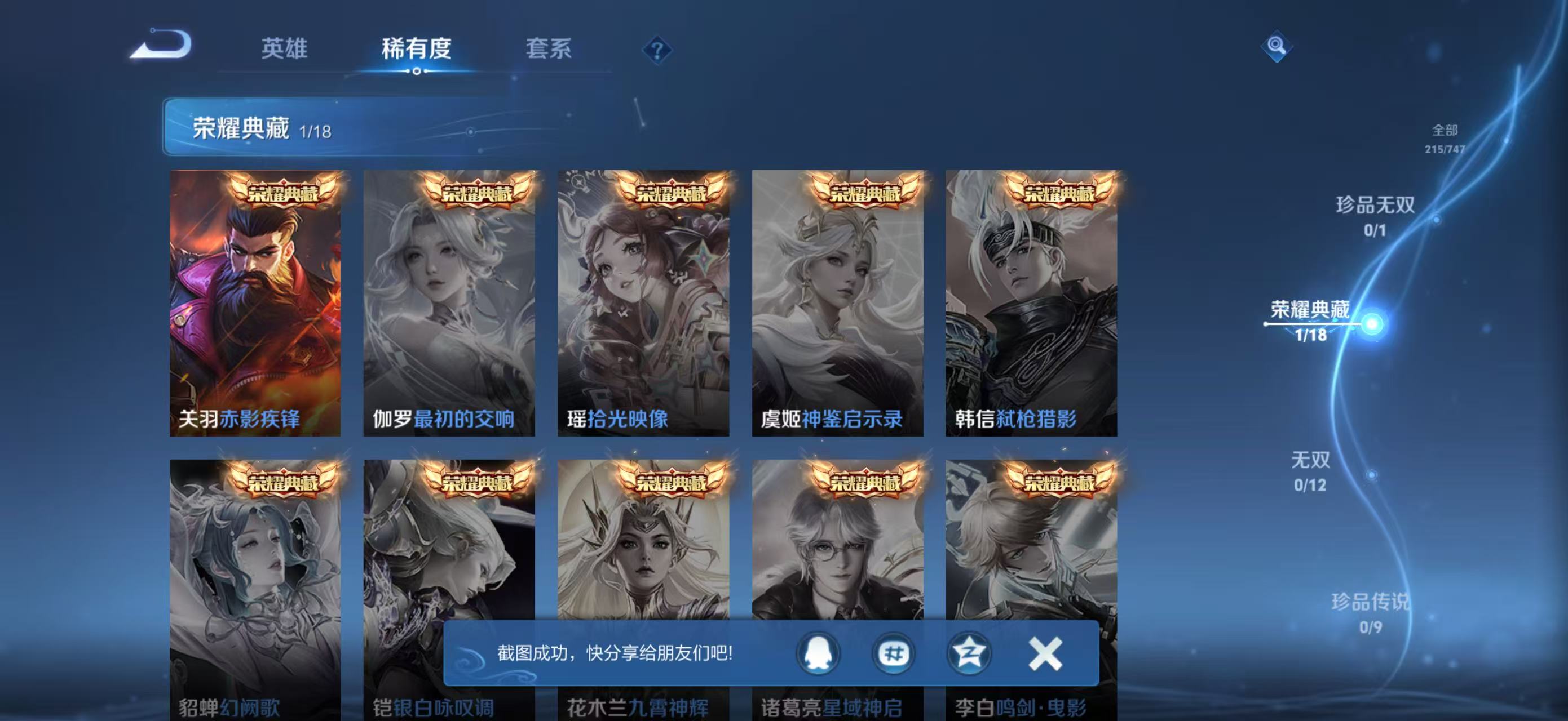 [14252362]wz2046,苹果q 总皮215,典藏1, 传说6,关羽赤影疾锋, 孙尚香乘龙·问璇玑 ,孙尚香万战,狄仁杰万战,发育路64段。