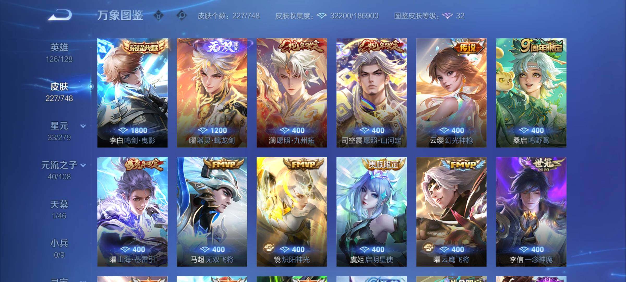 【高性价比·金标刘备·金标阿轲·器灵螭龙剑·鸣剑曳影·愿照山河定·愿照九州拓·山海苍雷引·无双飞将·一念神魔·神威·马可波罗山海玄木吟·至尊宝·可二次】w7230-安卓q-126英雄-227皮肤-9王者印记-300铭文-贵族积分5w【贵族8】【1典藏·1无双·13传说·1天幕·16按键】【因赛季更新游戏段付以上号为准!】 【荣耀典藏】:李白鸣剑曳影 【无双皮肤】:曜器灵螭龙剑 【天幕】:财