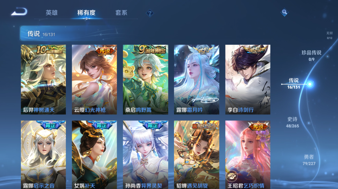 【王者荣耀】【lywz22457】珍品无双0 典藏1 无双0 珍品传说0 传说16 史诗48 英雄126 皮肤186 贵族7级 荣耀典藏:拾光映像__传说皮肤:鸣野蒿|启示之音|补天|异界灵契|胖达荣荣|地狱之眼|黄金狮子座|乞巧织情|孙尚香-末日机甲|凤求凰|诗剑行|霜月吟|太华|遇见胡旋|幻光神呛|神树通天__稀有限定:御风骁将|白鹤梁神女|李小龙|梁祝|神器·万象笔|白昼王子|大漠名商|繁星吟游|高山流水|海滩派对|海盐诗旅|皇家上将|混沌棋|金庭之子|凯尔特女王|黎明之约|炼金王|魔术师|千军破阵|擒涛扼浪|驱傩正仪|沙漠行僧|朔风刀|死亡摇滚|探海日志|醍醐杖|天穹祈灯|万华元夜|纤云弄巧|星空之诺|演武夺筹|疑决卦|阴阳师|银河之约|优雅恋人|遇见飞天|御旌|御銮|原初追逐者|真爱魔法|暗隐猎兽者|缤纷独角兽|冰雪圆舞曲|乘风破浪|德古拉伯爵|地狱岩魂|功夫厨神|鬼剑武藏|黄金分割率|节奏热浪|金属风暴|龙骑士|吕布-末日机甲|魅力维加斯|梦奇-顽趣|女仆咖啡|水果甜心|天才门将|赵云-未来纪元|星夜王子|摇滚巨星|鹰眼统帅|幽灵船长|遇见神鹿|噬灭天穹|心灵战警|孙尚香-时之恋人|舞动绿茵|星界战将|谧流熔炉|化蝶舞|狰|原初探秘者|云中旅人|单词大作战|圣弓游侠|荣光之誓|万灵启世|鹤鸣心笺__优质皮肤:尼罗河女神|创世神祝|年年有余|埃及法老|孤猎|未来旅行|激情绿茵|海之征途|碧珀绯影|冰刃幻境|森|超能战警|踏雪寻梅|启蛰|战争骑士|画中游|潮流仙人|芝加哥教父|街头旋风|幸存者|赤焰之缨|福禄兄弟|特种部队|精灵王|剑舞者|范海辛|龙域领主|爱与和平|花间舞|魇语军师|花见巫女|灼热之刃|战争女神|加勒比小姐|阿摩司公爵|精灵公主|功夫炙烤|潮玩探月行|秘密基地|次元突破|鲨炮海盗猫|丁香结|坚韧之力|海滩丽影|阿尔法小队|兔女郎|死亡骑士|少女阿狸|天使之翼|玩偶对对碰|东方不败|红桃皇后|忍·炎影|教廷特使|漠中幻影|太极少年|乐园追猎者|紫罗兰之誓|救世之瞳|白色死神|哥特玫瑰|西施-雪境奇遇|星梦巡礼|缤纷绘卷|掌控之力|雾都夜雨|龙腾万里|霸王丸|乱世虎臣|孙悟空-西部大镖客|牛魔-西部大镖客|鲁班大师-归虚梦演|龙舞盛年|汉昭烈帝|乓乓大师|五福同心|盾山-圆桌骑士|蒙犽-归虚梦演|曜-归虚梦演|唤灵魔甲|太乙真人-圆桌骑士|沉稳之力|花好人间|春野之旅|万象初新|特工战影|炽热元素使|玫蓝誓约|无双福将__贵族等级:贵族7级__王者段位:荣耀王者拾光映像,霜月吟,诗剑行,凤求凰,黄金狮子座,末日机甲,幻光神呛等热门限定皮肤