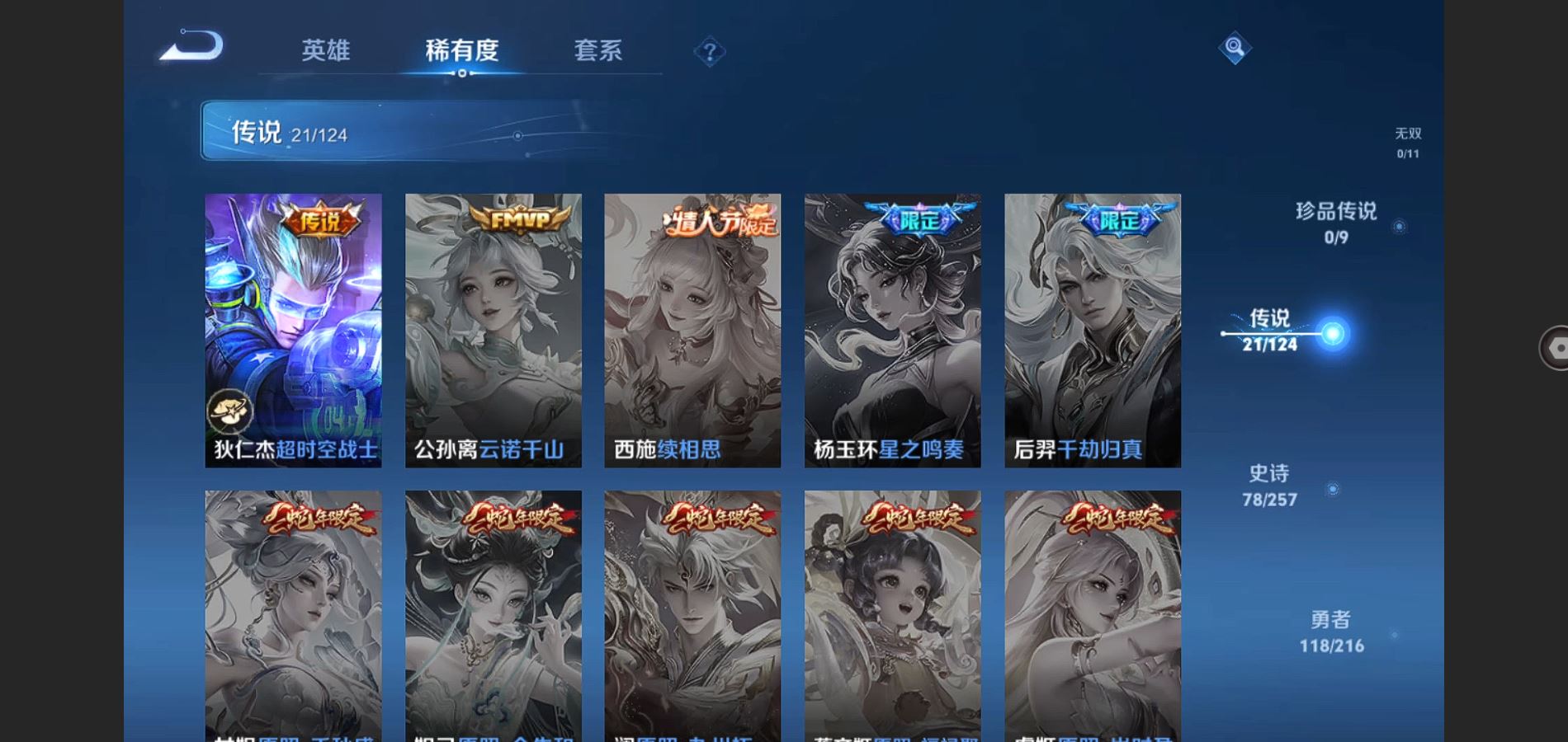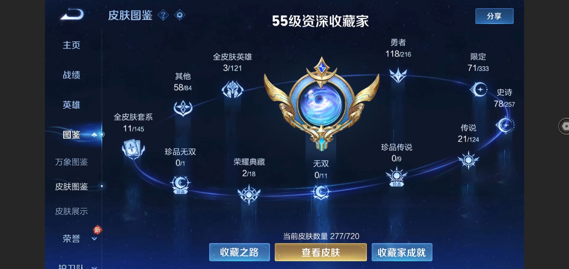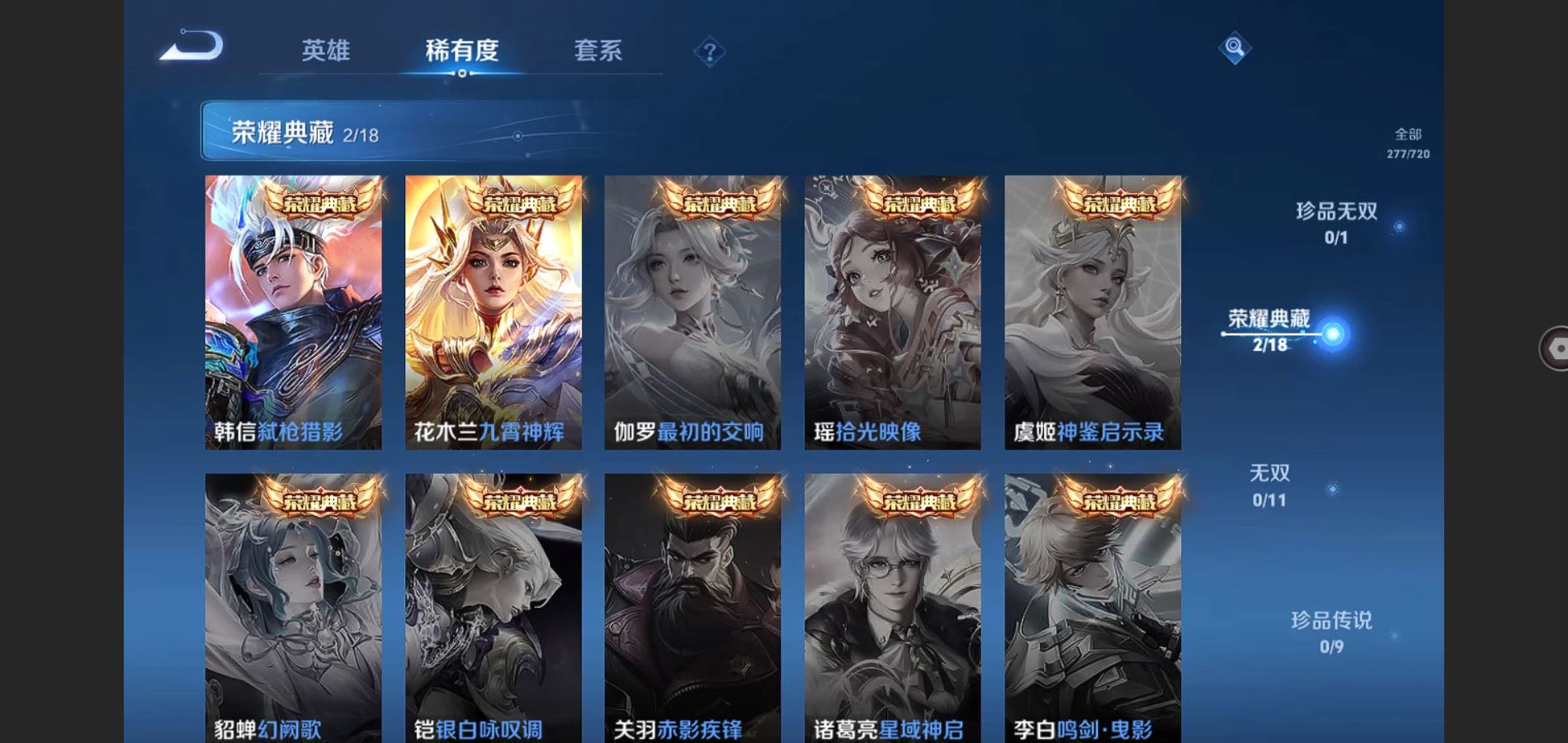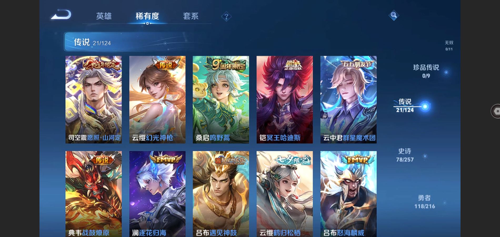 2294239-金标阿轲 277皮肤-2典藏 21传说 v8王者印记7 荣耀印记22典藏已兑换 九霄神辉 弑呛猎影 冥王哈迪斯 群星魔术团云中君 战鼓燎原 逐花归海 遇见神鼓 幻光神呛 愿照山河定 鸣野蒿 启明星使 御风骁将 谪仙醉月 岱宗 李 天狼绘梦者 游龙清影 孙行者 猪悟能 鹤归松栖女 冰冠公主 无双飞将 暗影游猎 怒海麟威 原初追逐者 黎明之约 死神来了 狂想玩偶喵