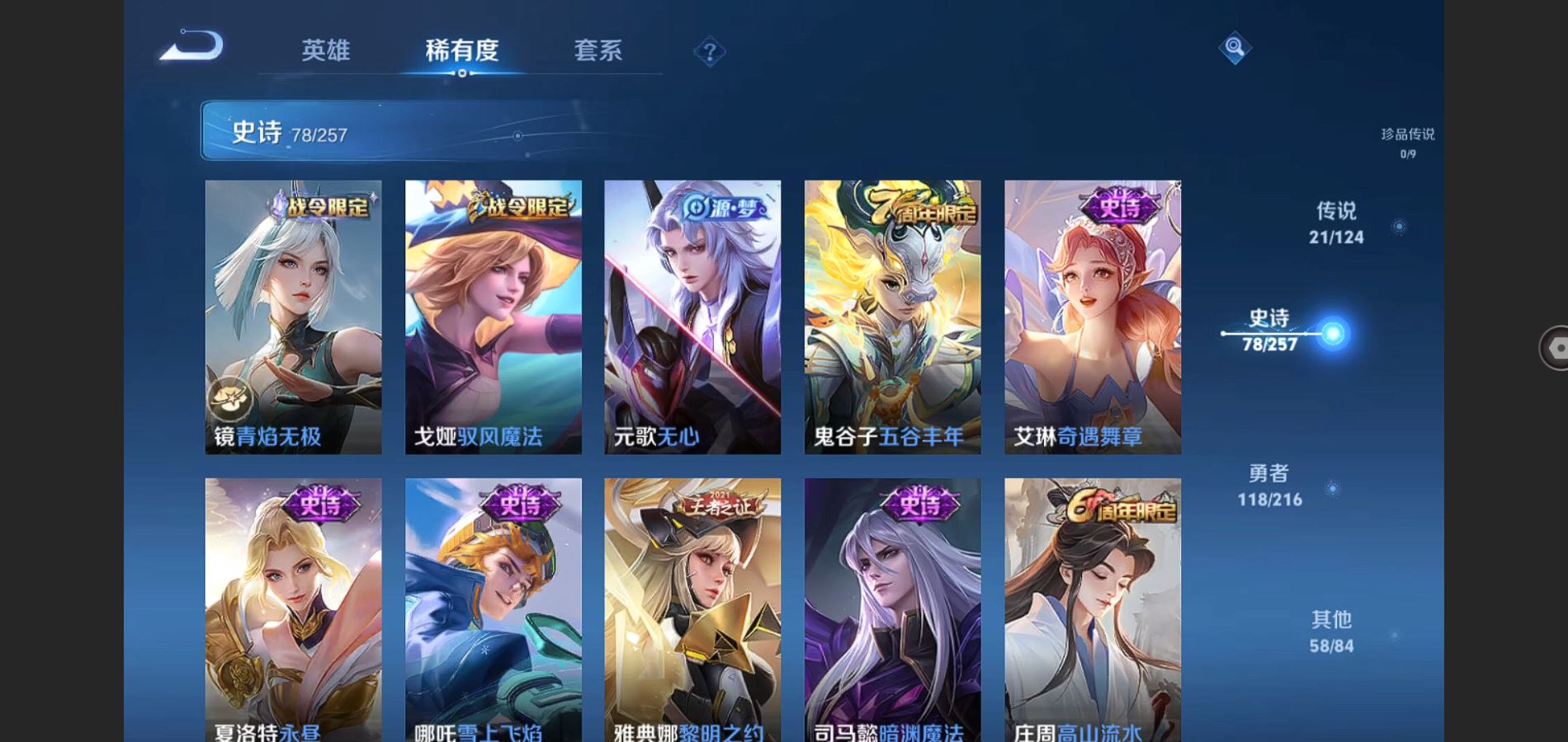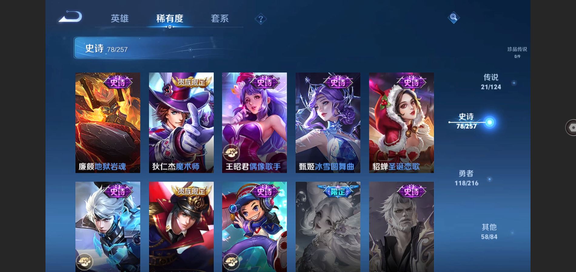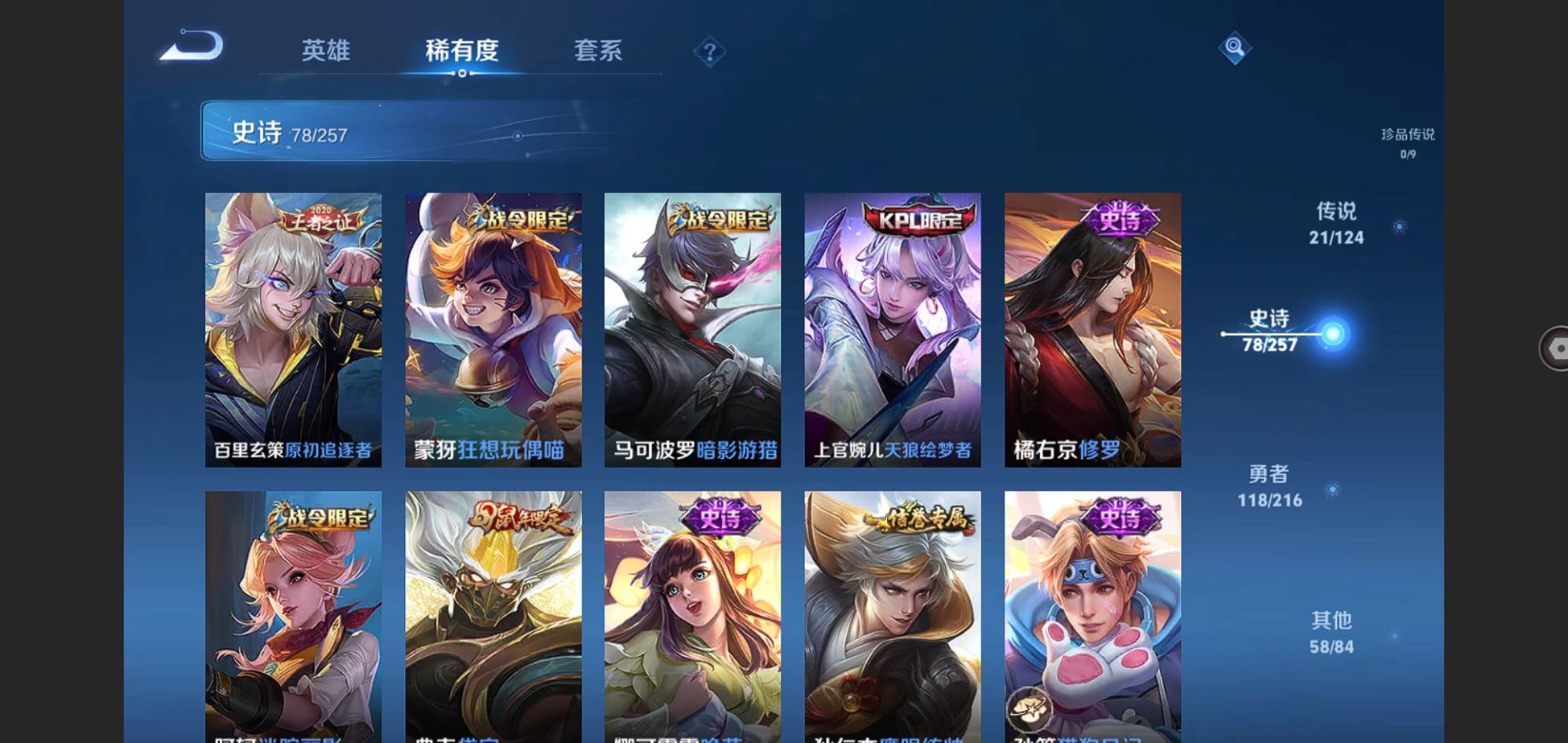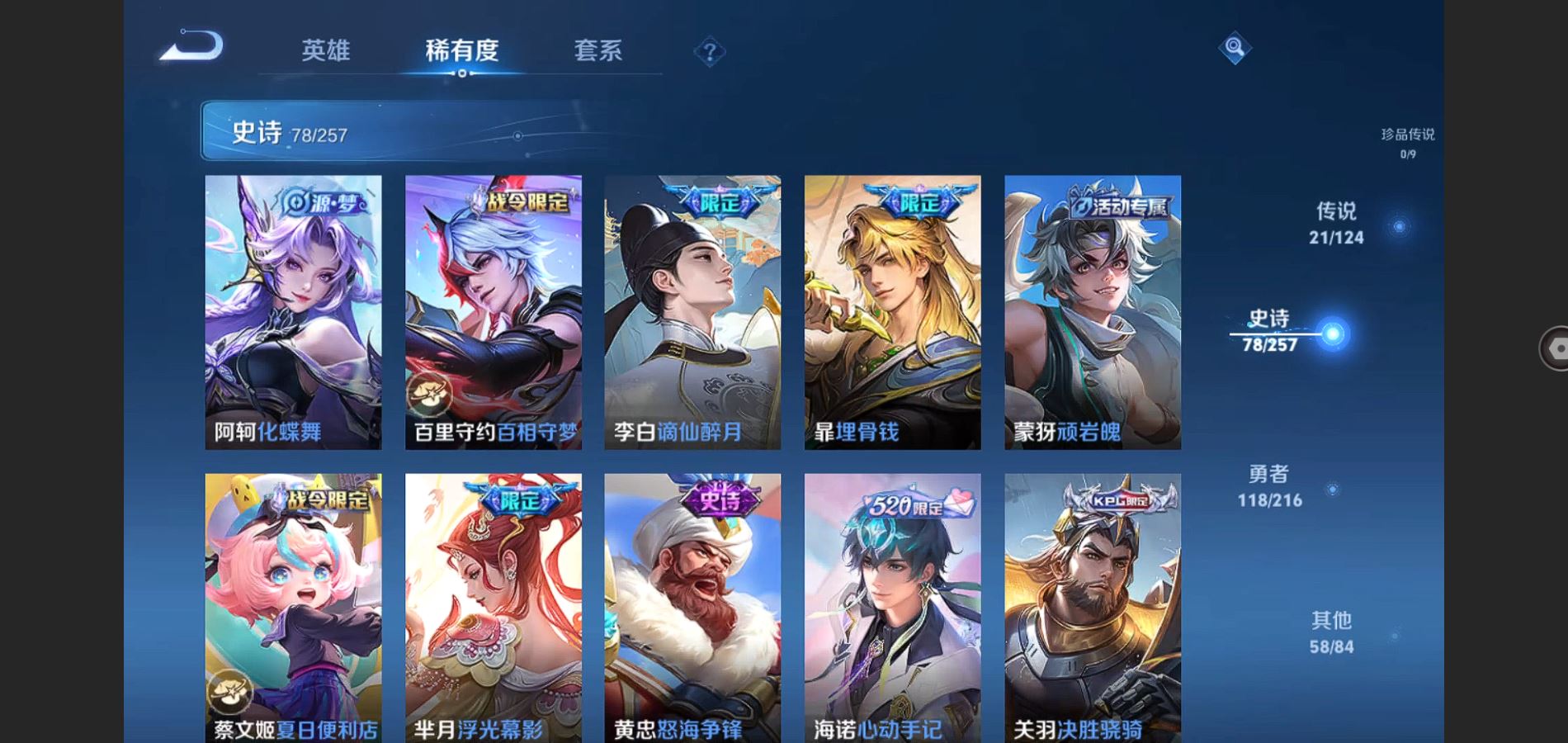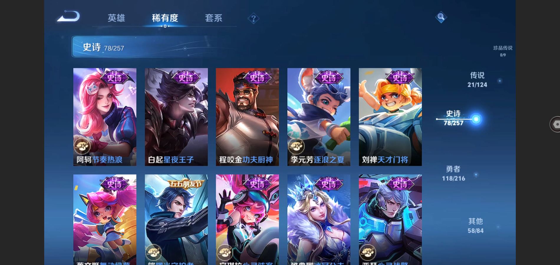 2294239-金标阿轲 277皮肤-2典藏 21传说 v8王者印记7 荣耀印记22典藏已兑换 九霄神辉 弑呛猎影 冥王哈迪斯 群星魔术团云中君 战鼓燎原 逐花归海 遇见神鼓 幻光神呛 愿照山河定 鸣野蒿 启明星使 御风骁将 谪仙醉月 岱宗 李 天狼绘梦者 游龙清影 孙行者 猪悟能 鹤归松栖女 冰冠公主 无双飞将 暗影游猎 怒海麟威 原初追逐者 黎明之约 死神来了 狂想玩偶喵