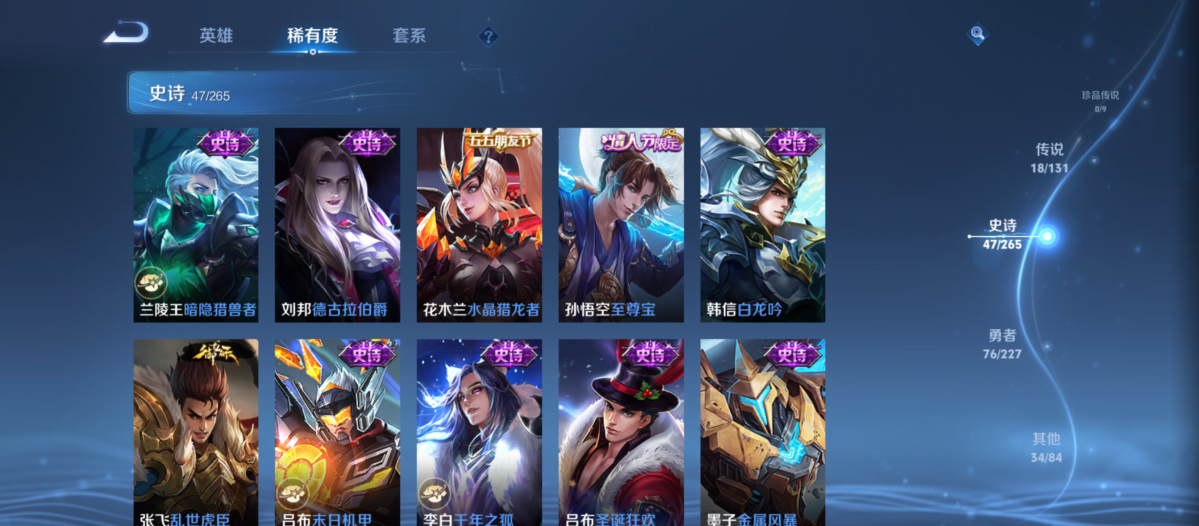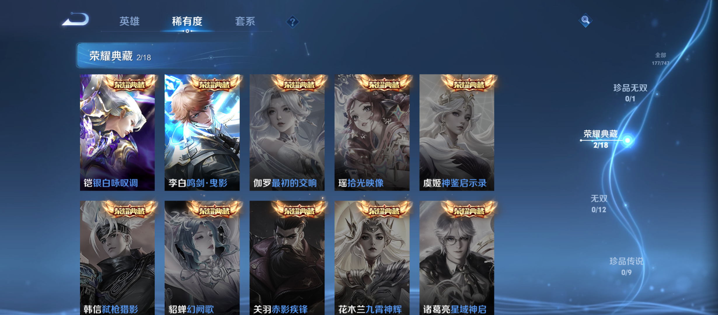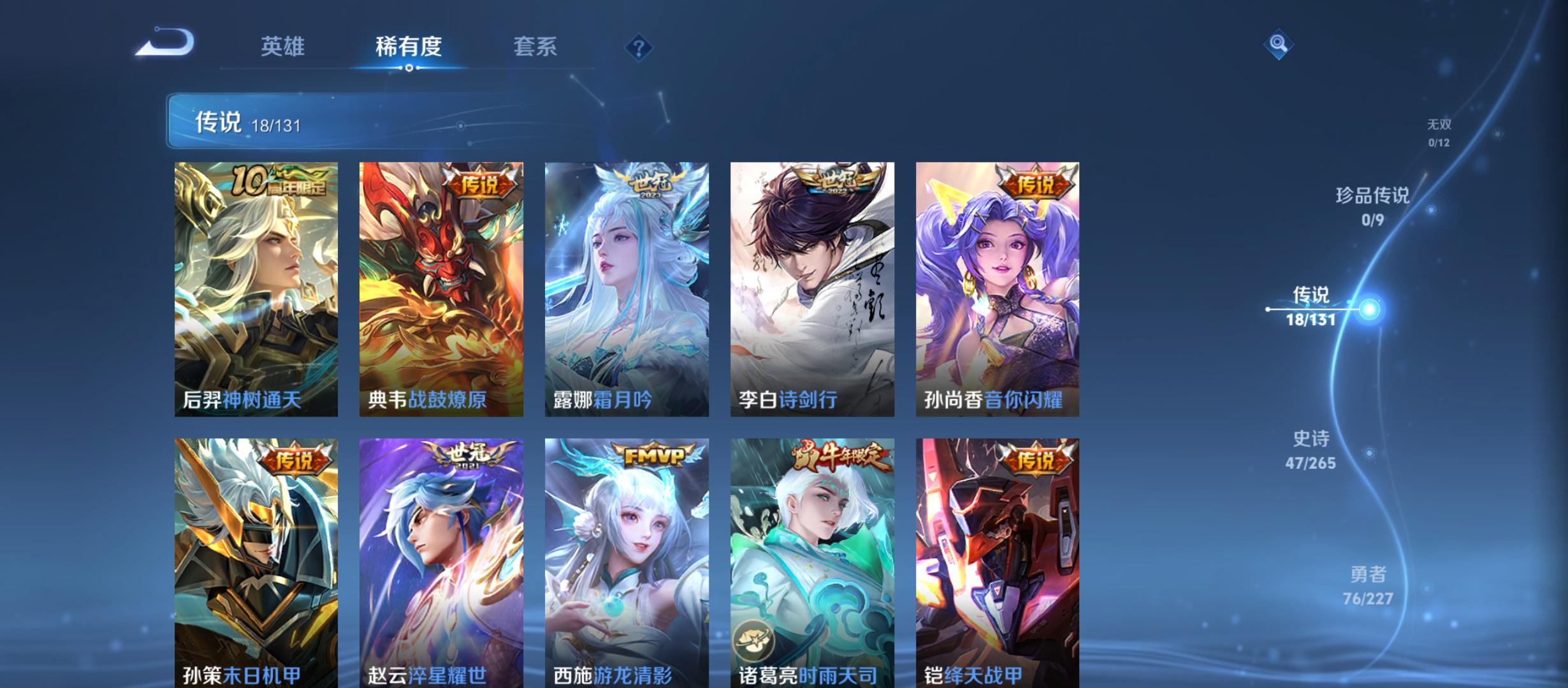 txwz23201 v8-177皮 1传说天幕 2典藏 银白咏叹调,鸣剑·曳影 18传说 神树通天,游龙清影,战鼓燎原,启明星使,霜月吟,诗剑行,地狱之眼,黄金射手座,末日机甲,炽阳神光,超时空战士,地狱火,淬星耀世,音你闪耀,久胜战神,绛天战甲,云鹰飞将,时雨天司47史诗