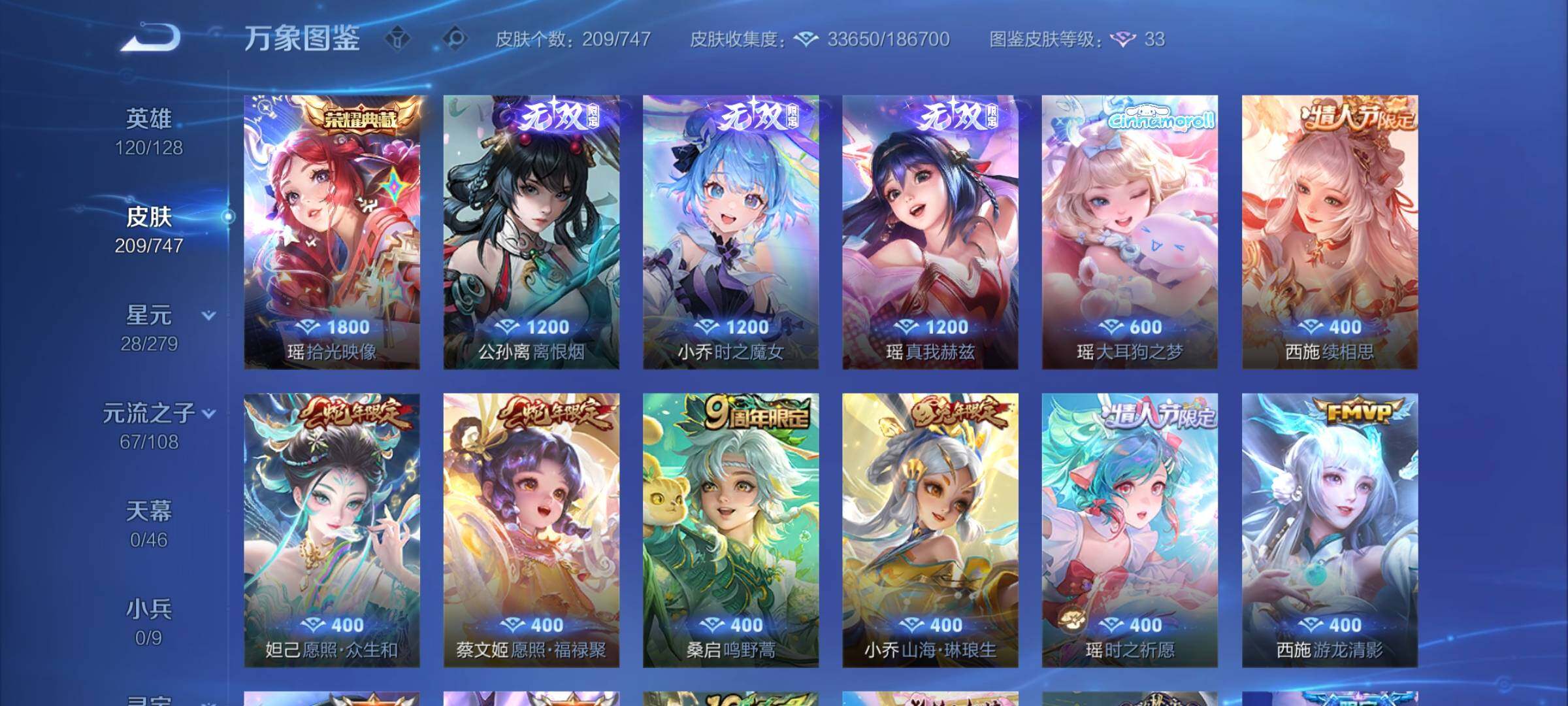 【店长推荐·精品女号·瑶全皮·西施全皮·时之魔女·离恨烟·愿照众生和·愿照福禄聚·山海琳琅生·音你心动·金色仲夏夜·时之彼端·魔法小厨·可二次】w7403-安卓q-120英雄-209皮肤-5王者印记-110铭文-贵族积分4w【贵族7】【1典藏双·3无双·1珍品·1星传说·9传说·10按键·206幸运值】【因赛季更新游戏段付以上号为准!】 【英雄全皮】:瑶全皮,西施全皮,阿古朵全皮,影全皮