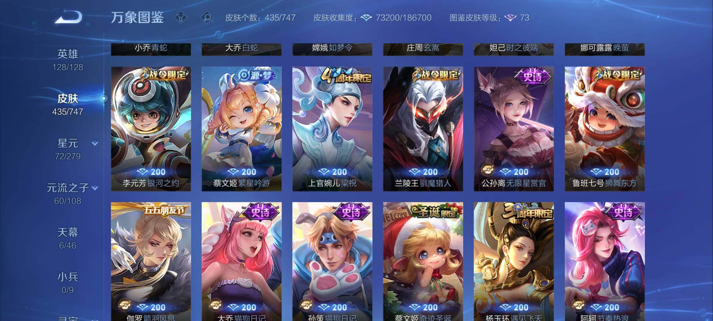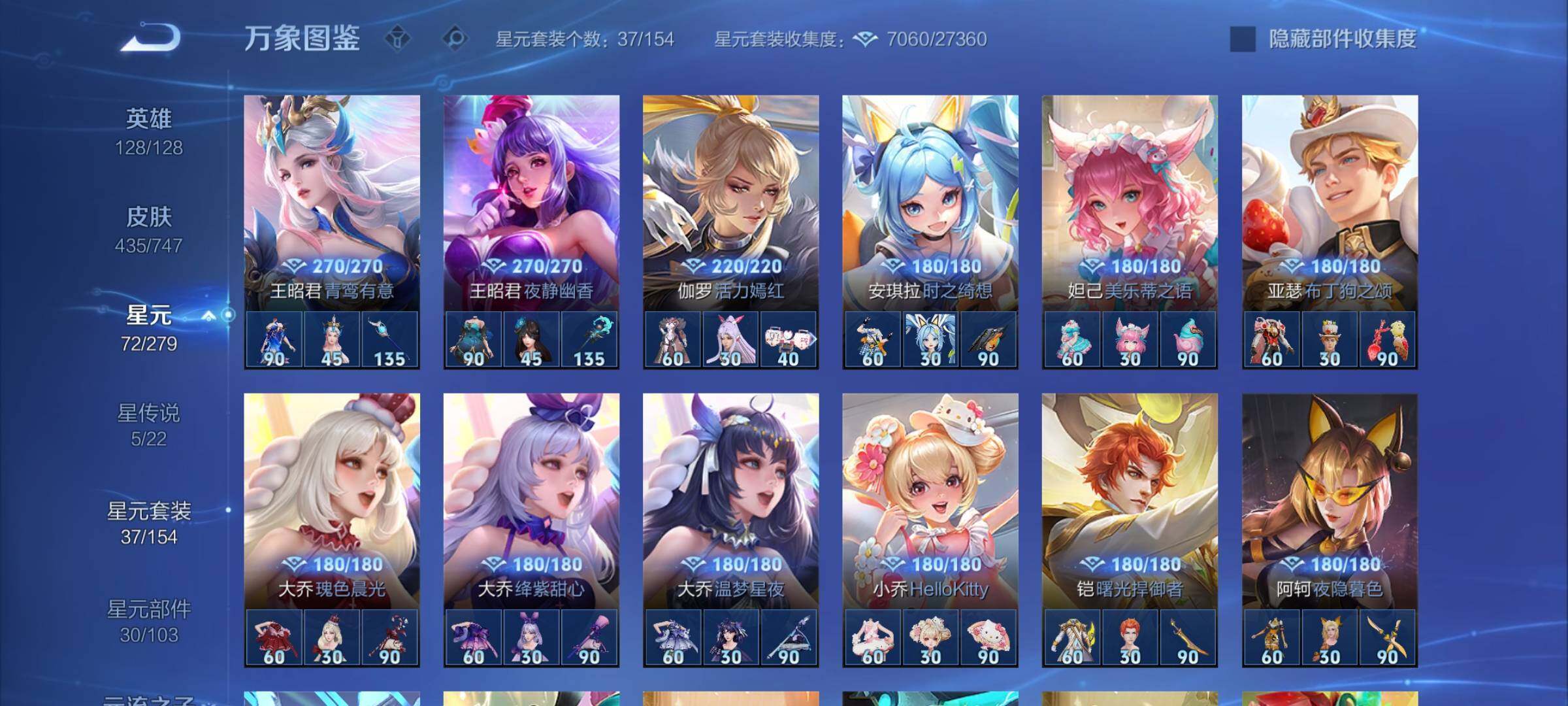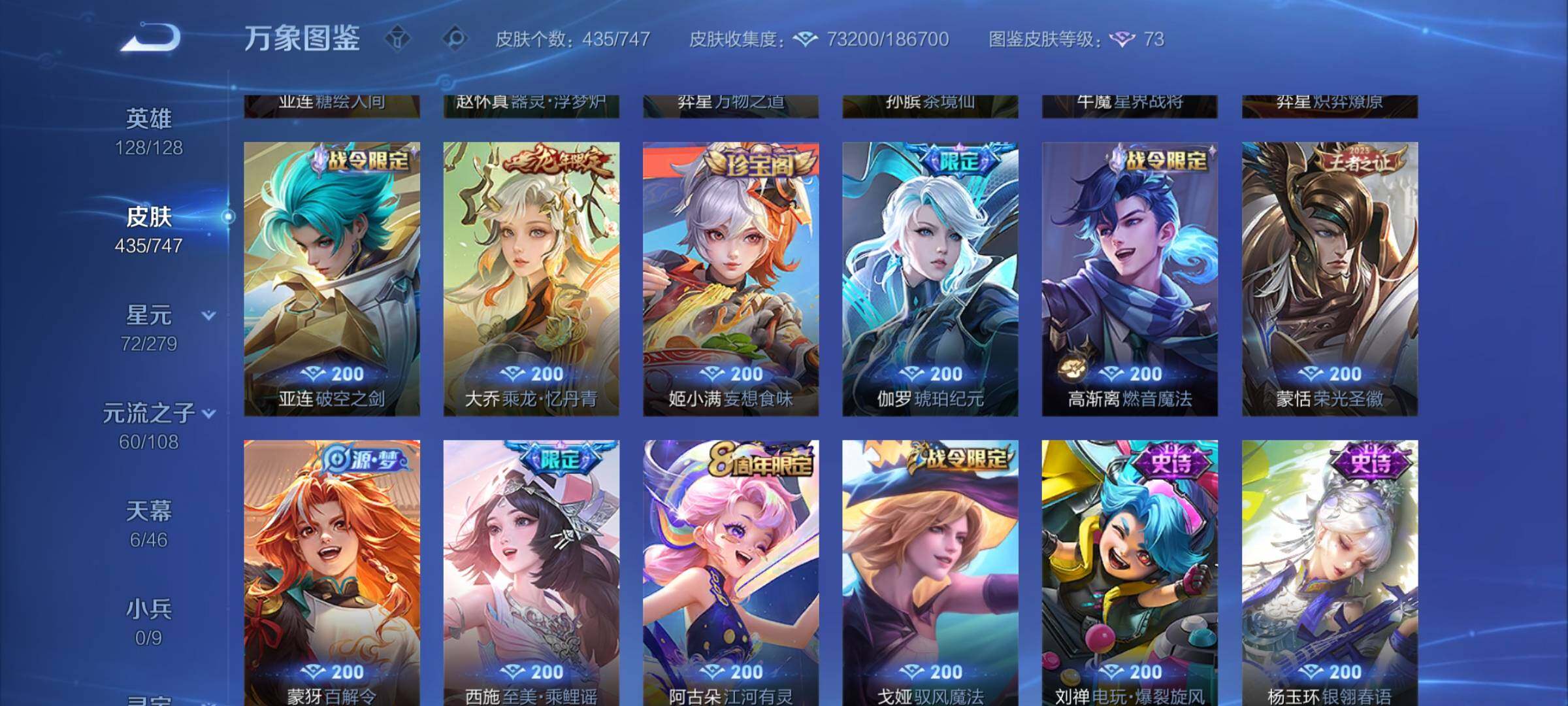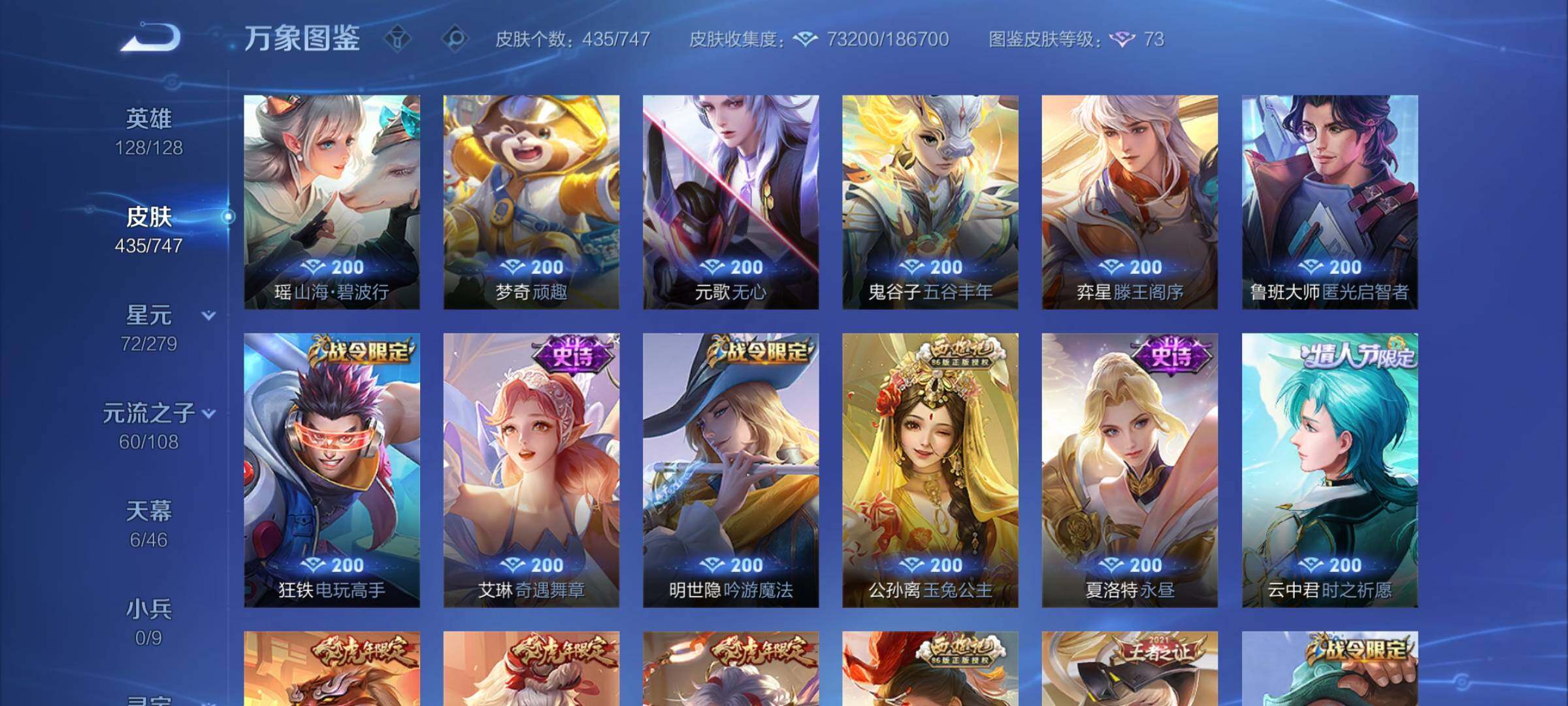 【精品女号v10·瑶全皮 紫瑶·王昭君全皮·大乔全皮·西施全皮·杨玉环全皮·小乔差1满皮·天鹅之梦·器灵落星盏·幻海之心·金色貂蝉·4典藏·2无双·3珍品·5星传说·3精品天幕·挚爱童话天幕·花朝如约天幕·金虎啸春天幕·满虎年限定·至美化雀舞·永恒水手月亮·14款年限·可二次】w7459-安卓q-128英雄-435皮肤-18王者印记-140铭文-贵族积分23w【贵族10】【v10·4典藏·