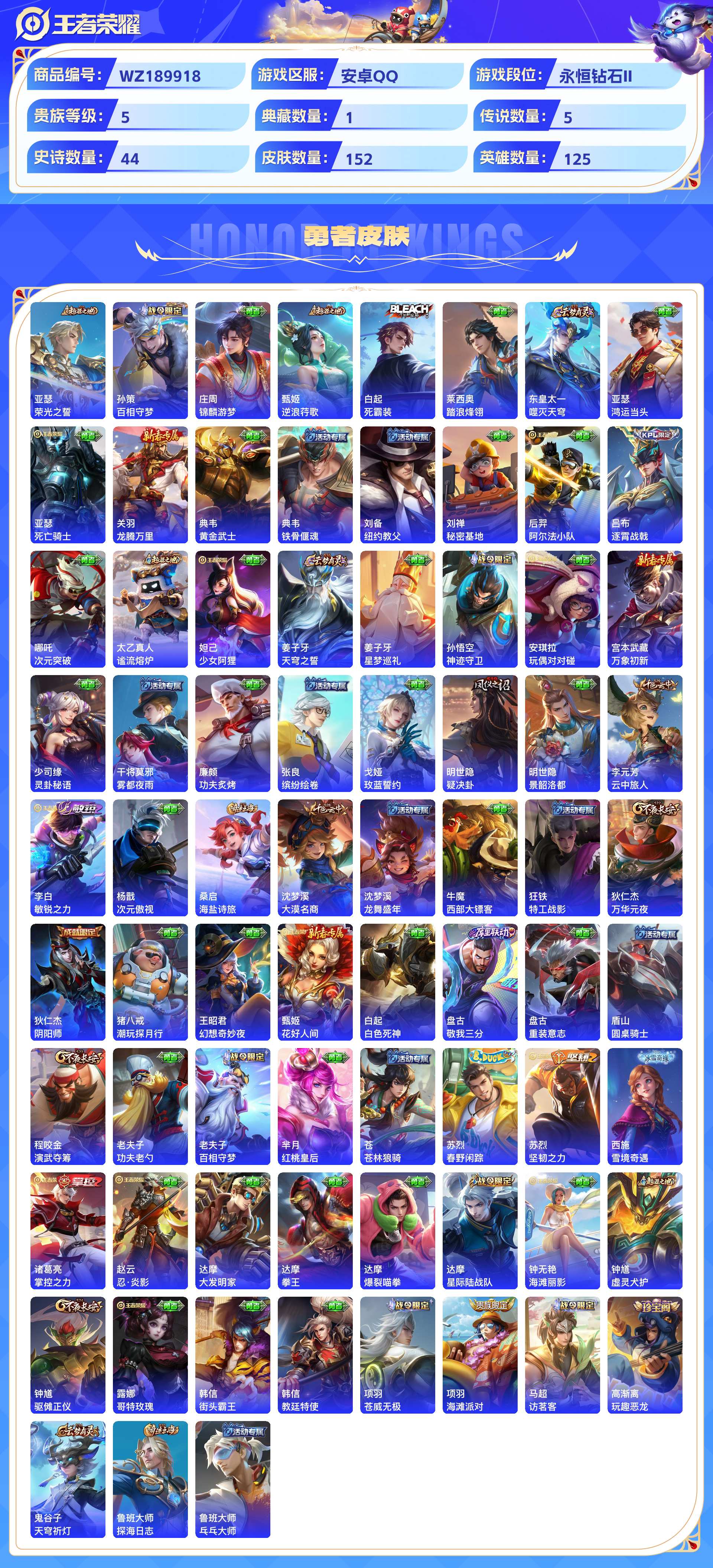 _2294603-安卓qq152皮贵族5级1典藏5传说44史诗【荣耀典藏】神鉴启示录【传说皮肤】愿照·山河定地狱火黄金白羊座鸣野蒿黄金狮子座【史诗皮肤】涂山容容石田雨龙百相守梦百相守梦纤云弄巧破空之剑箭羽风息暗隐猎兽者德古拉伯爵末日机甲圣诞狂欢金属风暴乘风破浪摇滚巨星暗夜贵公子蔷薇恋人水果甜心茶境仙鬼剑武藏缤纷独角兽地狱岩魂乱世虎臣逐浪之夏银河之约谪仙醉月修罗龙之律动鹰眼统帅冰雪圆舞曲星夜王子百相守梦特工魅影胡桃异想国水晶猎龙者舞动绿茵李小龙圣诞恋歌皇家上将曙光守护者化蝶舞节奏热浪冰冠公主紫霞仙子五谷丰年【勇者皮肤】荣光之誓百相守梦锦麟游梦逆浪荇歌死霸装踏浪烽翎噬灭天穹鸿运当头死亡骑士龙腾万里黄金武士铁骨偃魂纽约教父秘密基地阿尔法小队逐霄战戟次元突破谧流熔炉少女阿狸天穹之誓星梦巡礼神迹守卫玩偶对对碰万象初新灵卦秘语雾都夜雨功夫炙烤缤纷绘卷玫蓝誓约疑决卦景韶洛都云中旅人敏锐之力次元傲视海盐诗旅大漠名商龙舞盛年西部大镖客特工战影万华元夜阴阳师潮玩探月行幻想奇妙夜花好人间白色死神敬我三分重装意志圆桌骑士演武夺筹功夫老勺百相守梦红桃皇后苍林狼骑春野闲踪坚韧之力雪境奇遇掌控之力忍·炎影大发明家拳王爆裂喵拳星际陆战队海滩丽影虚灵犬护驱傩正仪哥特玫瑰街头霸王教廷特使苍威无极海滩派对访茗客玩趣恶龙天穹祈灯探海日志乓乓大师【其他皮肤】赤焰之缨圣殿之光精灵王战争骑士伊势巫女圆桌骑士露花倒影未来旅行归虚梦演灼热之刃特种部队年年有余绝影神呛威尼斯狂欢秩序猎龙将归虚梦演街头旋风龙域领主冰刃幻境激情绿茵幸存者金属狂潮木偶奇遇记